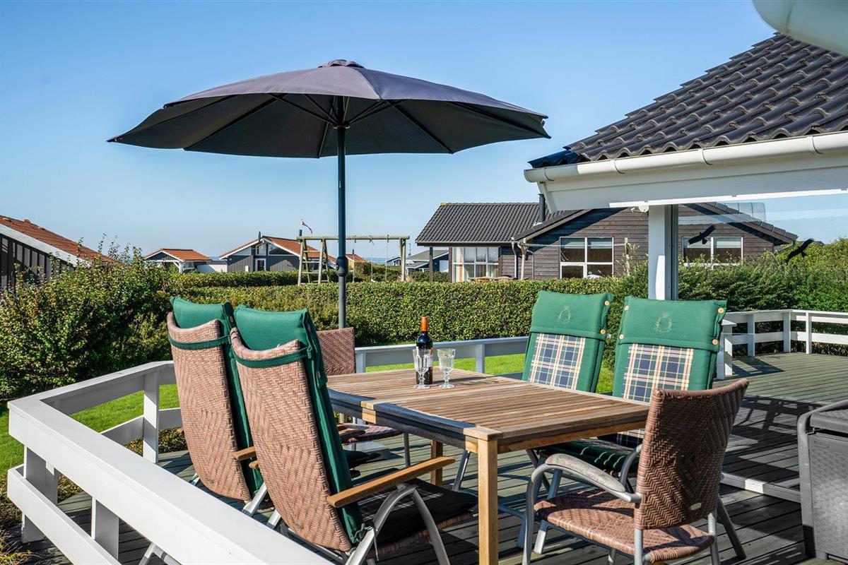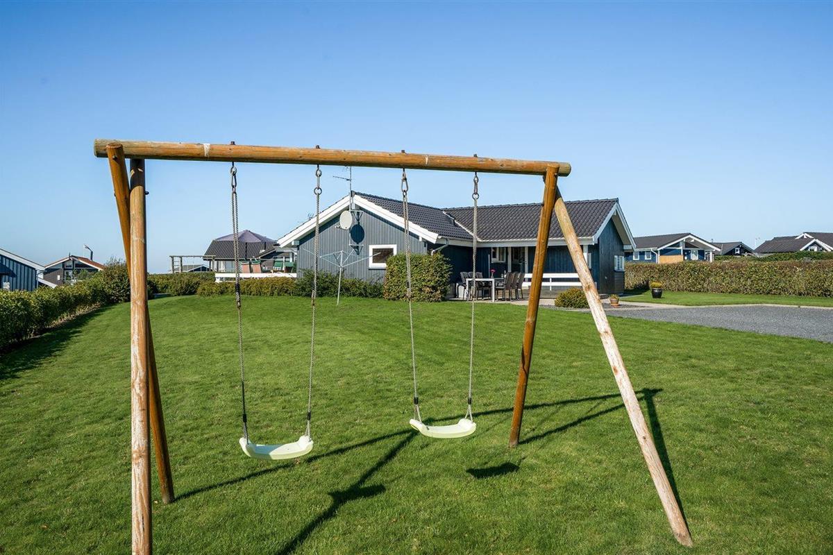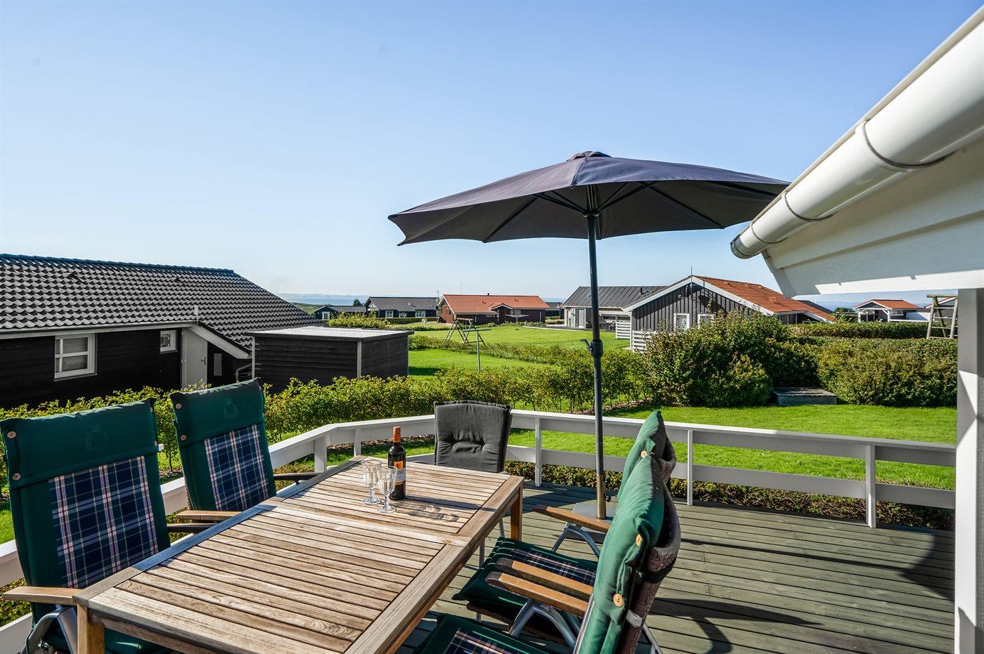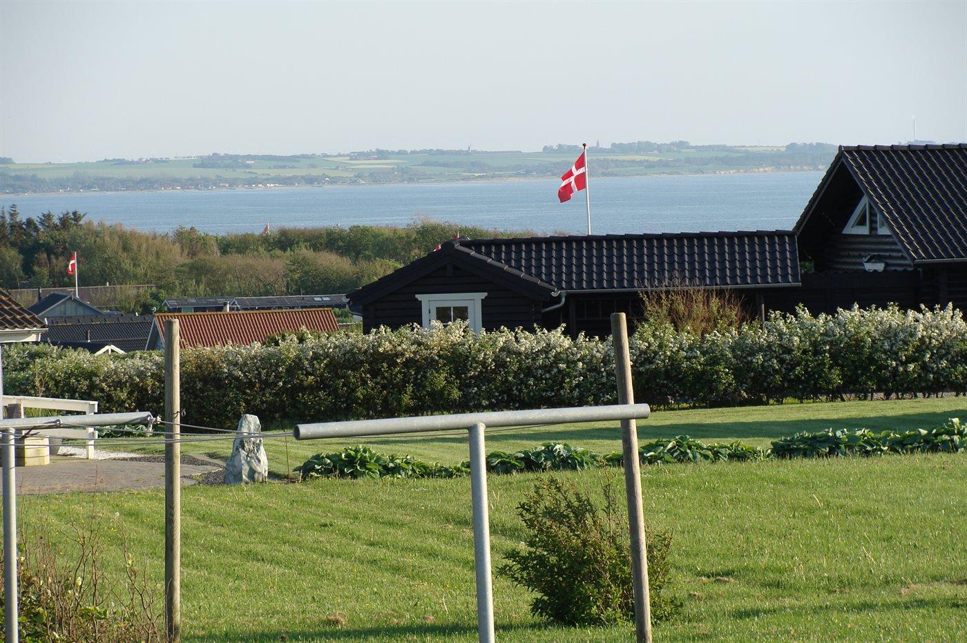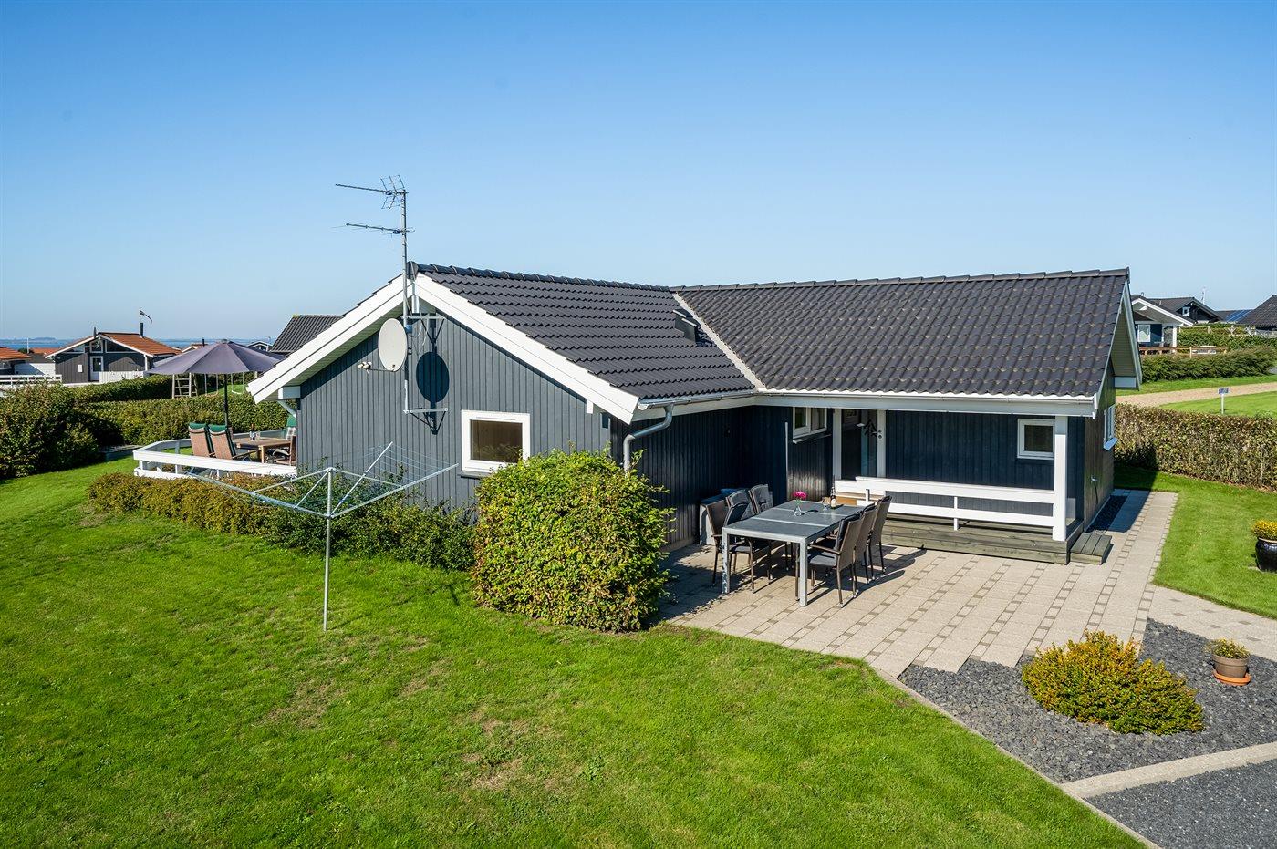 De vakantiewoning is gelegen op een 1000 m² groot aangelegde tuin. Afstand tot de fjord 350 m. Dichtstbijzijnde winkel 500 m. Bij de vakantiewoning hoort 55 m² terras. Daarnaast is er een 15 m² groot overdekt terras. Gereedschapsruimte. Schommel. Zandbak. Parkeerplaats bij het huis.