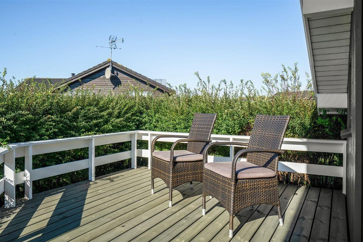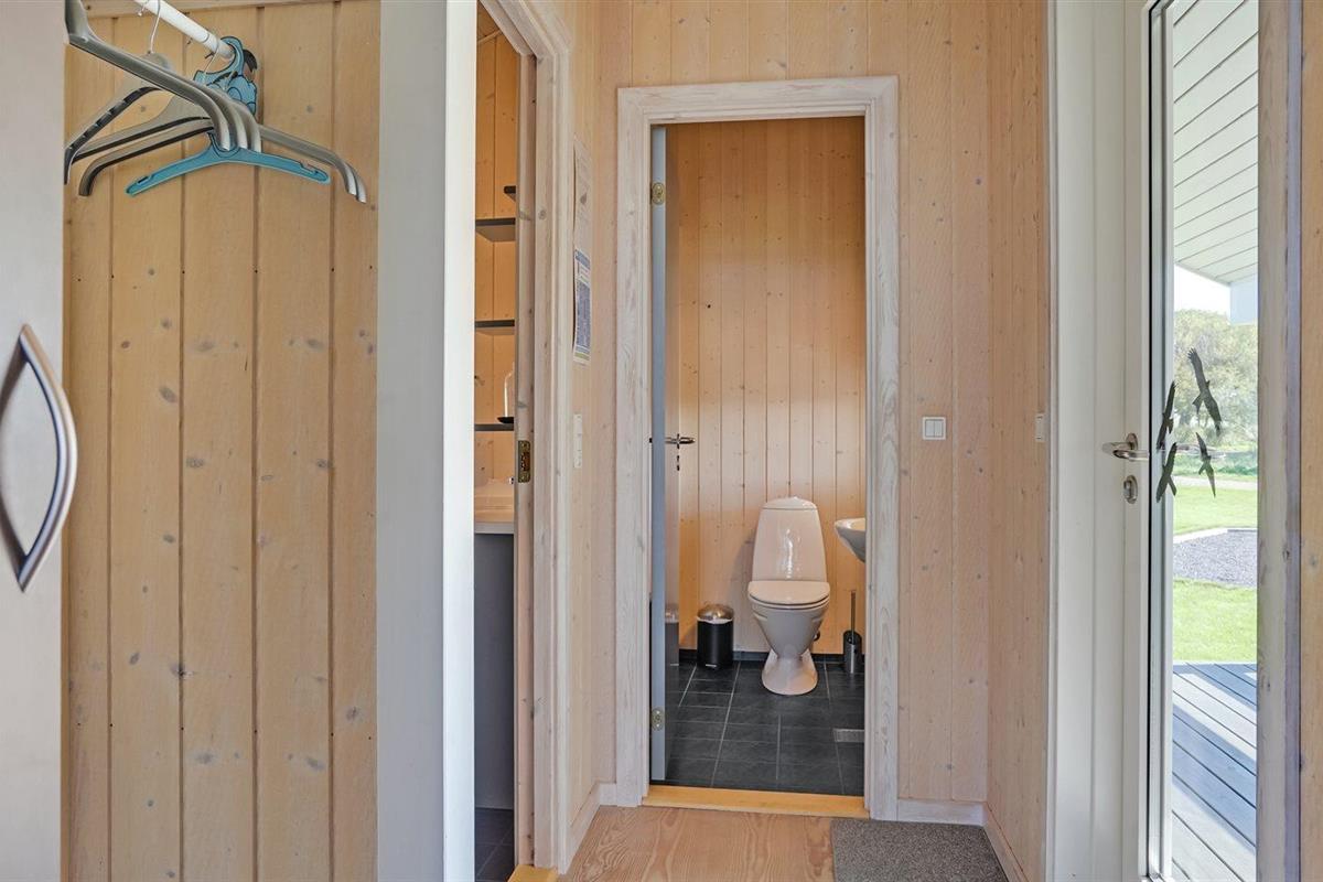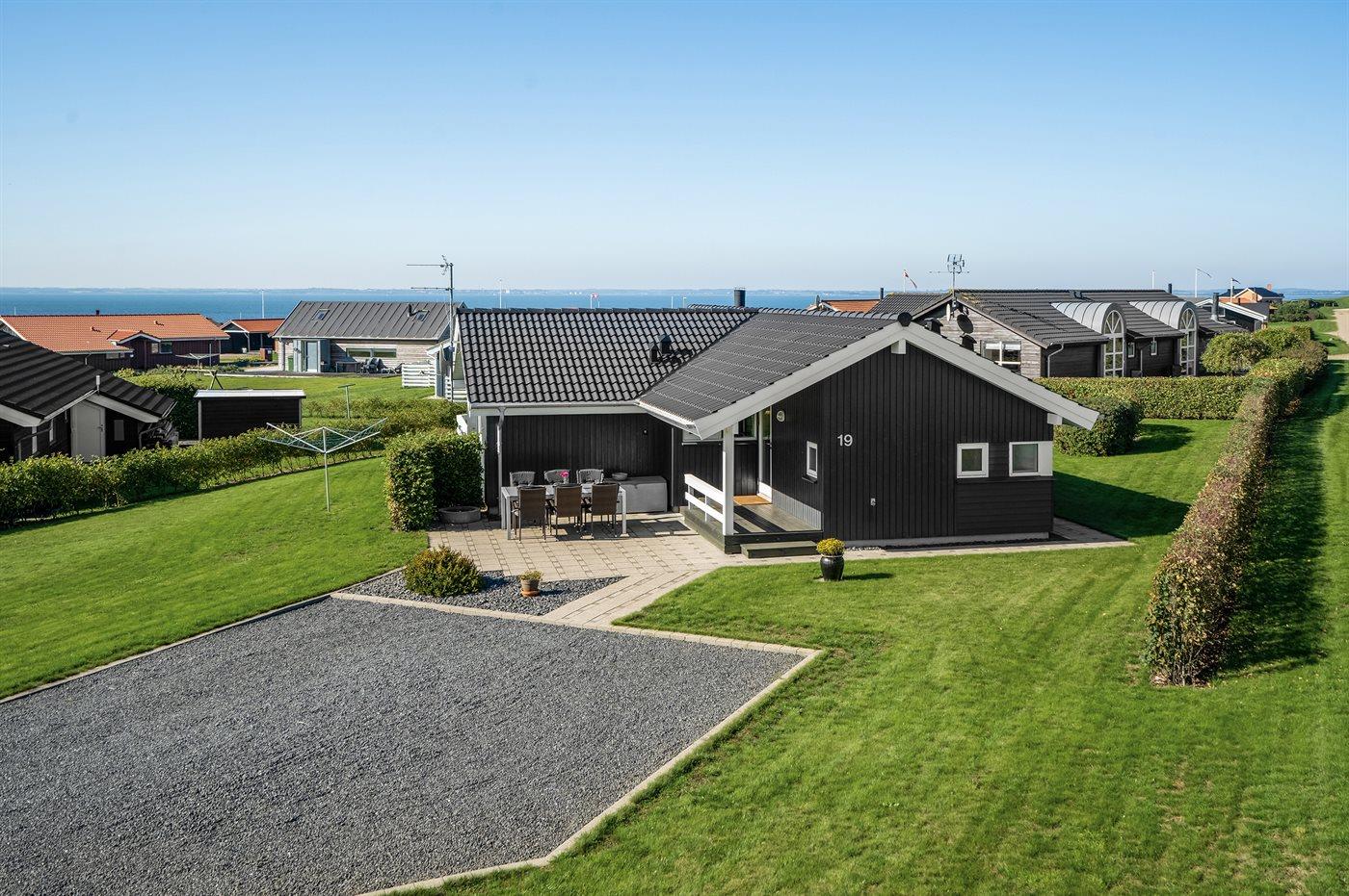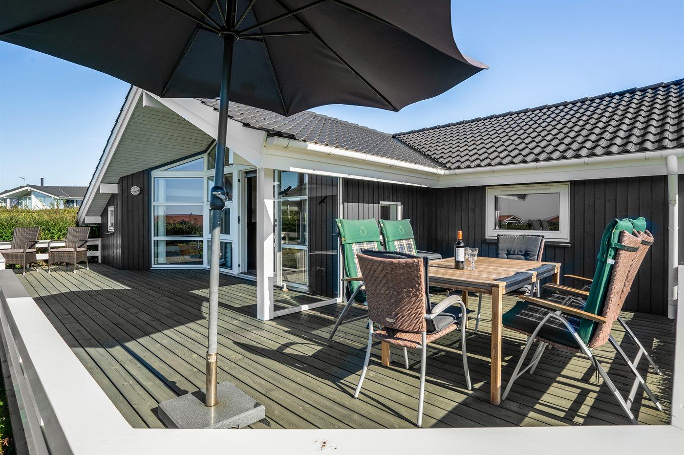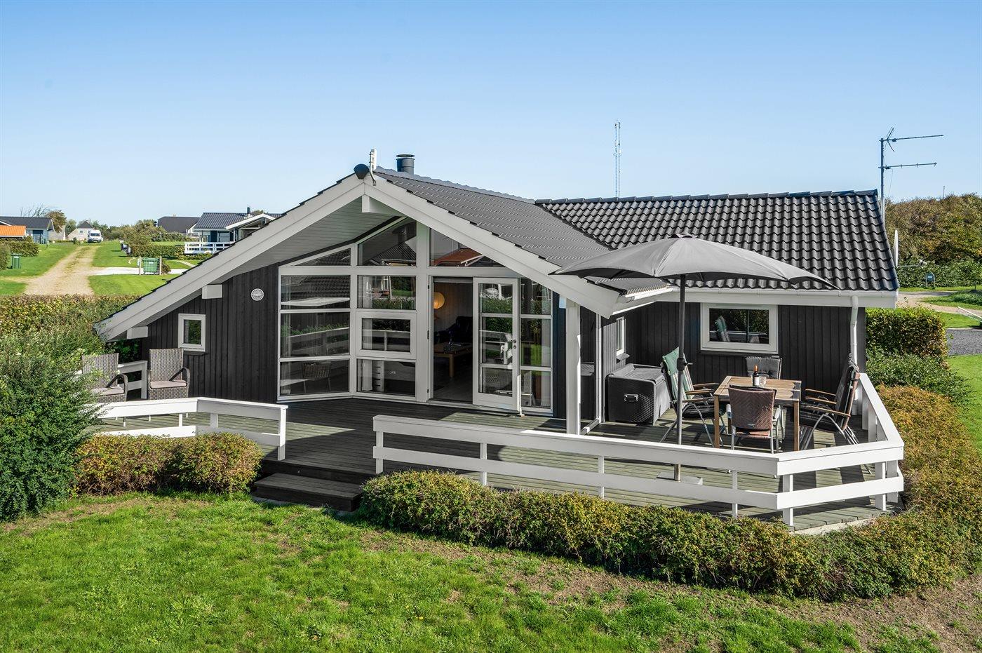 De vakantiewoning is gelegen op een 1000 m² groot aangelegde tuin. Afstand tot de fjord 350 m. Dichtstbijzijnde winkel 500 m. Bij de vakantiewoning hoort 55 m² terras. Daarnaast is er een 15 m² groot overdekt terras. Gereedschapsruimte. Schommel. Zandbak. Parkeerplaats bij het huis.
