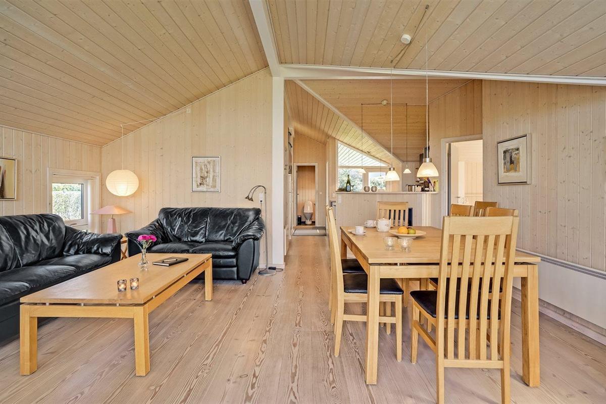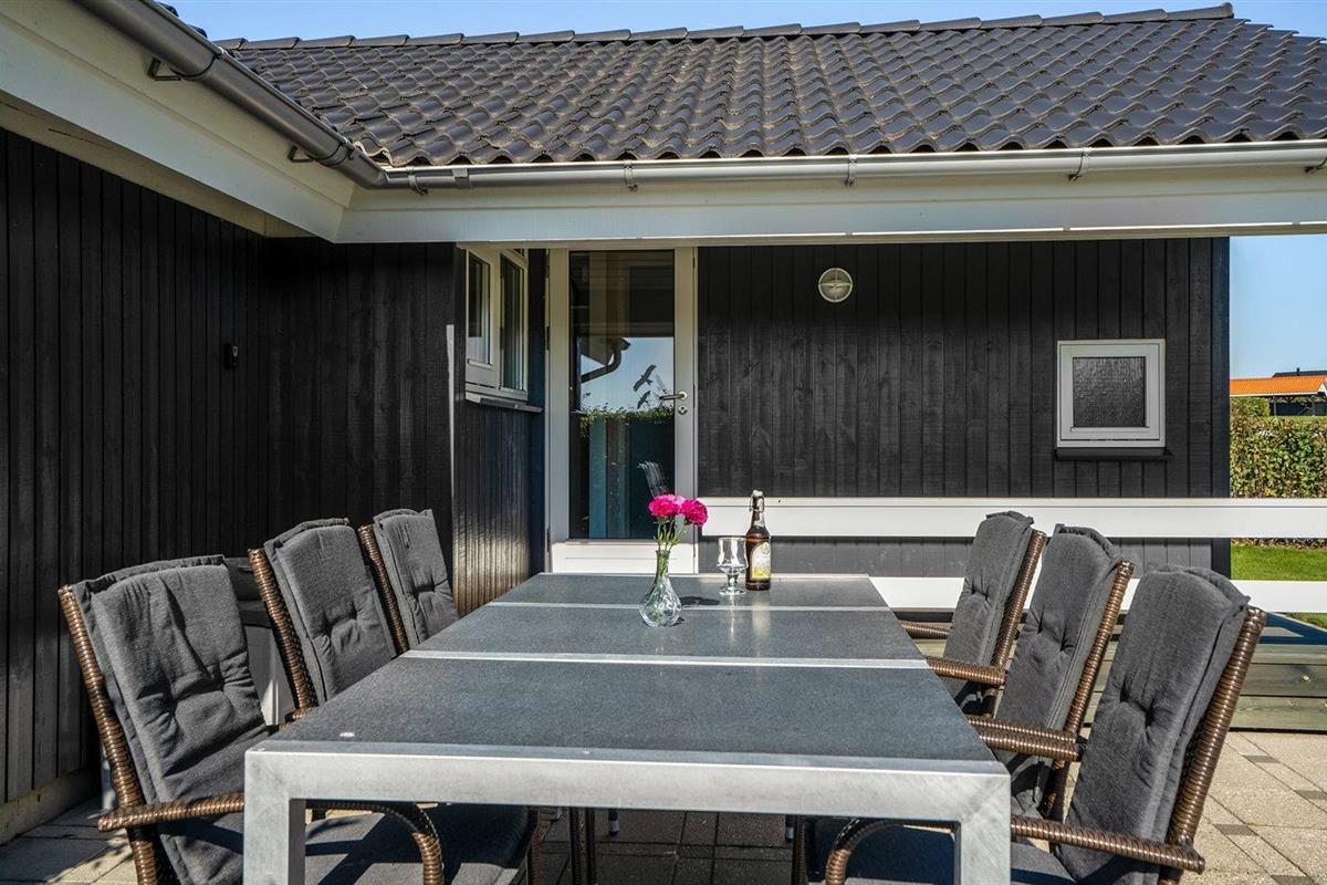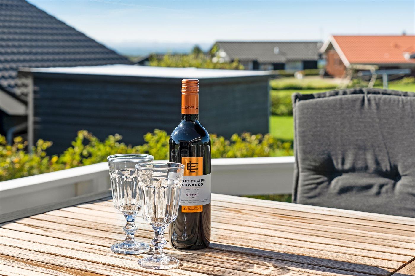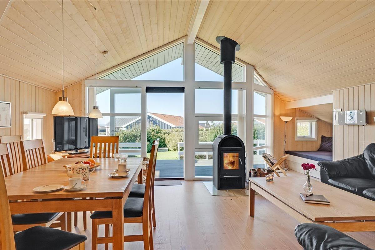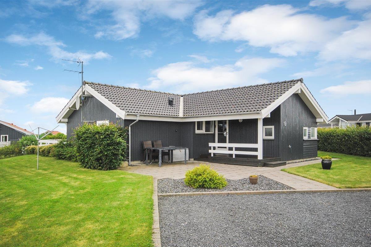 De vakantiewoning is gelegen op een 1000 m² groot aangelegde tuin. Afstand tot de fjord 350 m. Dichtstbijzijnde winkel 500 m. Bij de vakantiewoning hoort 55 m² terras. Daarnaast is er een 15 m² groot overdekt terras. Gereedschapsruimte. Schommel. Zandbak. Parkeerplaats bij het huis.