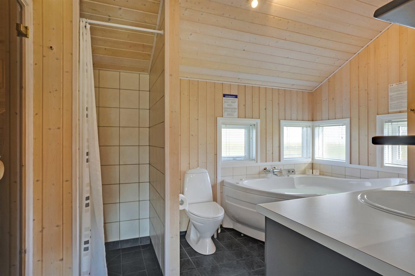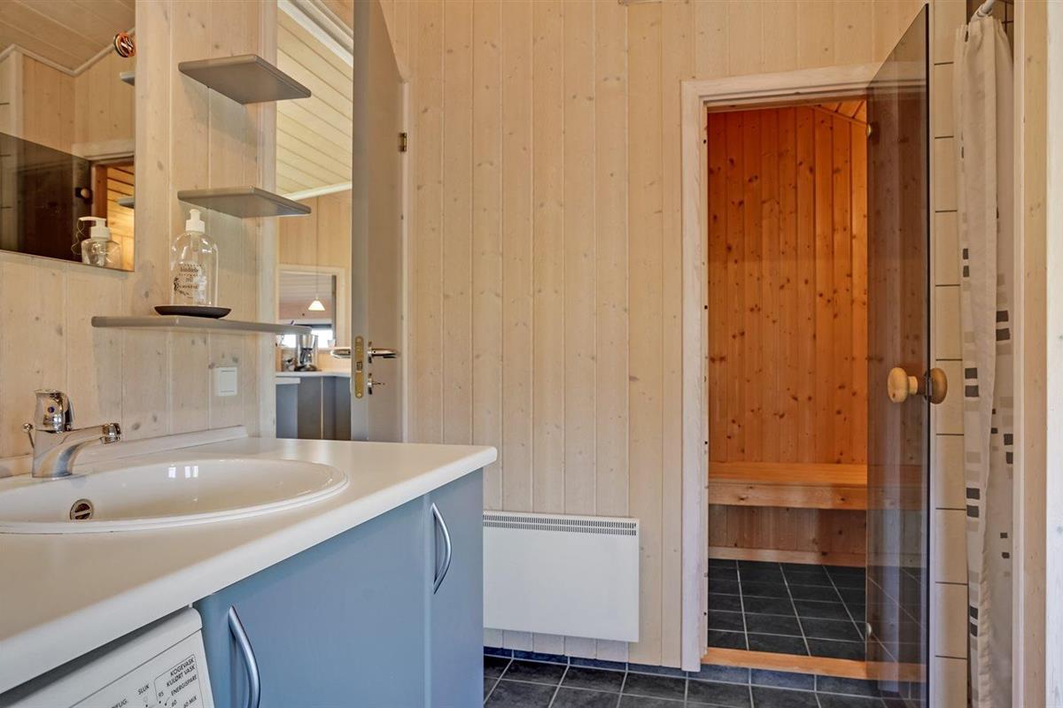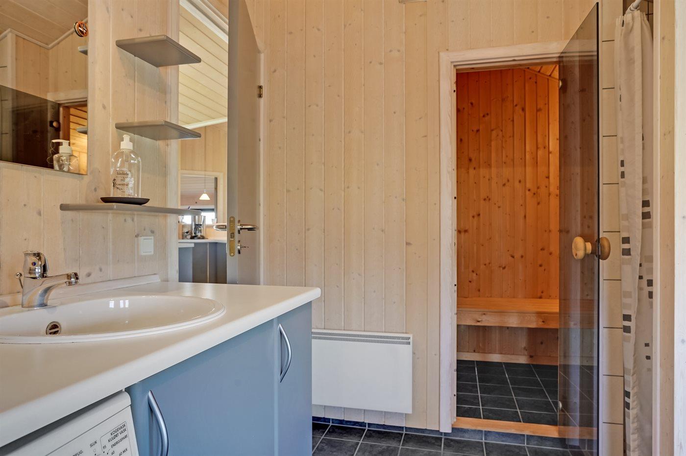 Er is 2 badkamers met douchehok en 2 toiletten. Er is vloerverwarming in 2 van de badkamers. De sauna biedt de gelegenheid tot ontspanning.