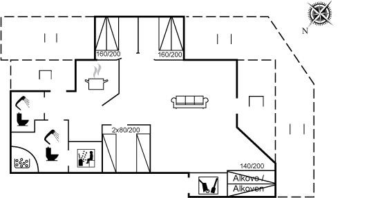Er zijn in totaal 3 slaapkamers. De slaapplaatsen zijn als volgt verdeeld: 4 slaapplaatsen in tweepersoonsbedden. 2 slaapplaatsen in eenpersoonsbedden. 2 slaapplaatsen in alkoof. 2 van deze slaapplaatsen bevinden zich in de huiskamer. Verder is kinderbed ter beschikking.