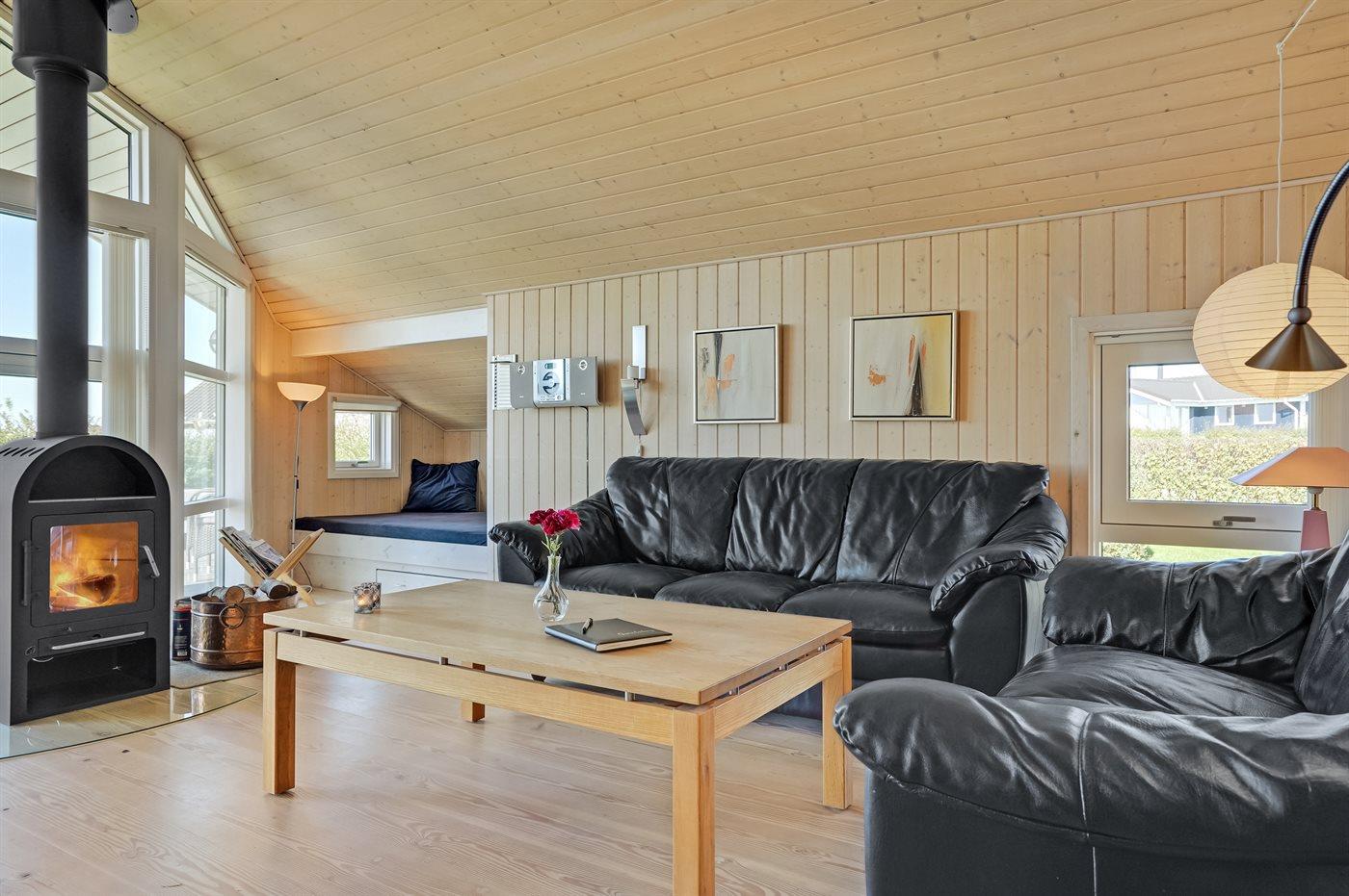 Comfortabel vakantiehuis in Vinderup met sauna, bubbelbad en uitzicht op de fjord, ideaal voor gezinnen.