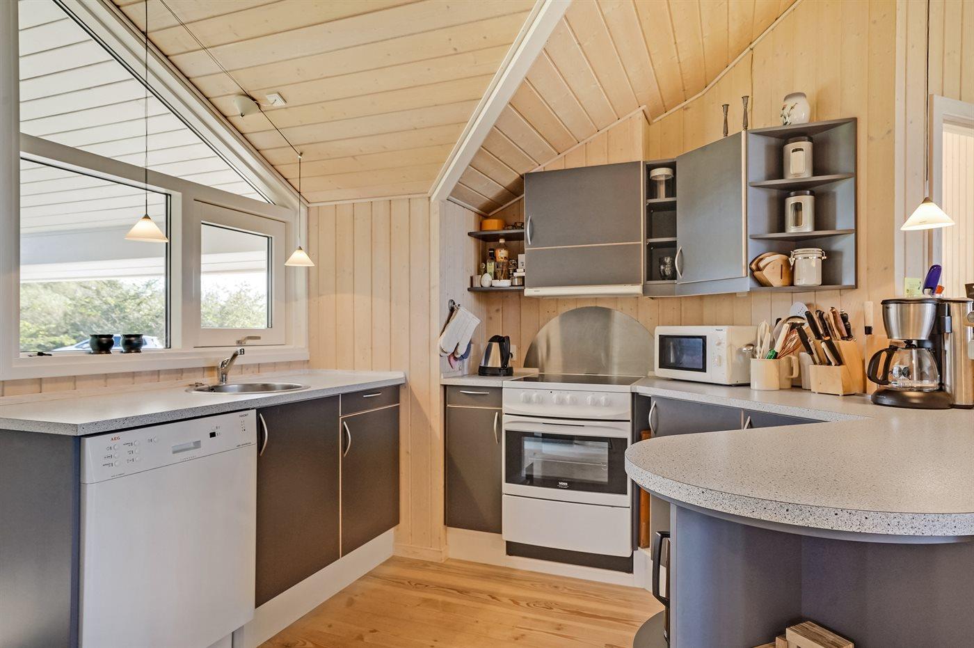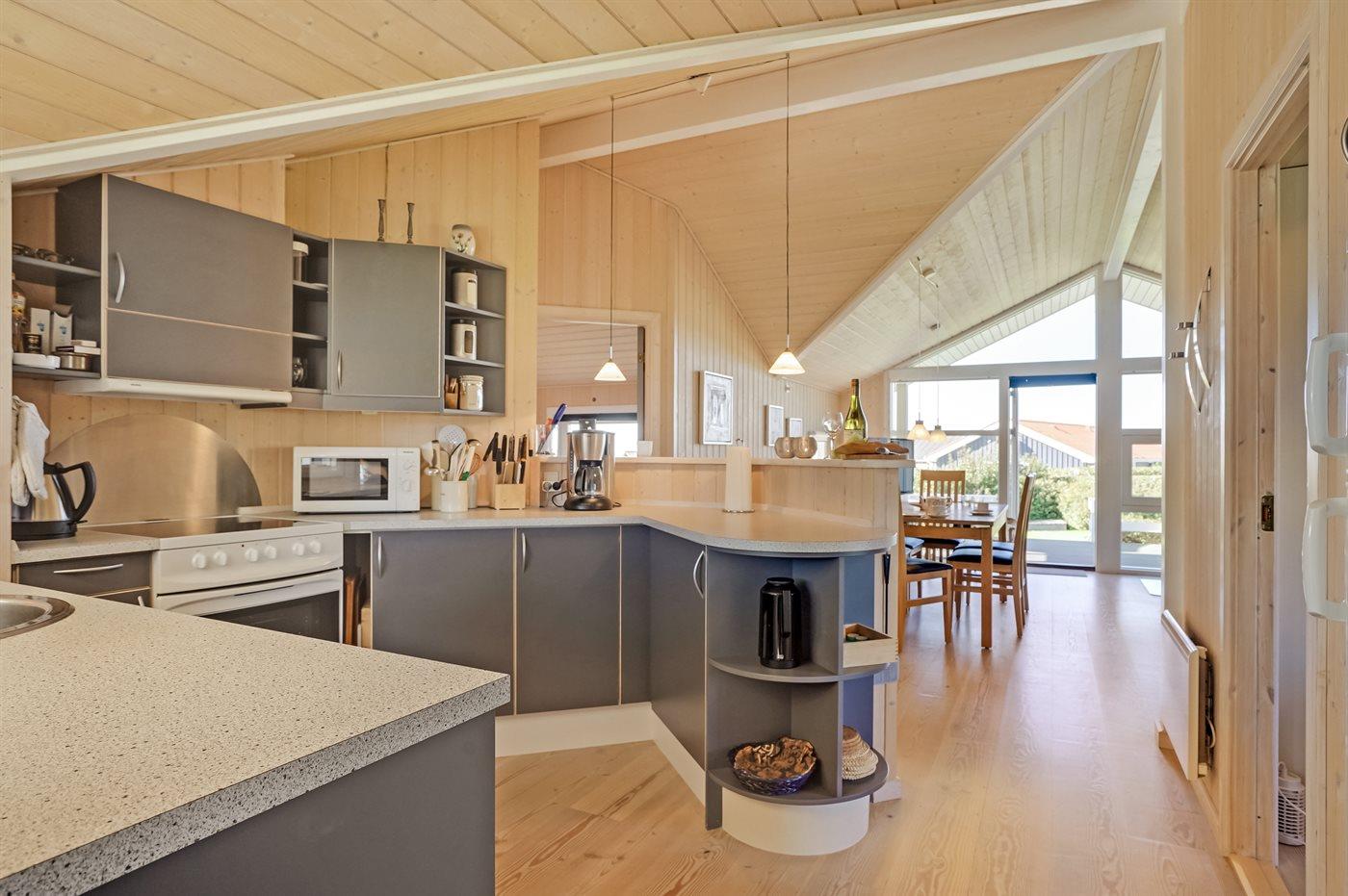 De keuken is uitgerust met koelkast Er zijn 4 keramische kookplaten, heteluchtoven, magnetron en vaatwasser.