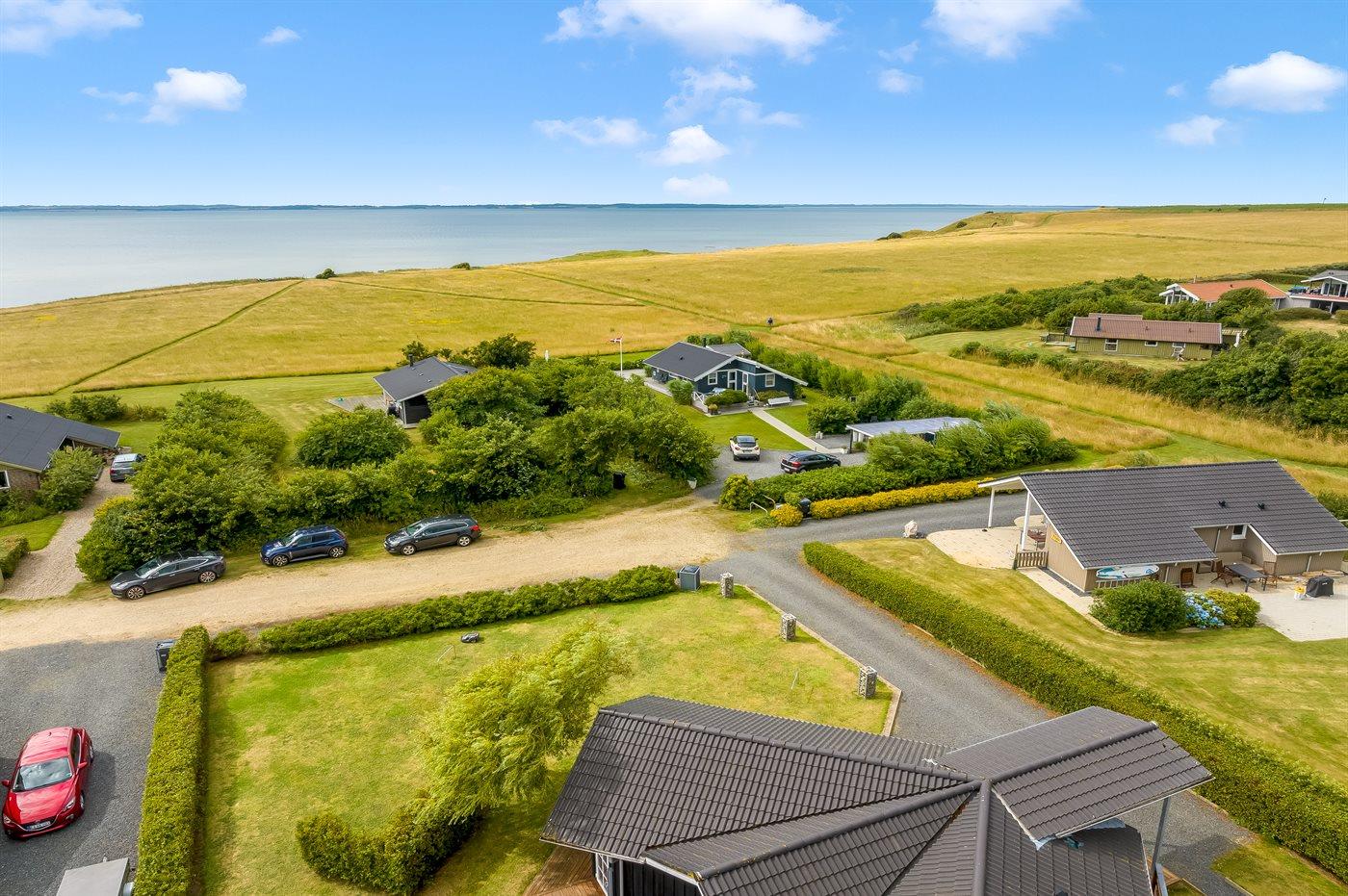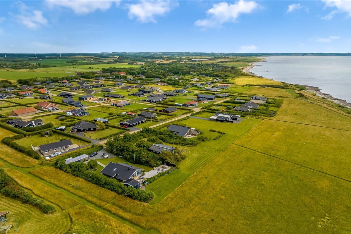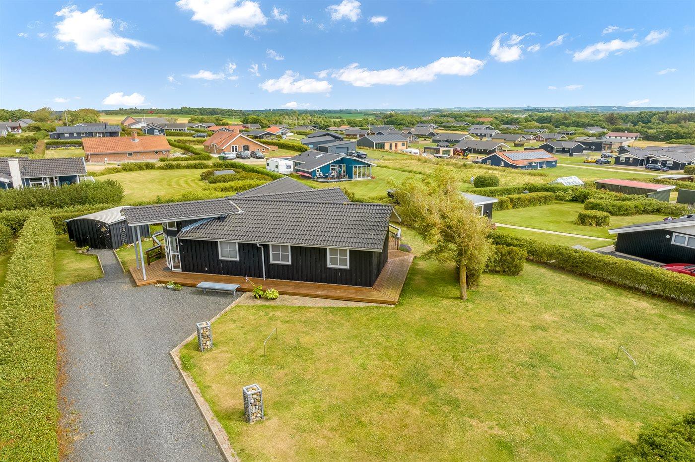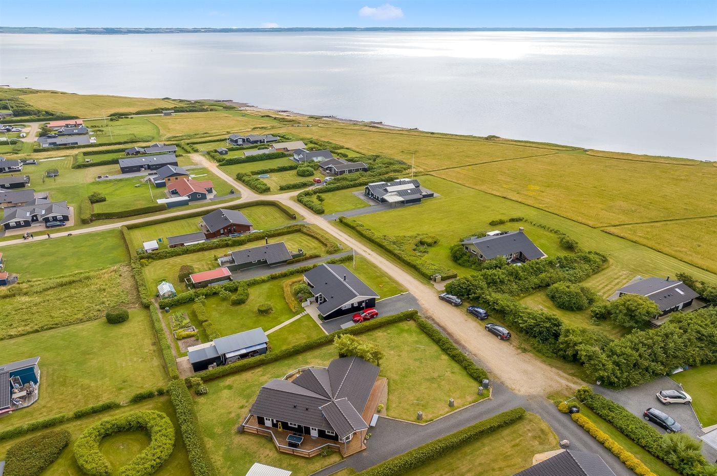 De vakantiewoning is gelegen op een 1064 m² groot aangelegde tuin. Afstand tot de fjord 200 m. Er is een zwemsteiger in de buurt. Dichtstbijzijnde winkel 500 m. Bij de vakantiewoning hoort 75 m² terras. Gereedschapsruimte. Parkeerplaats bij het huis.