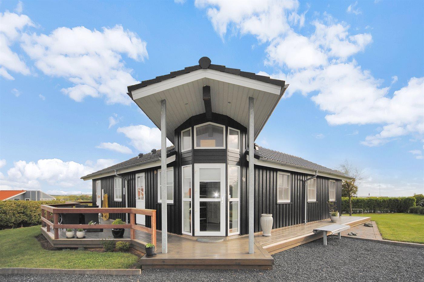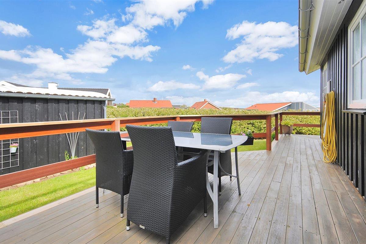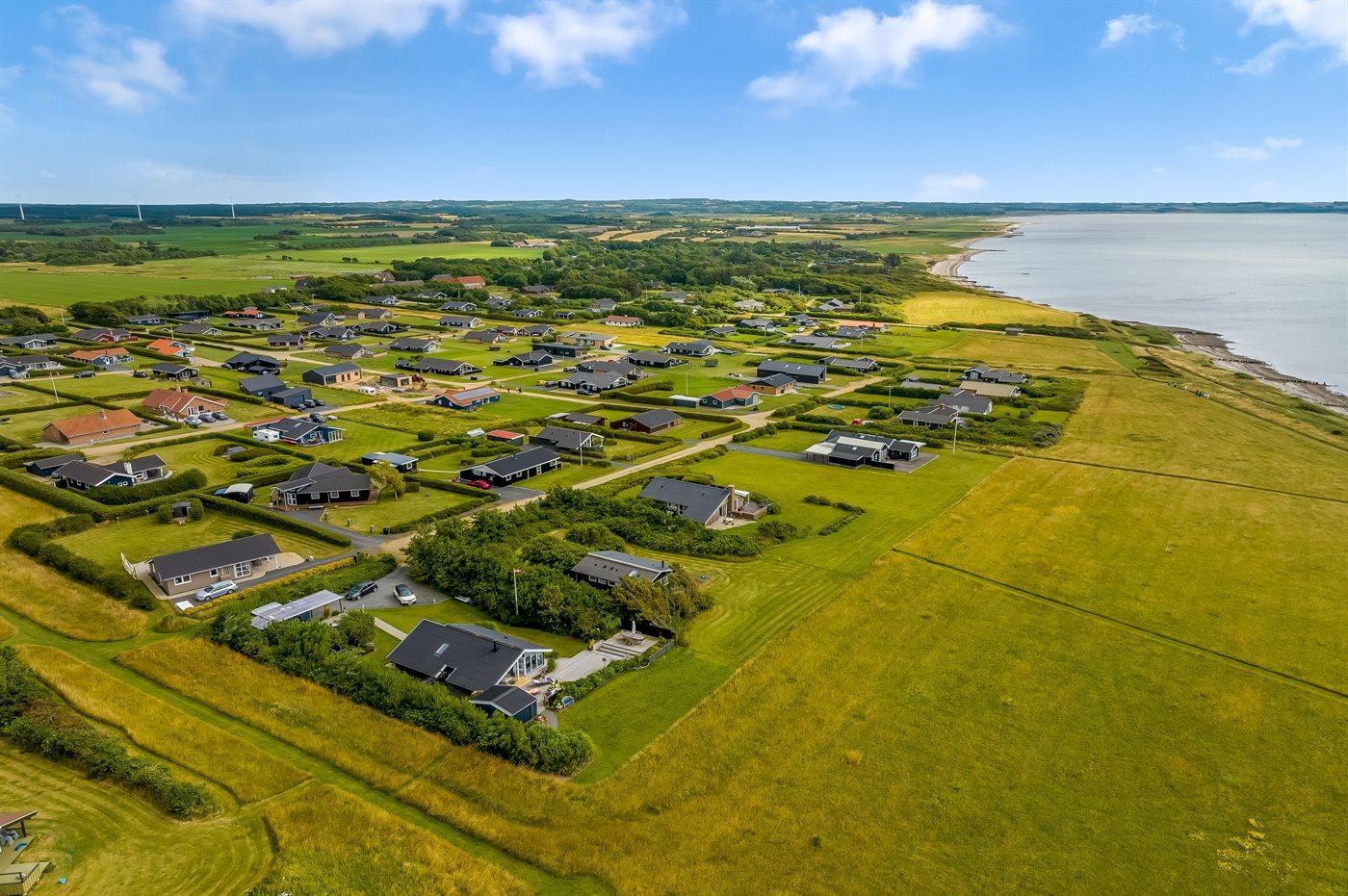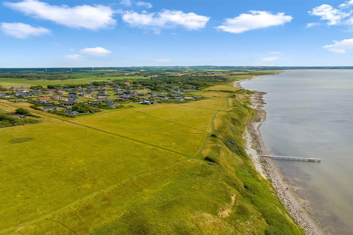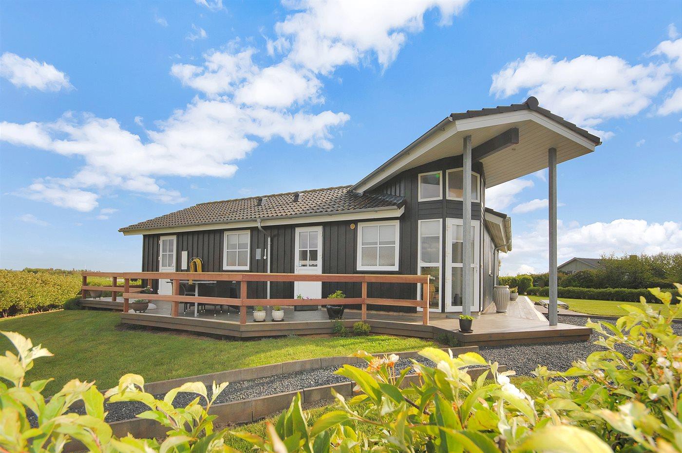 De vakantiewoning is gelegen op een 1064 m² groot aangelegde tuin. Afstand tot de fjord 200 m. Er is een zwemsteiger in de buurt. Dichtstbijzijnde winkel 500 m. Bij de vakantiewoning hoort 75 m² terras. Gereedschapsruimte. Parkeerplaats bij het huis.