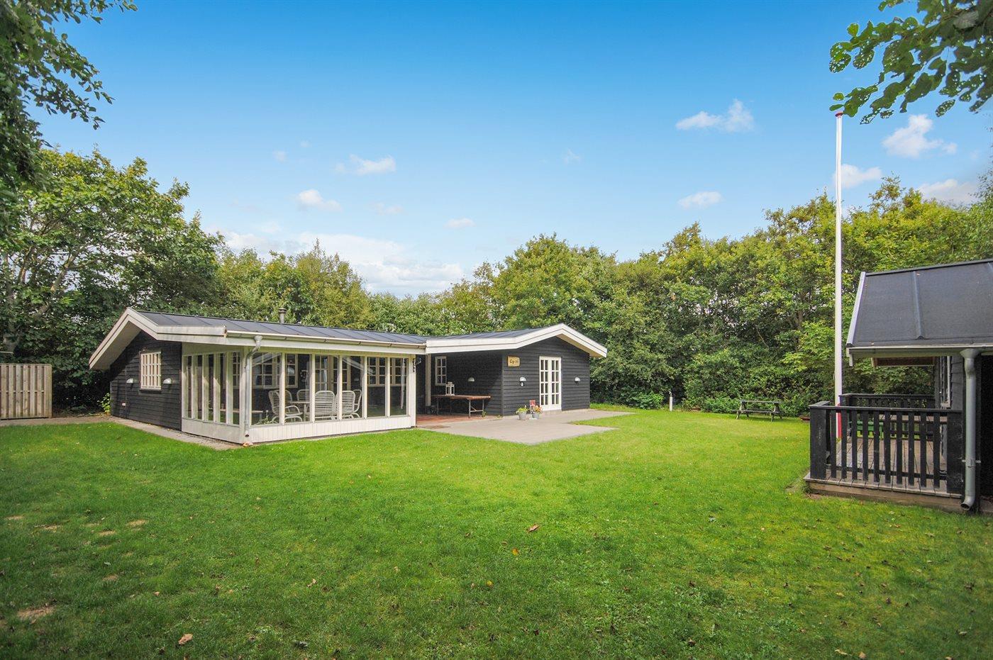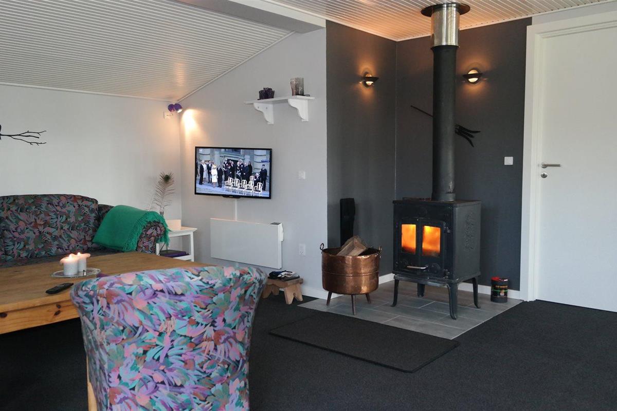 De vakantiewoning is gelegen op een 1050 m² groot Afstand tot de fjord 300 m. Dichtstbijzijnde winkel 7000 m. Bij de vakantiewoning hoort 38 m² terras. Daarnaast is er een 32 m² groot overdekt terras.Vuurplaats. Barbecue. Parkeerplaats bij het huis.