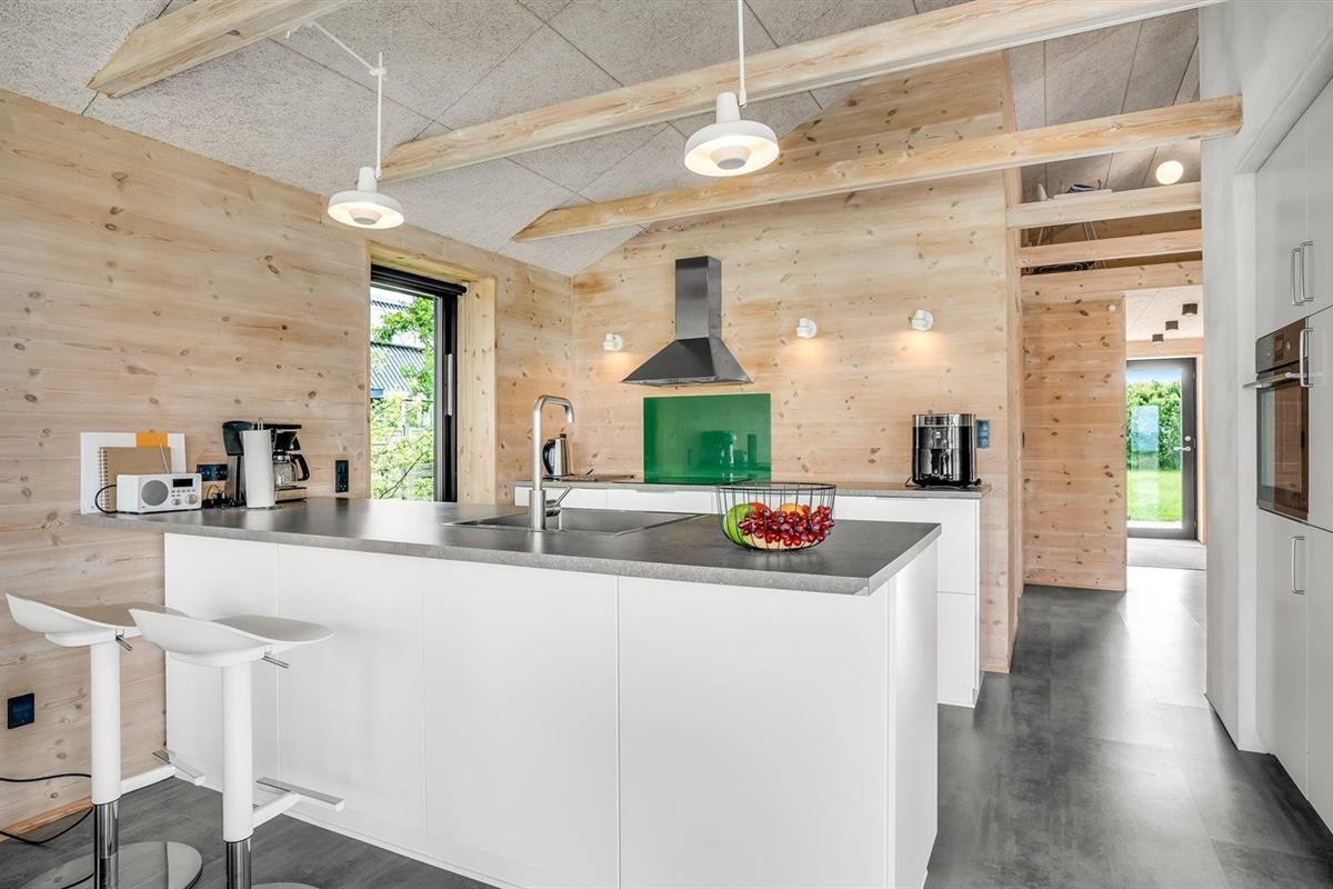 De keuken is uitgerust met koelkast Er is 4 inductiekookplaten, heteluchtoven, magnetron en vaatwasser.