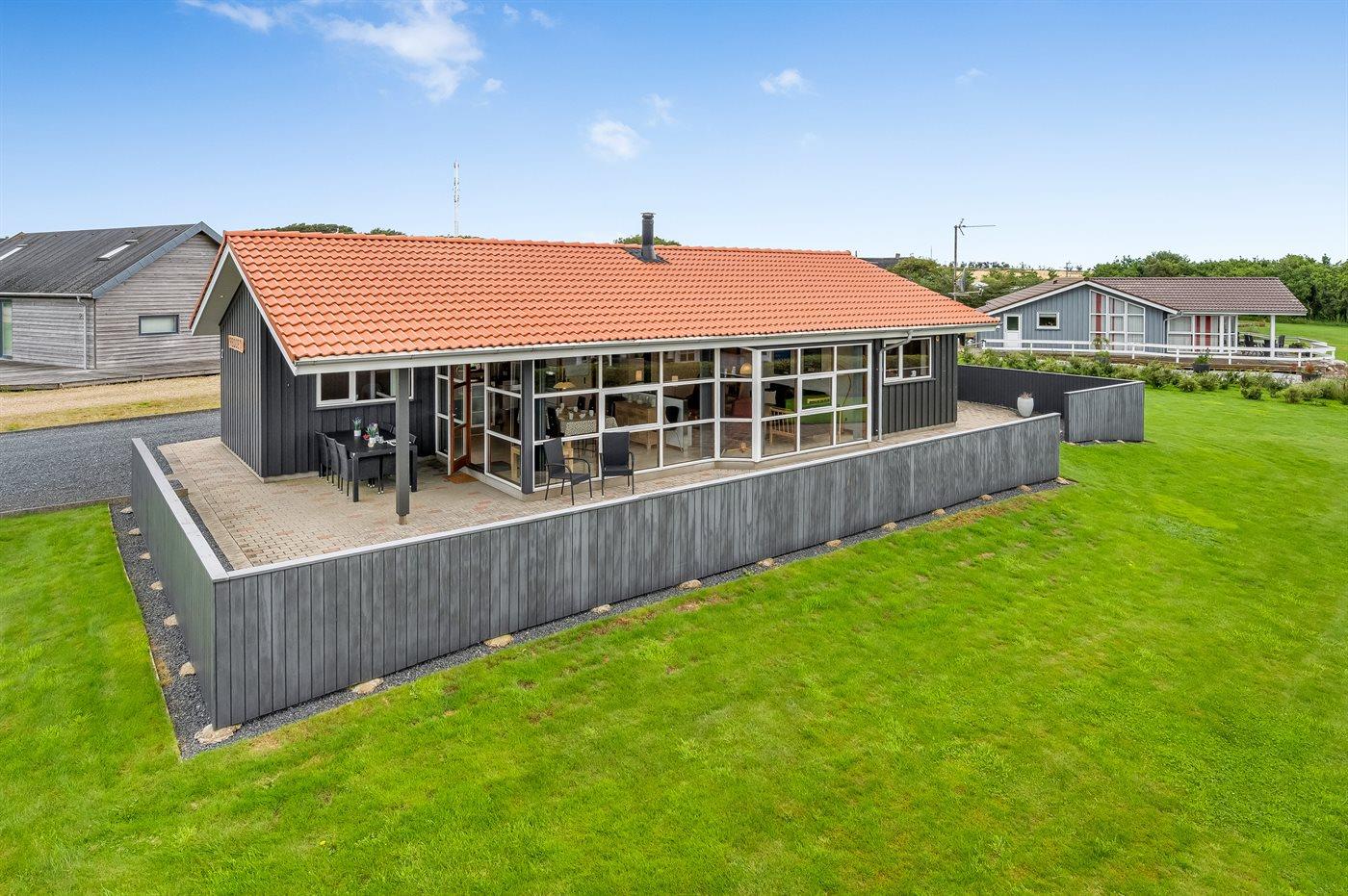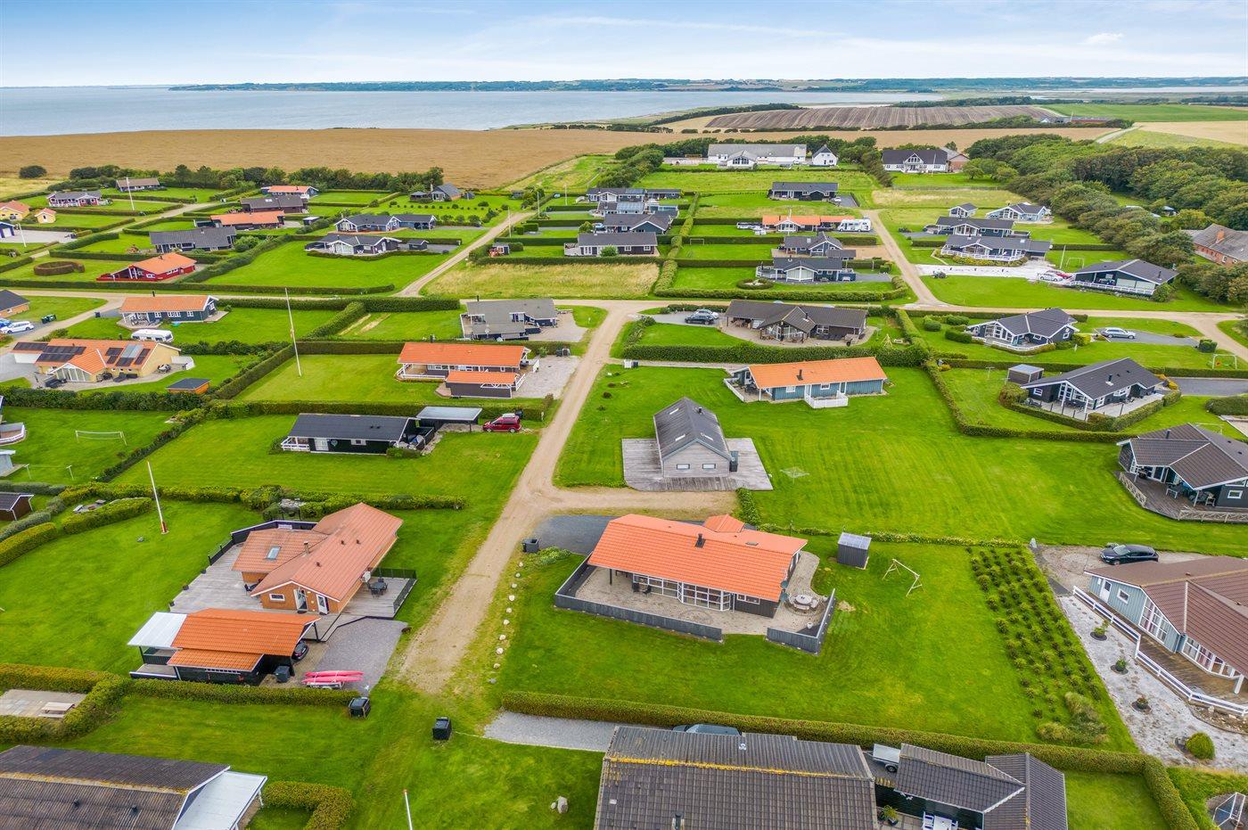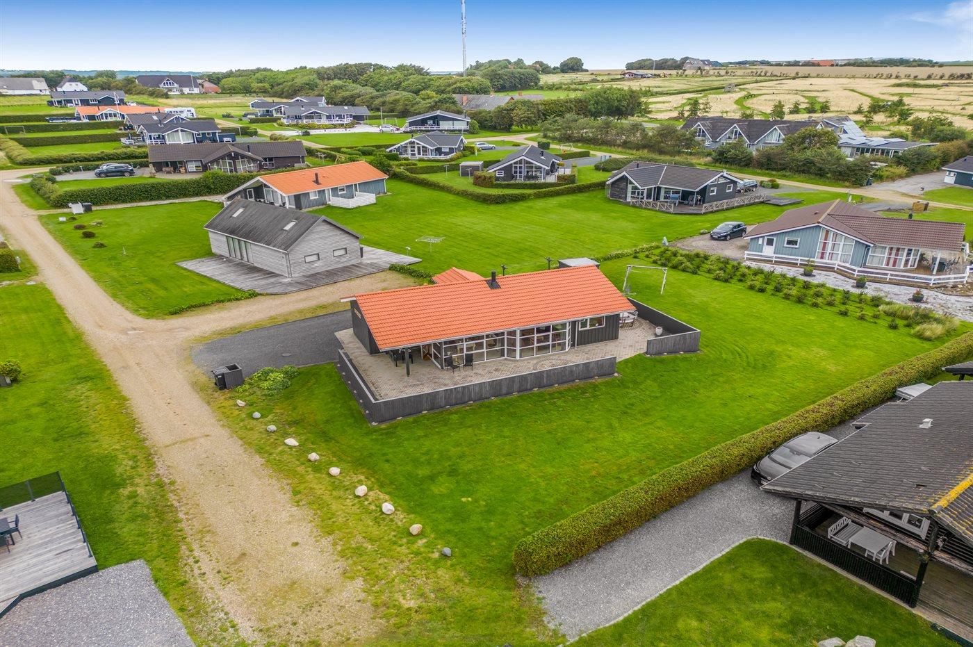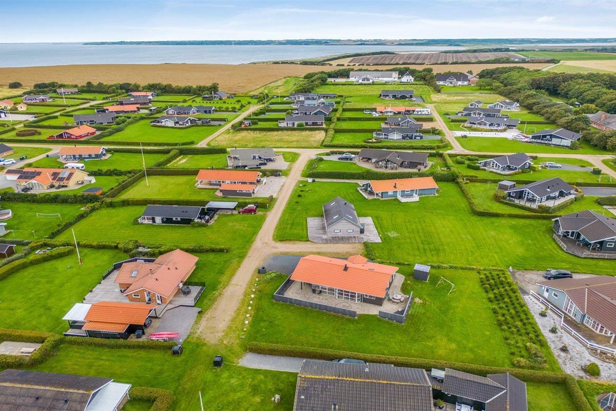 De vakantiewoning is gelegen op een 1100 m² groot natuural grond. Afstand tot de fjord 400 m. Er is een zwemsteiger in de buurt. Dichtstbijzijnde winkel 1000 m. Bij de vakantiewoning hoort 75 m² terras. Daarnaast is er een 15 m² groot overdekt terras. Schommel. Barbecue. Parkeerplaats bij het huis.