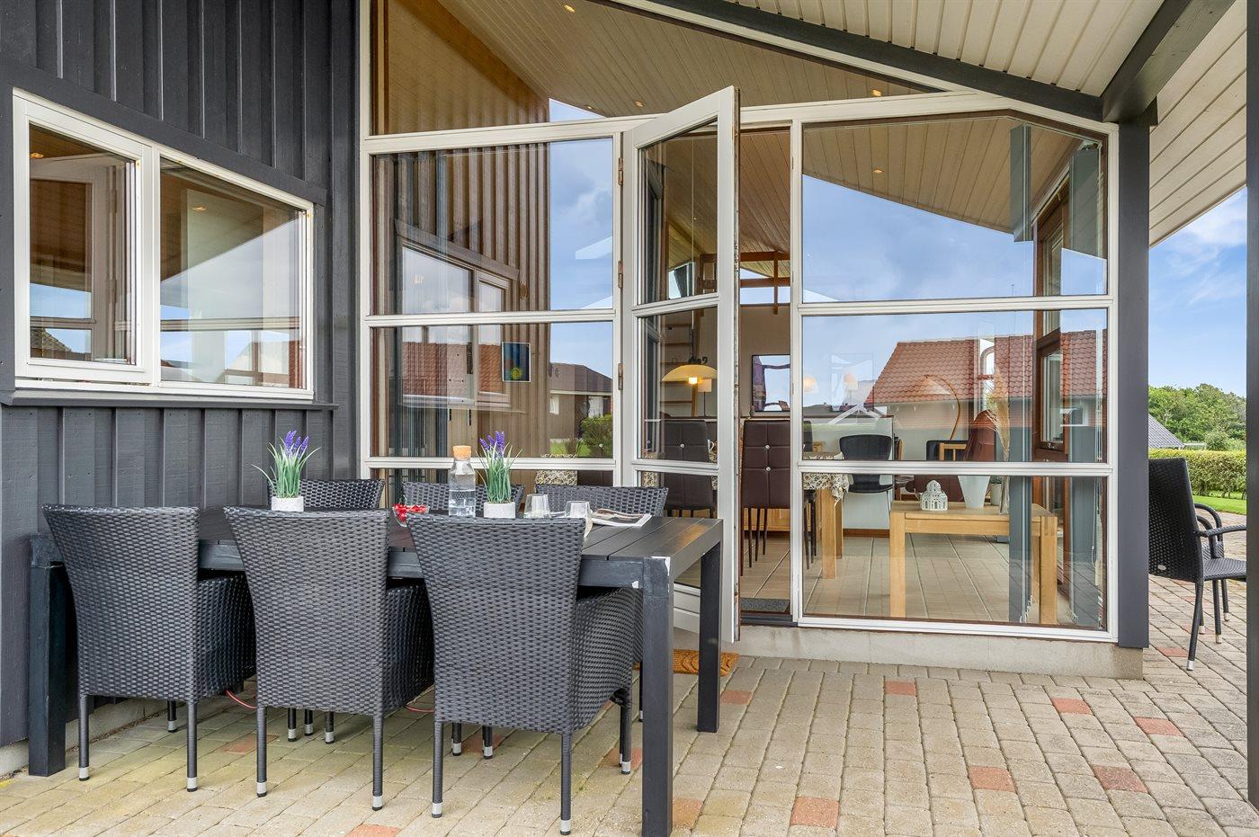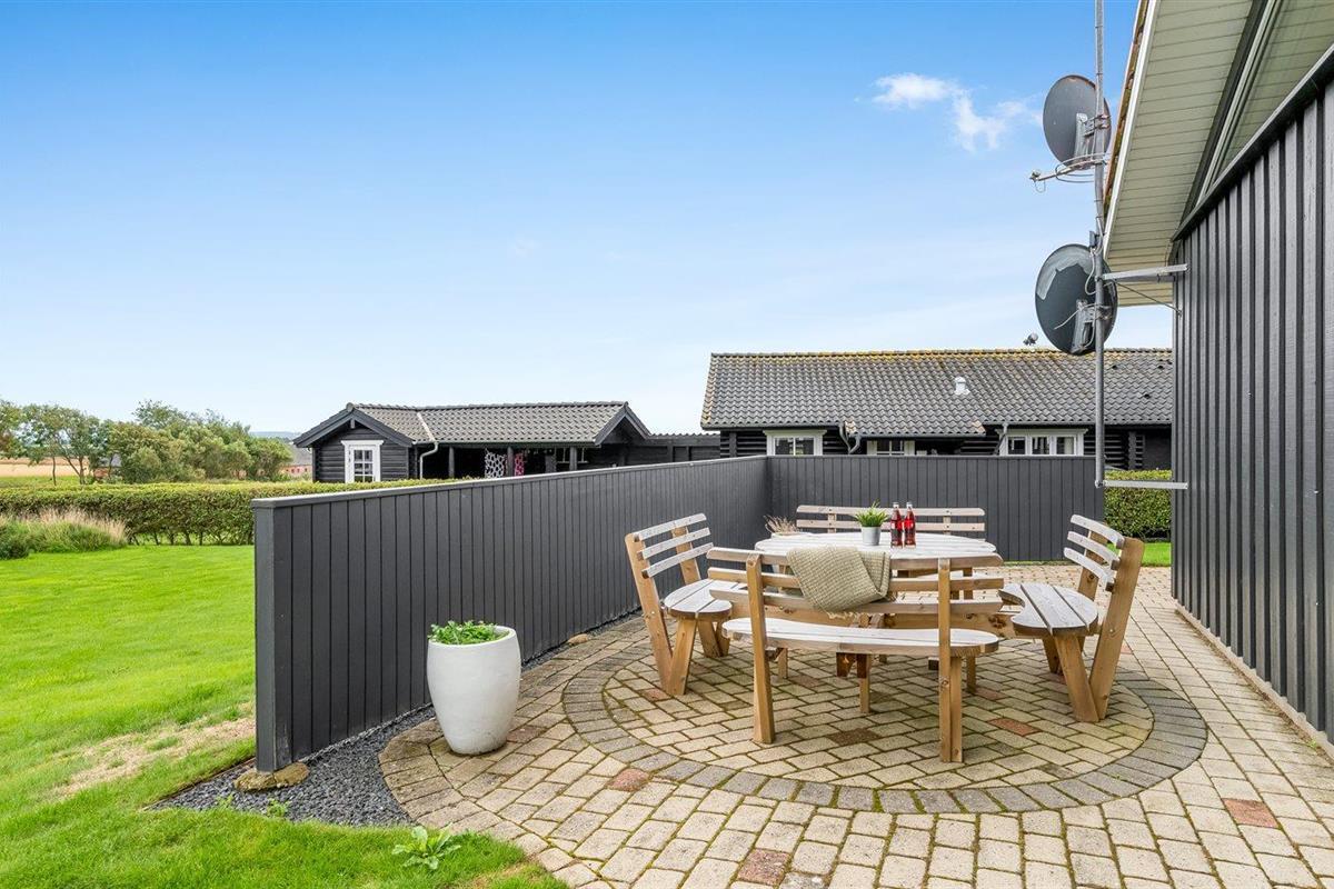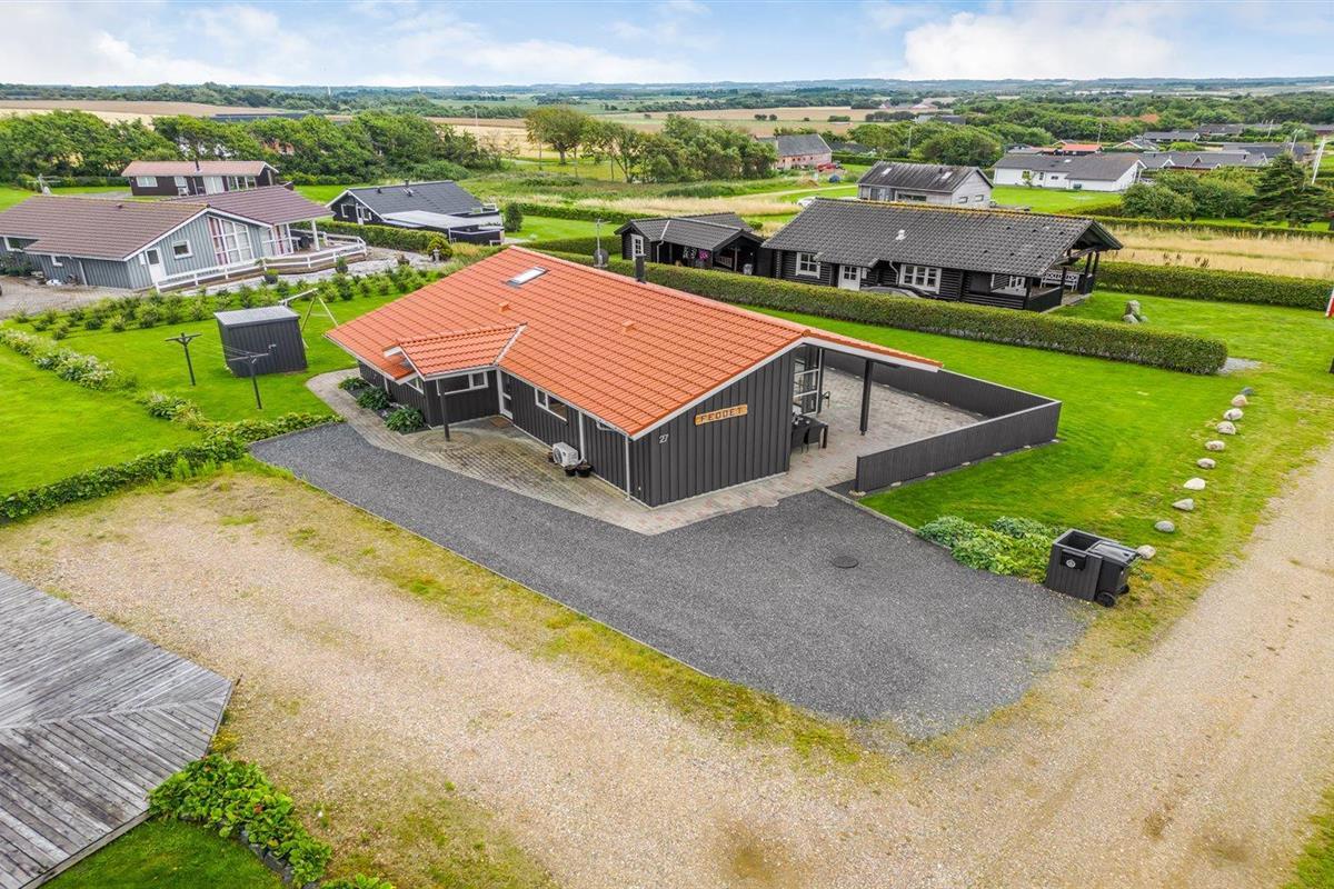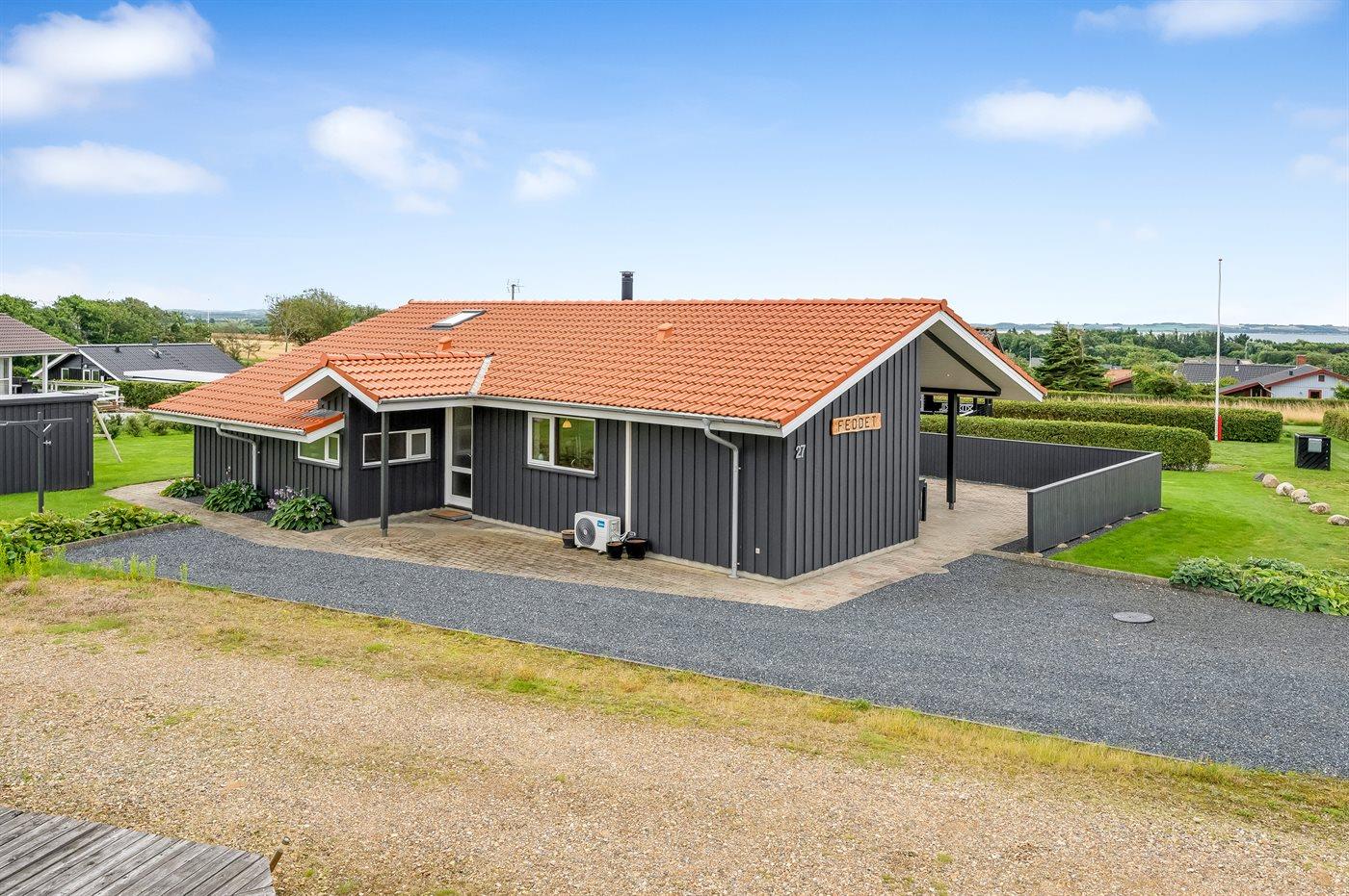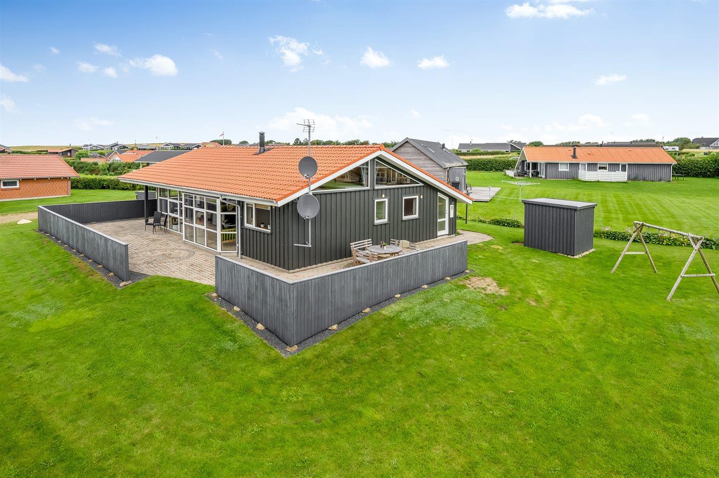 De vakantiewoning is gelegen op een 1100 m² groot natuural grond. Afstand tot de fjord 400 m. Er is een zwemsteiger in de buurt. Dichtstbijzijnde winkel 1000 m. Bij de vakantiewoning hoort 75 m² terras. Daarnaast is er een 15 m² groot overdekt terras. Schommel. Barbecue. Parkeerplaats bij het huis.