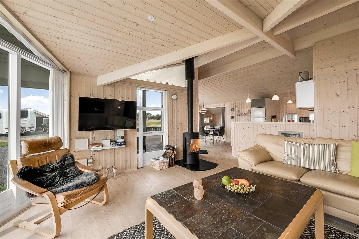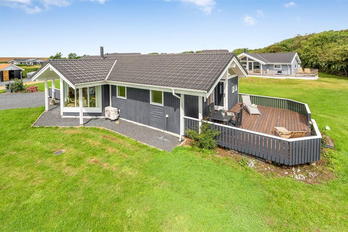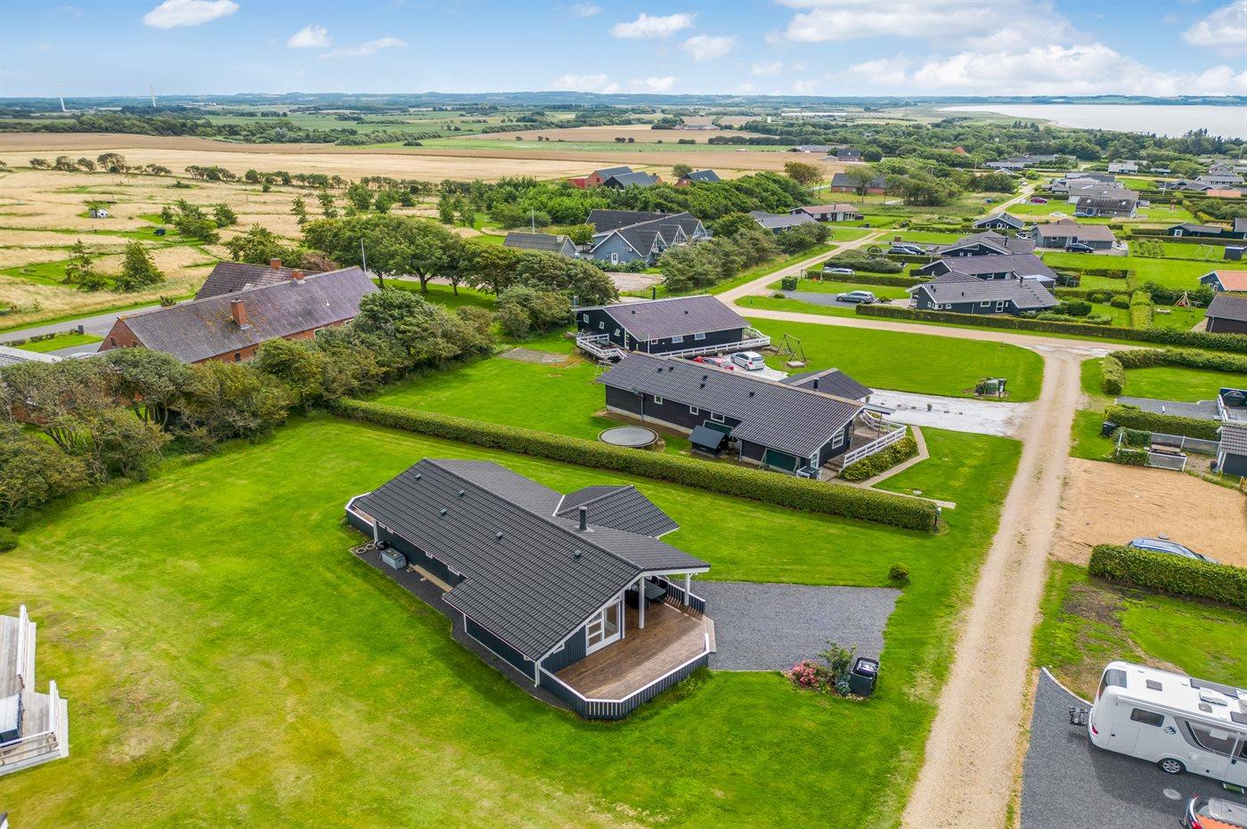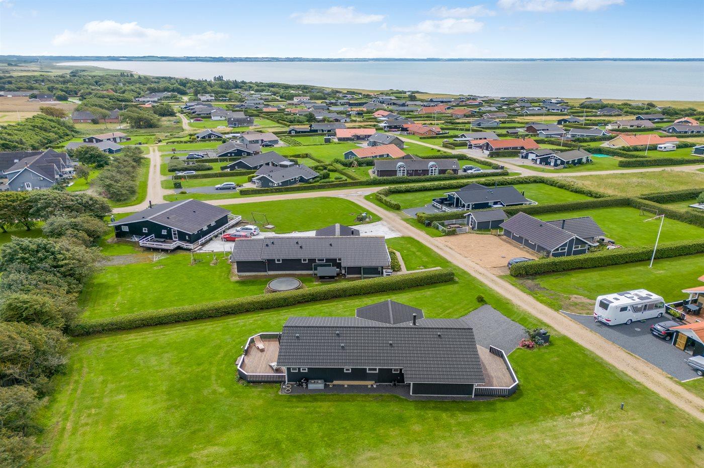De vakantiewoning is gelegen op een 1030 m² groot aangelegde tuin. Afstand tot de fjord 350 m. Dichtstbijzijnde winkel 3000 m. Bij de vakantiewoning hoort 32 m² terras. Daarnaast is er een 8 m² groot overdekt terras. Afstand tot speelplaats 750 m. Het huis heeft een stopcontact voor het opladen van een elektrische auto. Oplaadstekker type 2. Met 11 kW-laadvermogen. Parkeerplaats bij het huis.
