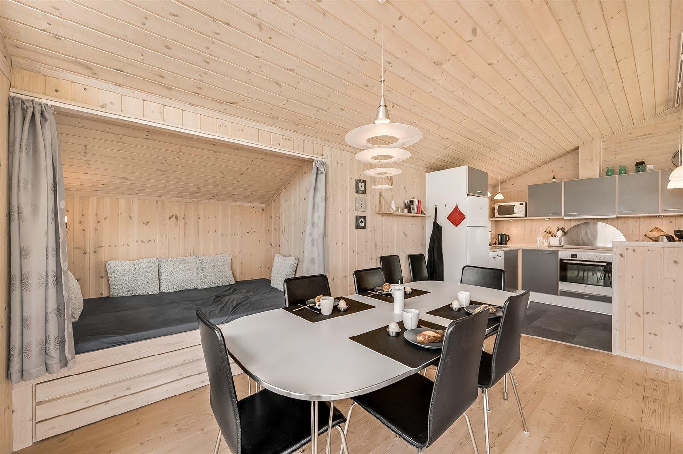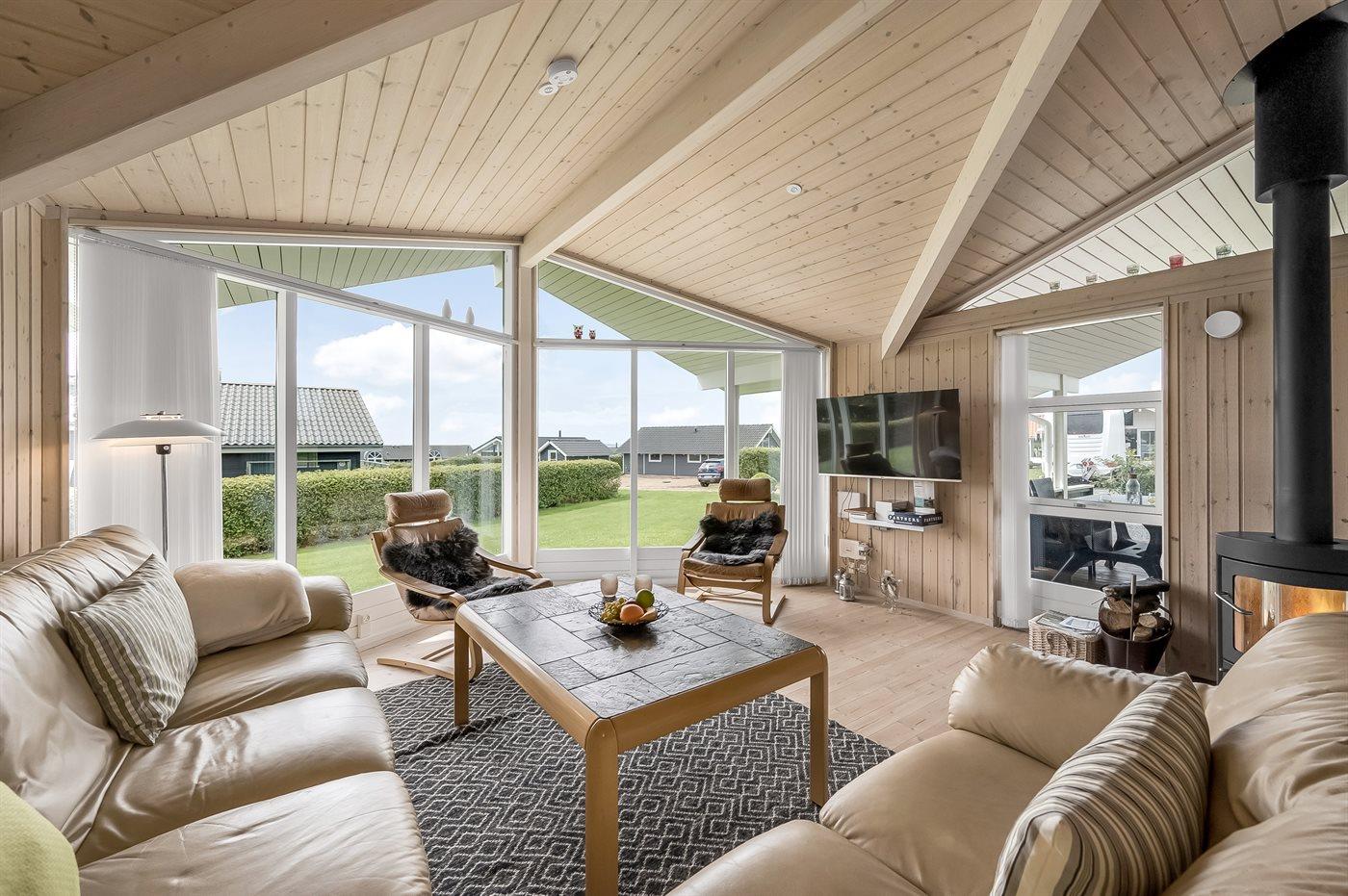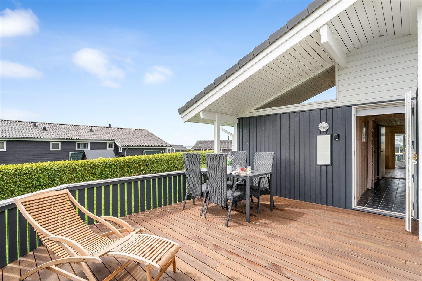 De vakantiewoning is gelegen op een 1030 m² groot aangelegde tuin. Afstand tot de fjord 350 m. Dichtstbijzijnde winkel 3000 m. Bij de vakantiewoning hoort 32 m² terras. Daarnaast is er een 8 m² groot overdekt terras. Afstand tot speelplaats 750 m. Het huis heeft een stopcontact voor het opladen van een elektrische auto. Oplaadstekker type 2. Met 11 kW-laadvermogen. Parkeerplaats bij het huis.