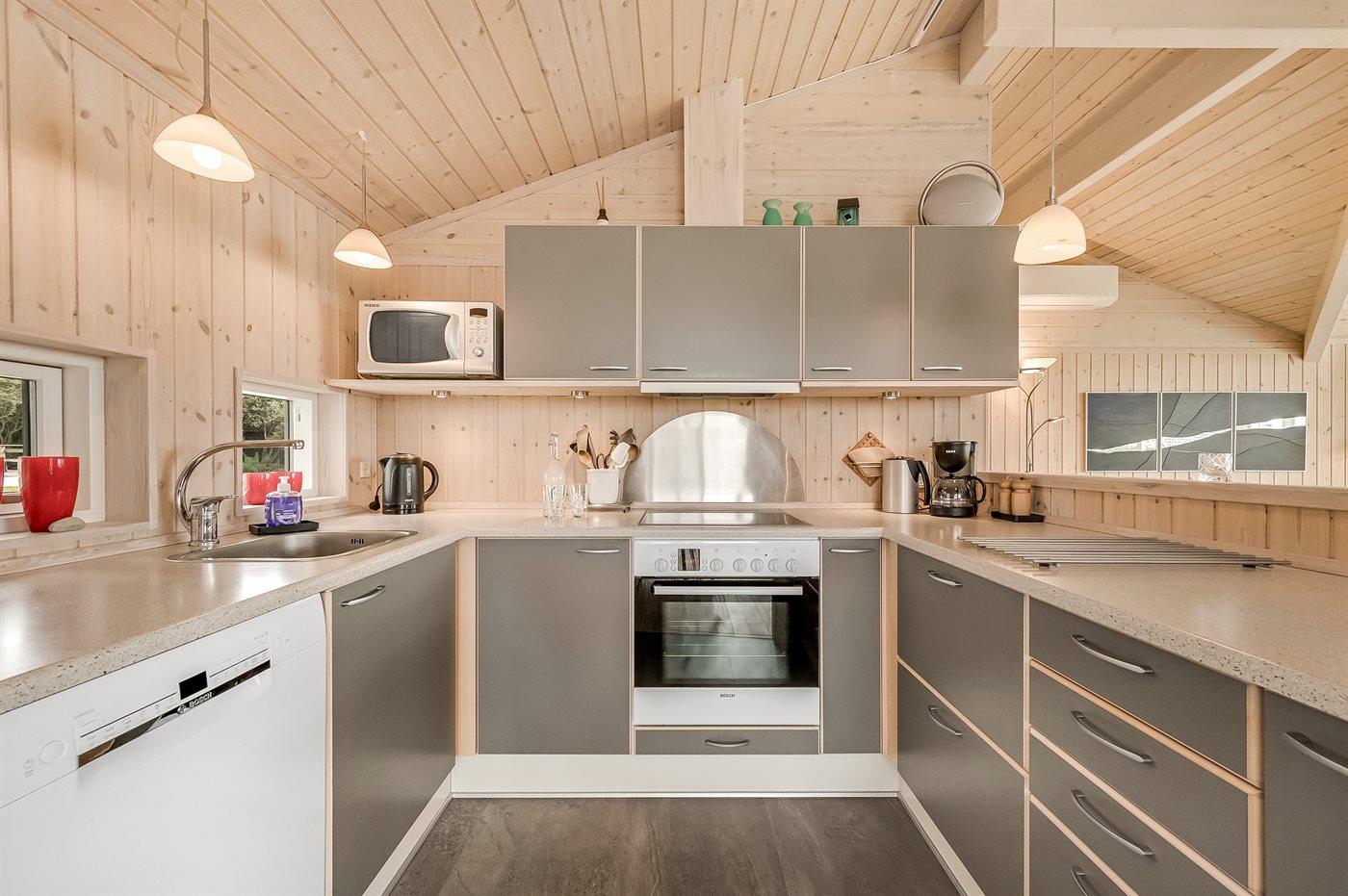 De keuken is uitgerust met koelkast Er zijn 4 keramische kookplaten, heteluchtoven, magnetron en vaatwasser.