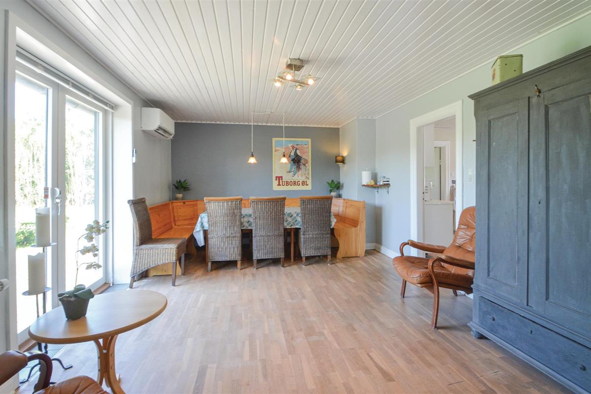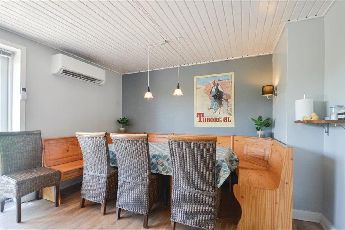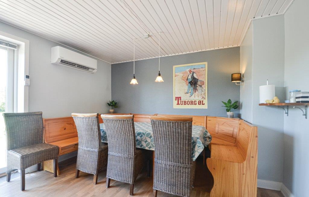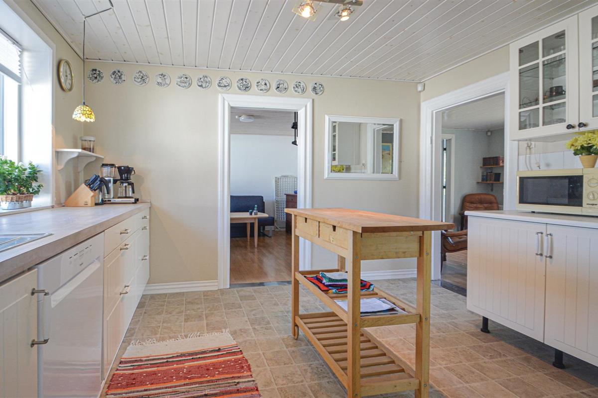 Dit landhuis is een fantastisch vakantiehuis voor een grote familie of een groep vrienden met maximaal 10 personen. Het huis bestaat uit een grote en gezellige keuken, die uitnodigt om gezellig met de hele familie te koken. De keuken is goed uitgerust met onder andere een vaatwasser, koffiezetapparaat en magnetron. Direct naast de keuken vindt u een mooie eethoek met ruimte voor alle gasten. Op de eerste verdieping is er een woonkamer met comfortabele banken waar u kunt zitten en genieten van het uitzicht op het fjord en de groene weiden. Vanuit de woonkamer heeft u toegang tot een mooi terras waar u kunt genieten van uw maaltijden of een glas wijn tijdens de lange, warme zomeravonden.