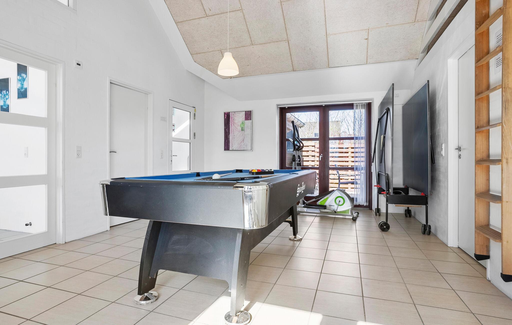 Mooi vakantiehuis met veel details en een heerlijk zwembad. Een huis met veel moderne apparatuur, bijv. biljart, beach volley, PlayStation, internet, wat u zeker veel afwisseling zal bieden. Hetzelfde geldt voor het grote zwembad, dat uitnodigt tot allerlei activiteiten in het natte element. In vergelijking met andere poolhouses beschikt het huis over een energiebesparende en dus milieuvriendelijke warmtepomp. Gelegen in het rustige vakantiegebied Ejsingholm, ligt deze woning op slechts een paar stappen van het water. Het strand bij het fjord is kindvriendelijk, het is ondiep en zeer geschikt om te zeilen.