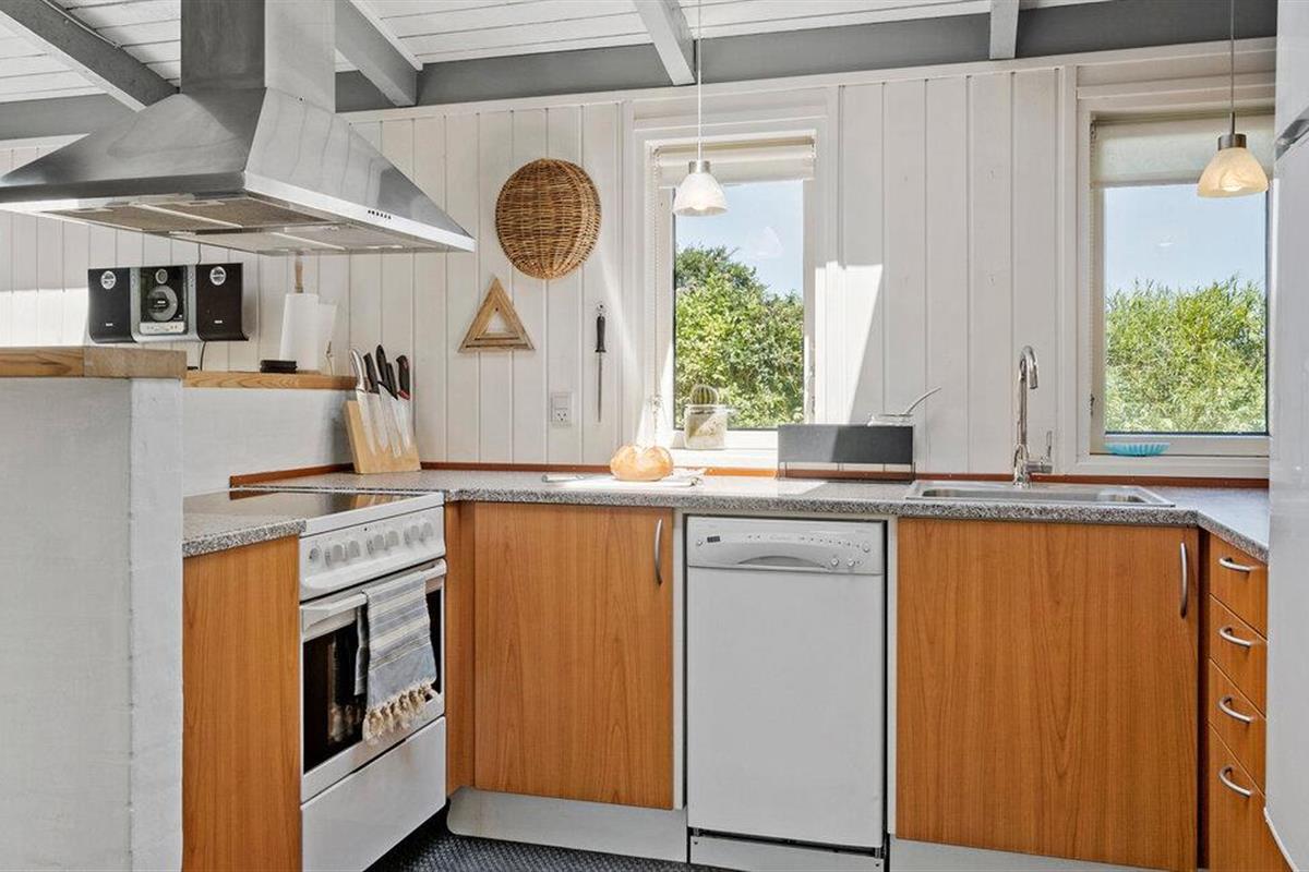Welkom in Venø Bay, waar dit charmante vakantiehuis op je wacht. Het gezellige huis verwelkomt je met een warme, uitnodigende sfeer. Begin de dag met een gezamenlijk ontbijt in de open, goed uitgeruste keuken. In de aangrenzende eethoek kun je plannen maken voor de dag en genieten van maaltijden in een gezellige sfeer. De lichte woonkamer, overspoeld met natuurlijk licht dankzij de grote ramen, nodigt je uit om te ontspannen. Maak het jezelf gemakkelijk op de gezellige fauteuils en bank en geniet van de rust.