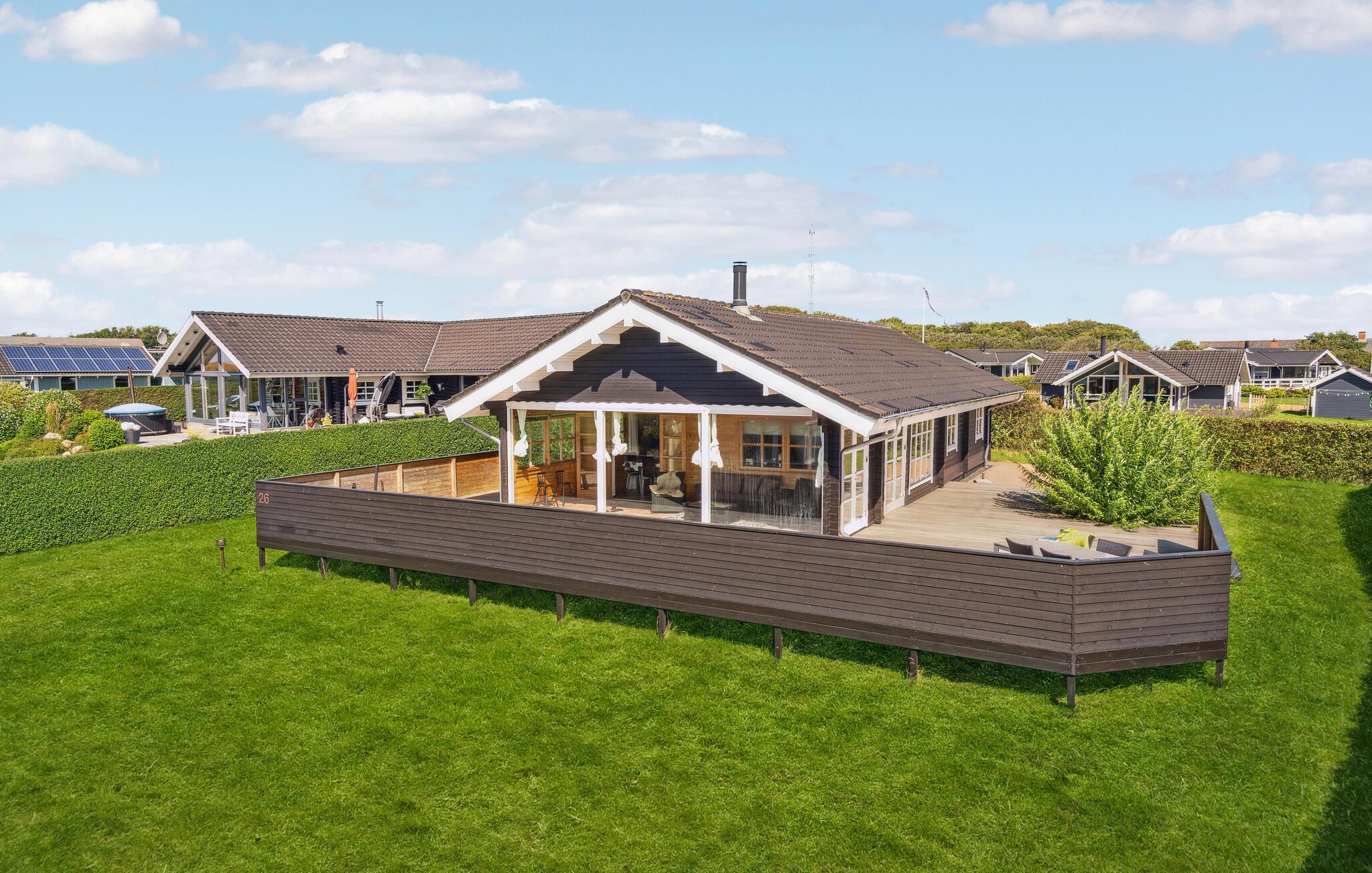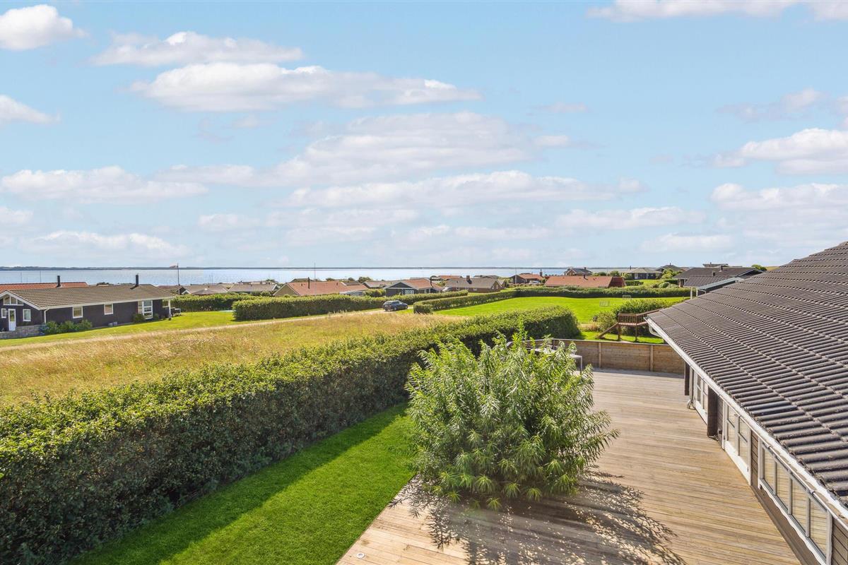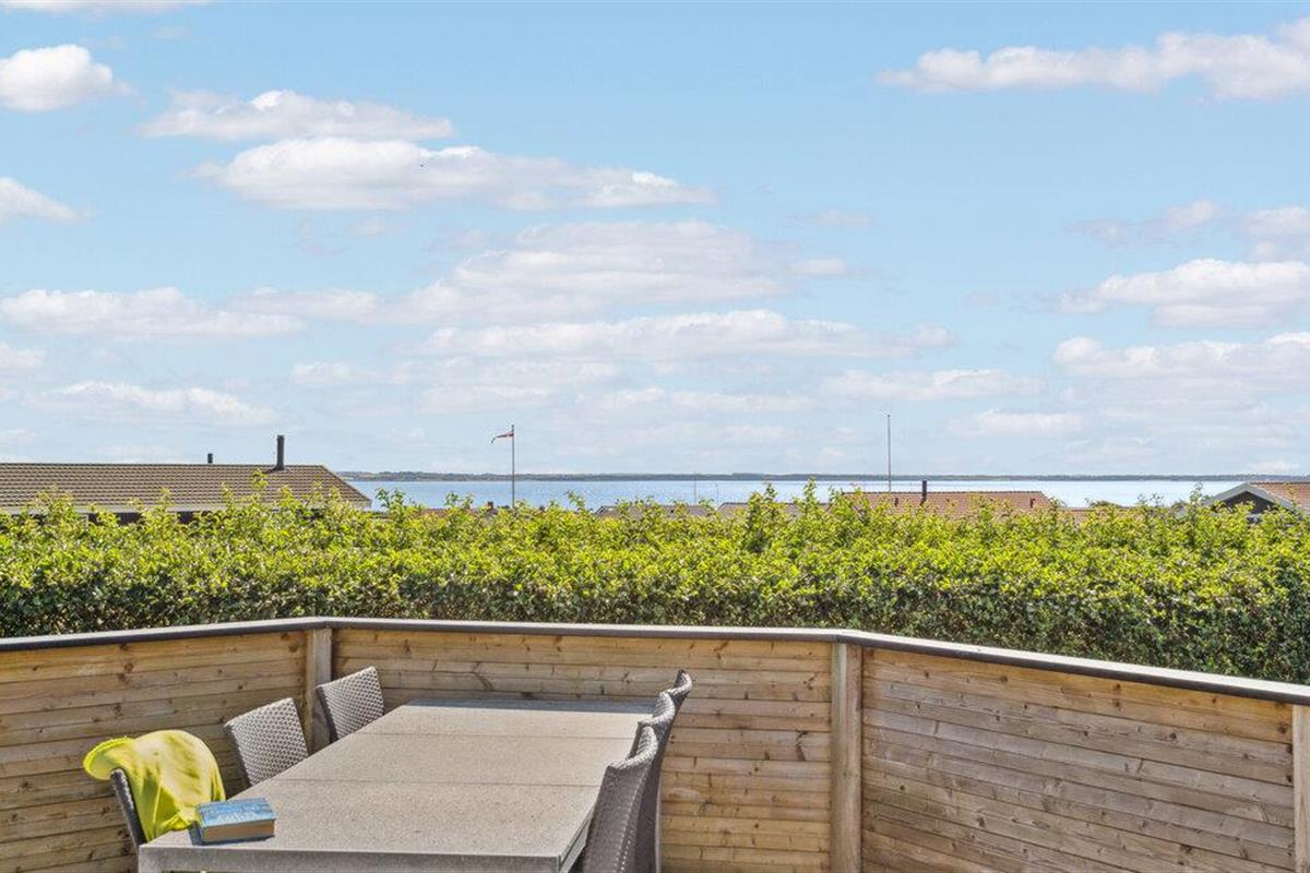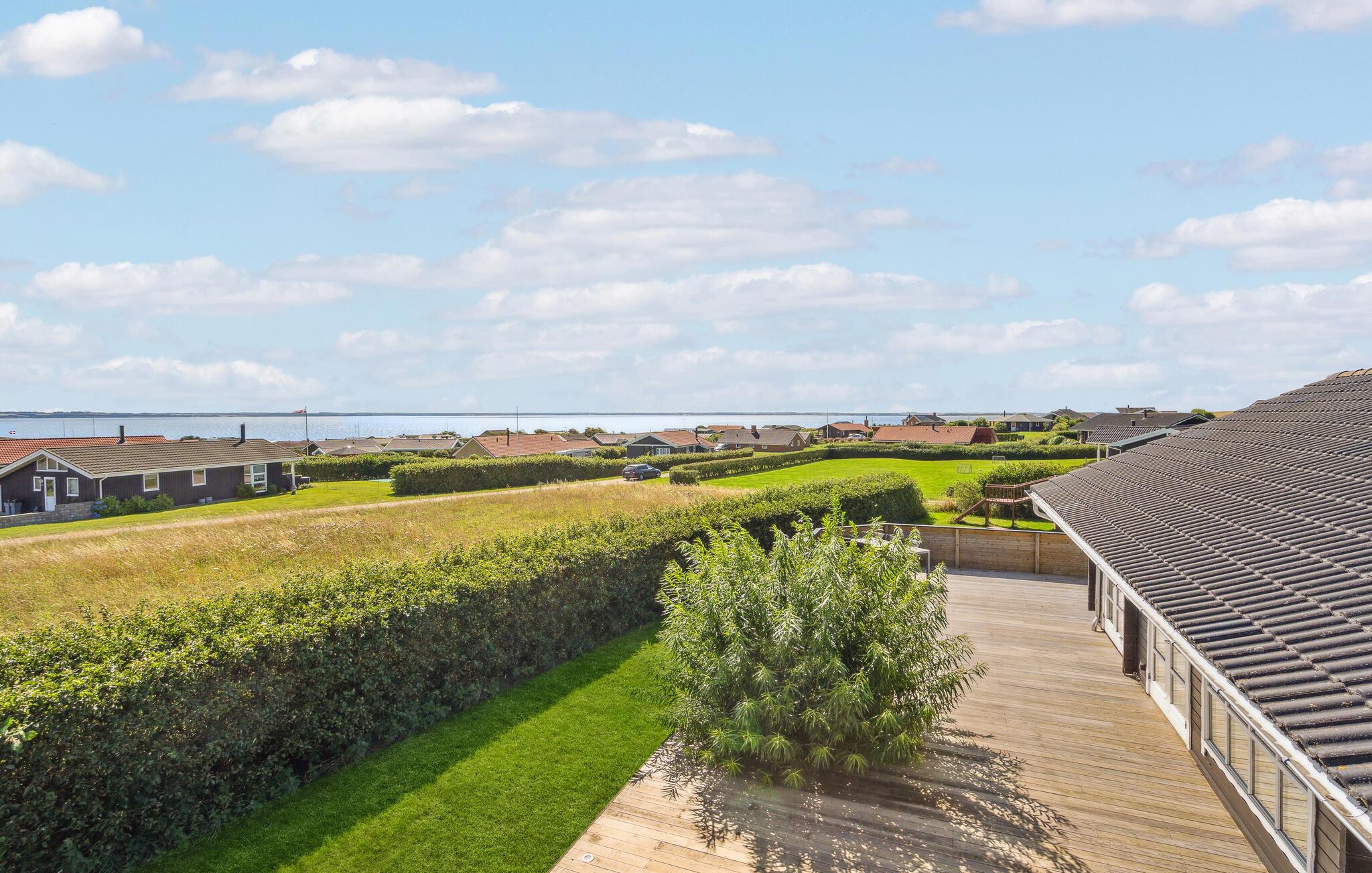 Ruime blokhut met bubbelbad en panoramisch uitzicht aan de Limfjord, perfect voor een ontspannen familievakantie.