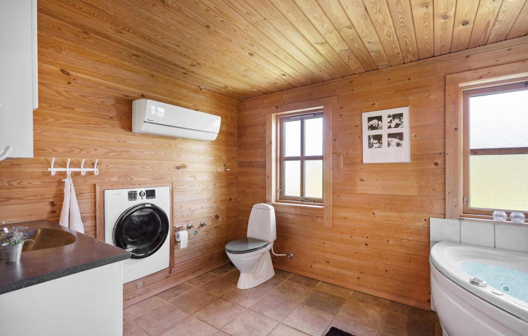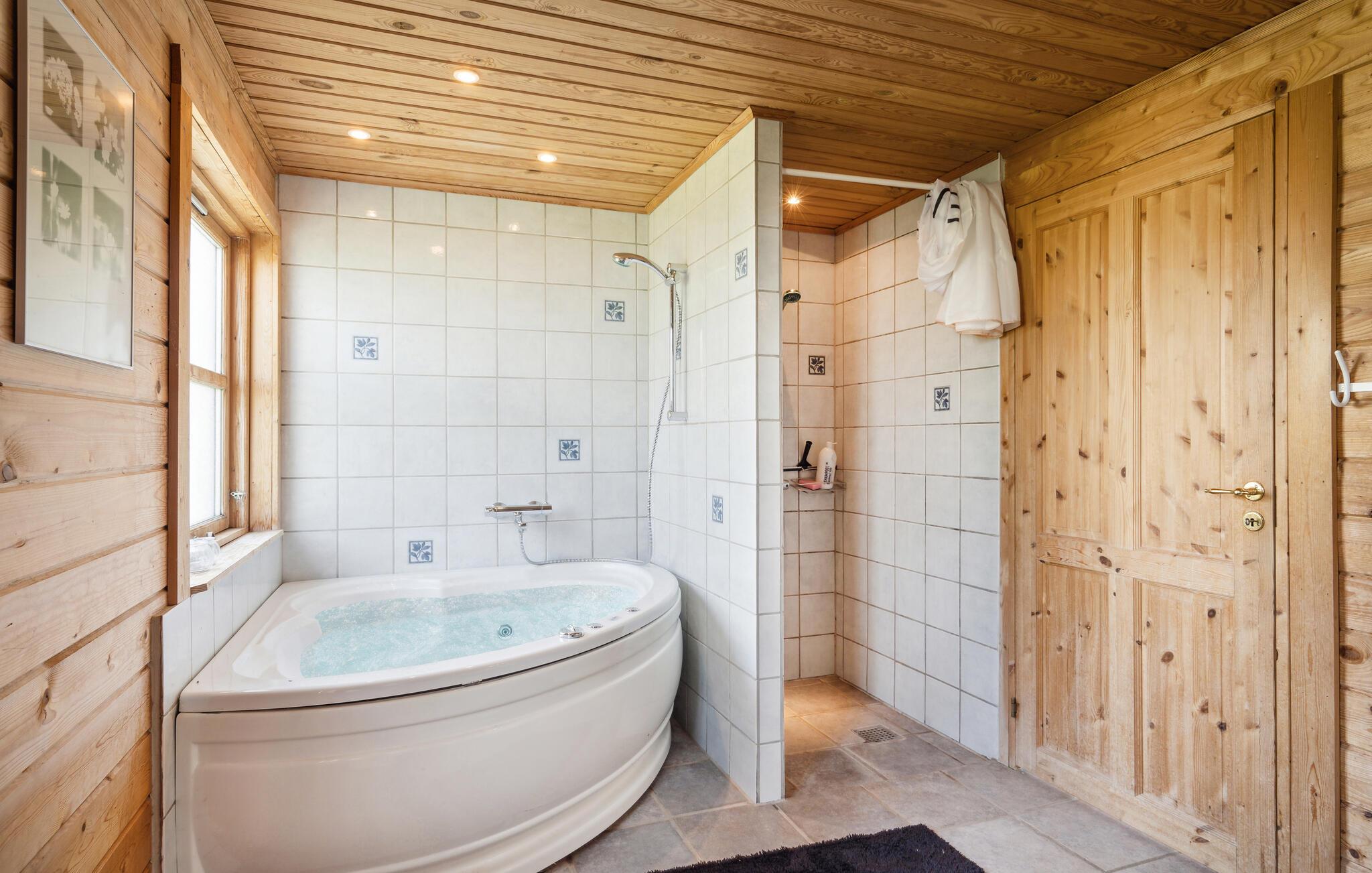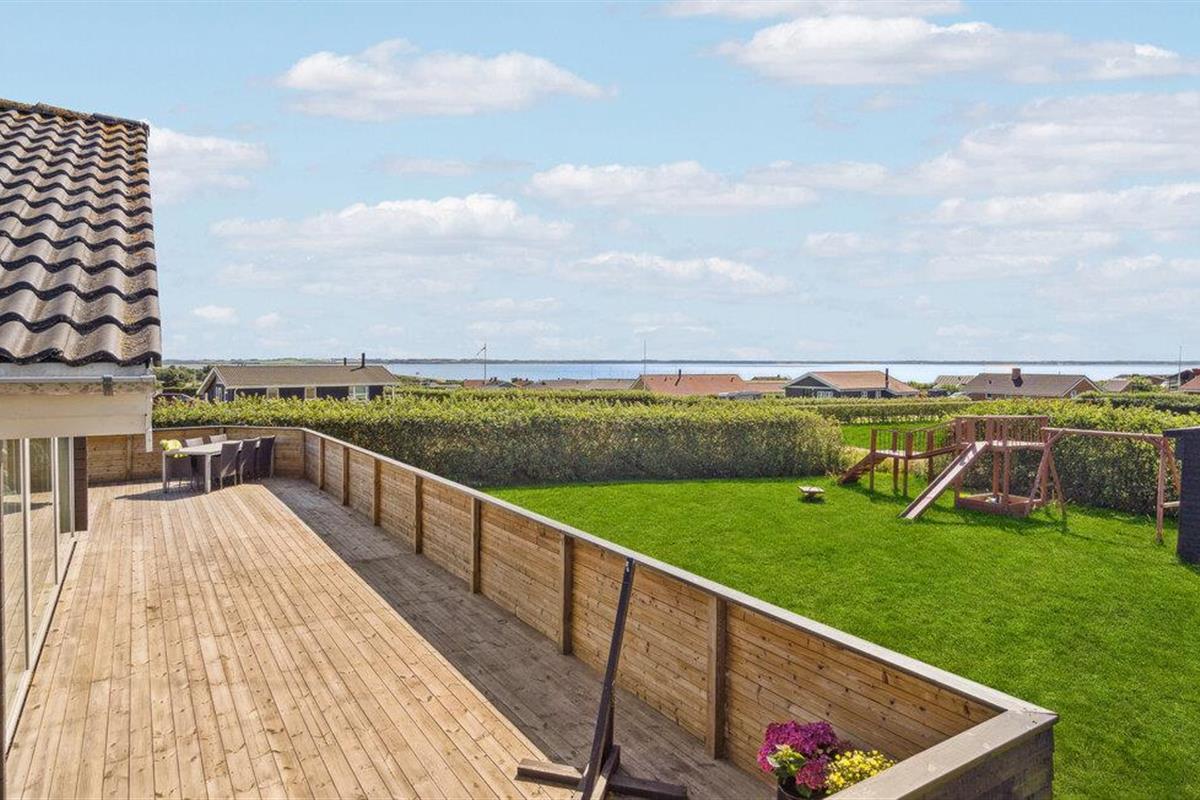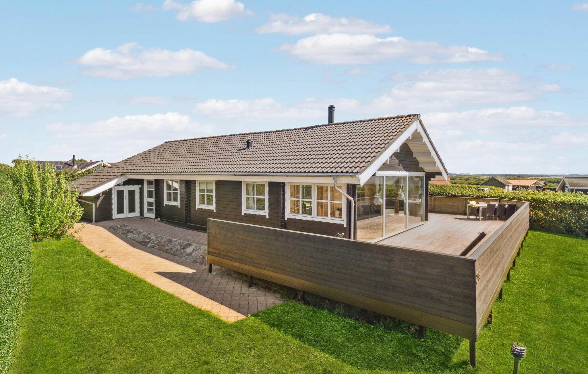 Ruime blokhut met bubbelbad en panoramisch uitzicht aan de Limfjord, perfect voor een ontspannen familievakantie.