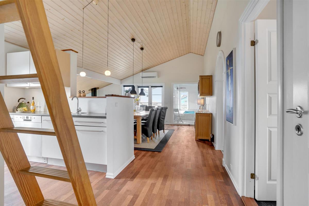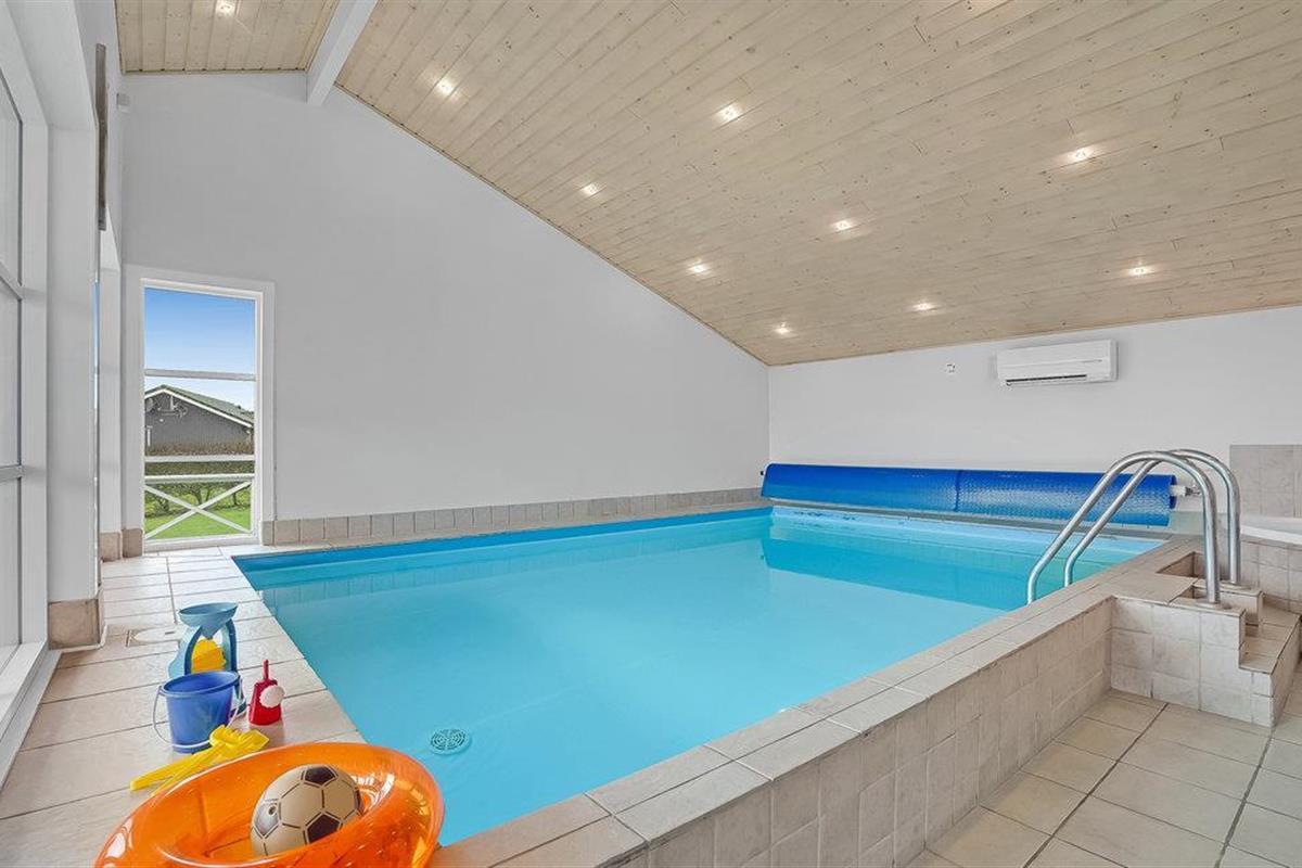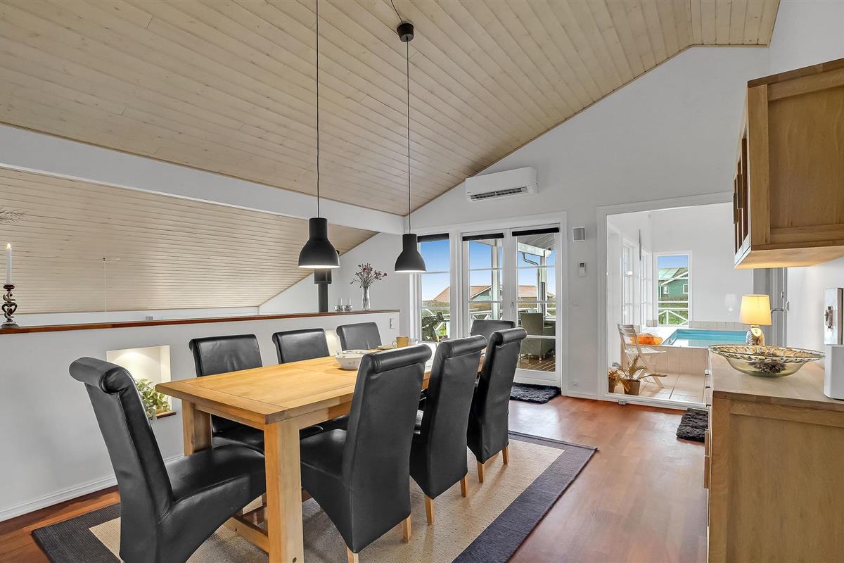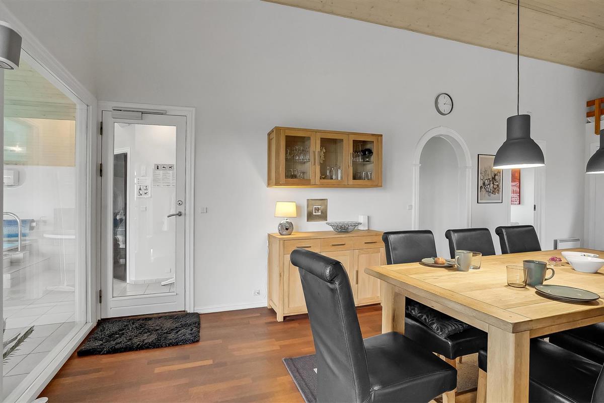 Mooi en functioneel ingericht vakantiehuis met zwembad, gelegen op een tuinperceel. Het huis heeft twee open terrassen met tuinmeubilair. Binnen zijn er lichte muren en plafonds samen met grote raampartijen met een mooie lichtinval. Het huis is smaakvol ingericht met spannende details en mooie meubels. Vanuit het huis heeft u uitzicht op de Limfjorden, die een kindvriendelijk strand biedt en zeer goede surfmogelijkheden voor zowel beginners als gevorderden. Het gebied is rustig en zeer geschikt voor gezinnen. Bij het huis moeten ook de zeer mooie terrasruimtes worden benadrukt, waar u overdag en 's avonds van het buitenleven kunt genieten. Een zeer mooi vakantiehuis met veel activiteitsmogelijkheden die het kader vormen van een goede vakantie.