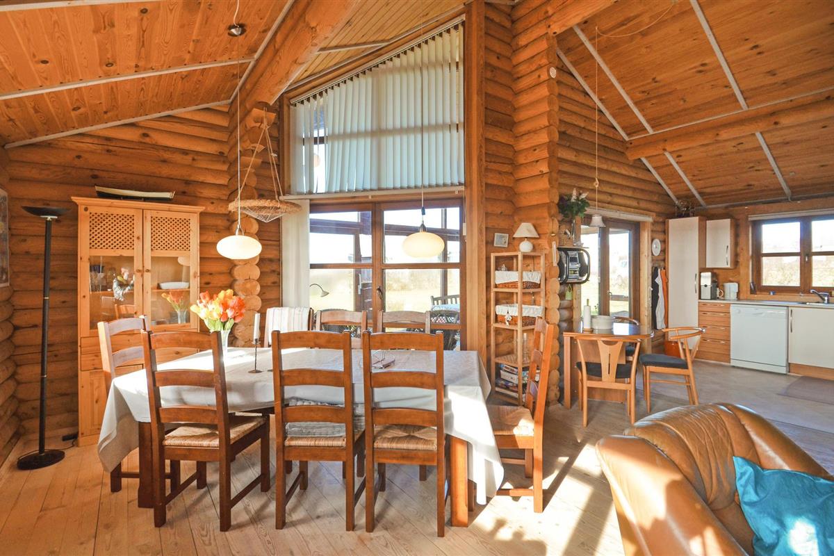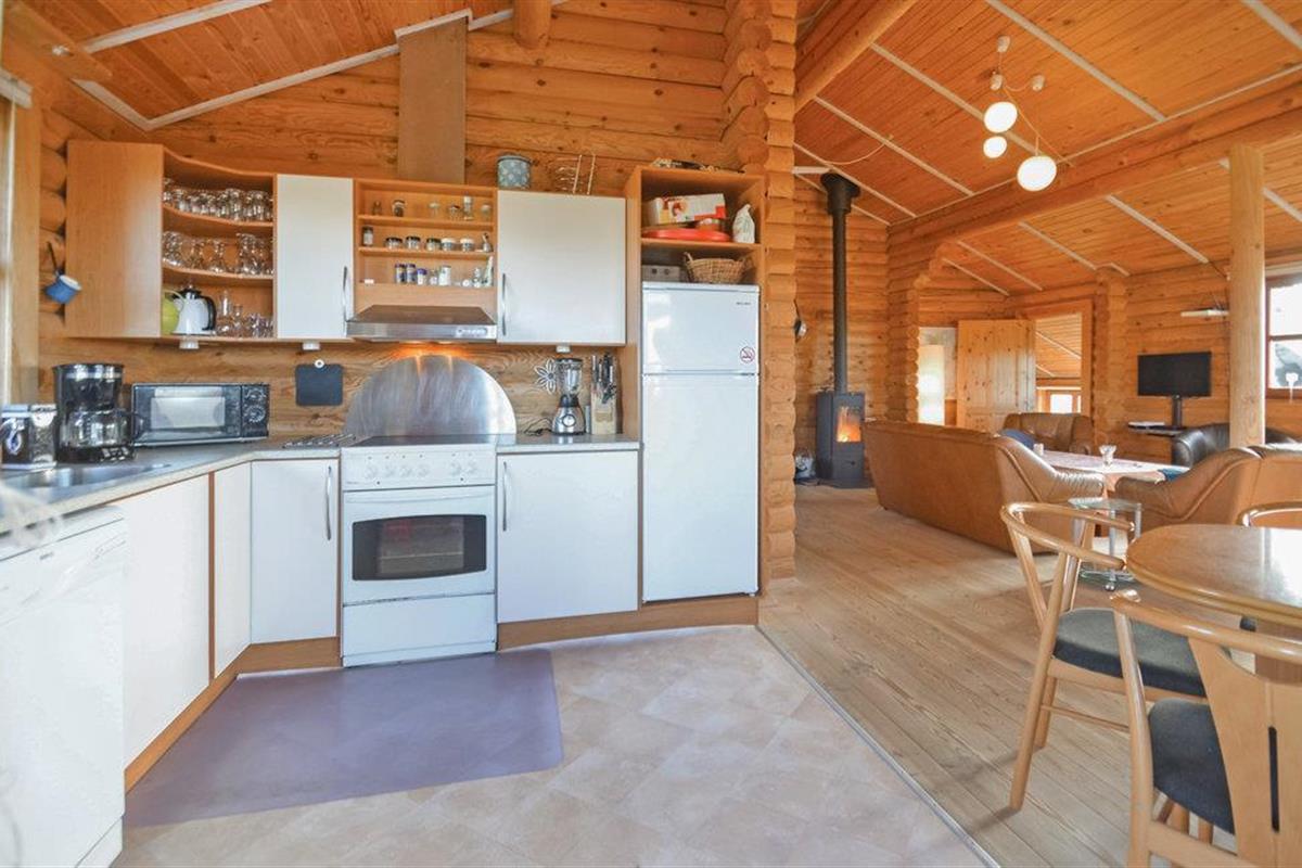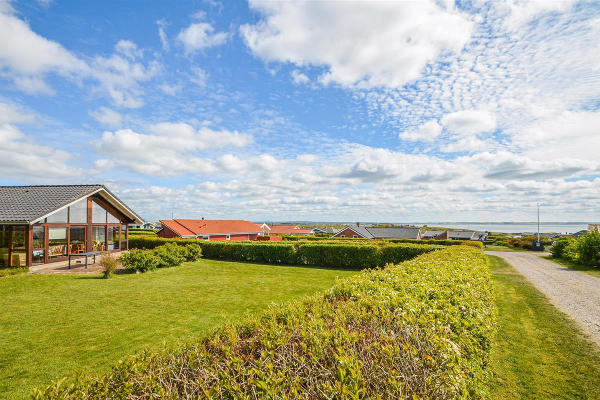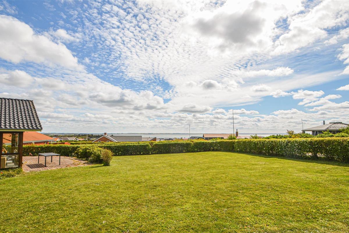 Dit vakantiehuis is gebouwd van hout en ligt op een mooi, groot perceel. Het ruime vakantiehuis is zeer uitnodigend en heeft een plafond dat helemaal open is tot in de nok. De grote raampartijen in de woonkamer laten overdag veel licht binnen en tegelijkertijd heeft u een prachtig uitzicht op de Limfjord. Zo kunt u de natuur in al haar schoonheid observeren, zelfs als het weer niet van zijn beste kant is en u het zich liever binnen comfortabel maakt. U kunt zich ook uitleven op het uitnodigende terras, waar u aan het eind van de dag een prachtig vrij uitzicht heeft op de zonsondergang.