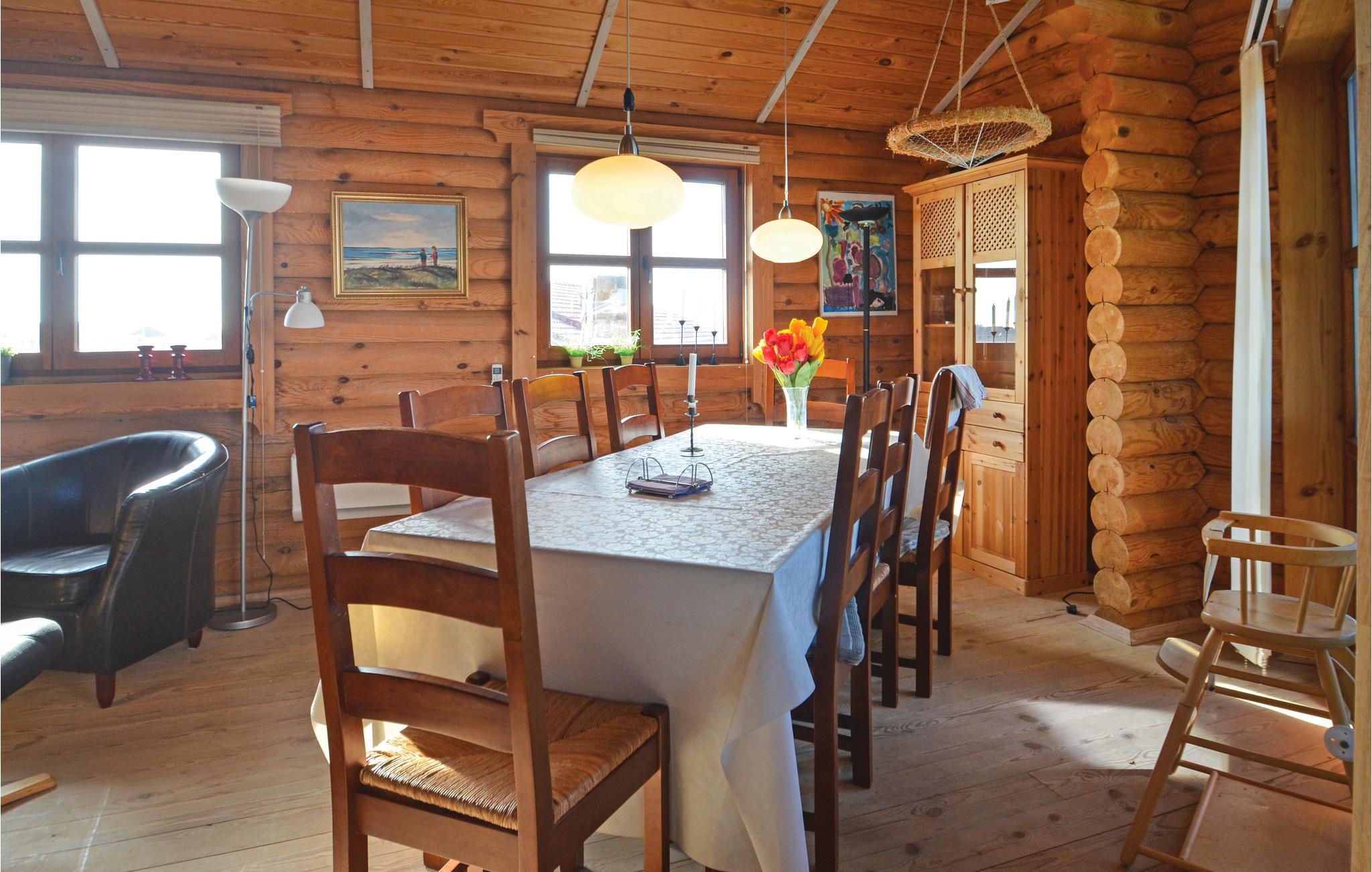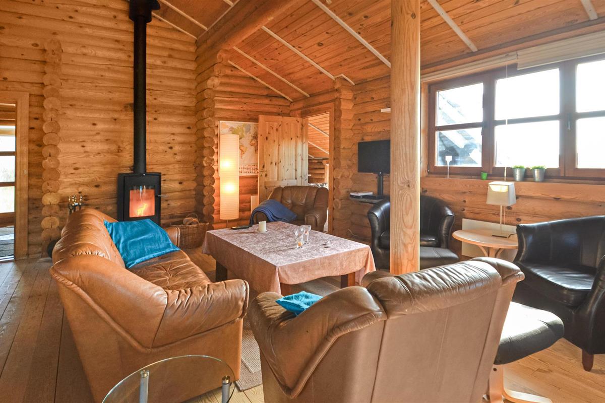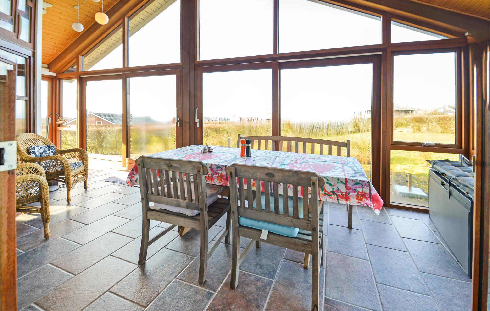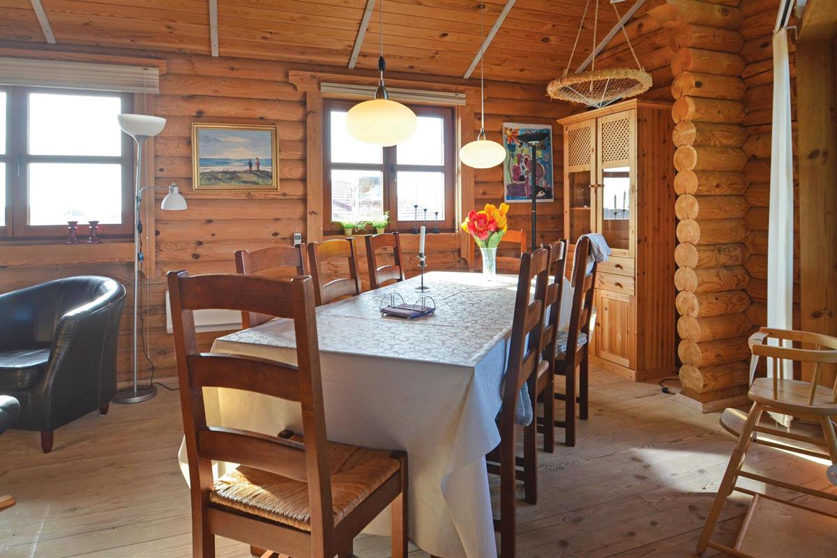 Dit vakantiehuis is gebouwd van hout en ligt op een mooi, groot perceel. Het ruime vakantiehuis is zeer uitnodigend en heeft een plafond dat helemaal open is tot in de nok. De grote raampartijen in de woonkamer laten overdag veel licht binnen en tegelijkertijd heeft u een prachtig uitzicht op de Limfjord. Zo kunt u de natuur in al haar schoonheid observeren, zelfs als het weer niet van zijn beste kant is en u het zich liever binnen comfortabel maakt. U kunt zich ook uitleven op het uitnodigende terras, waar u aan het eind van de dag een prachtig vrij uitzicht heeft op de zonsondergang.