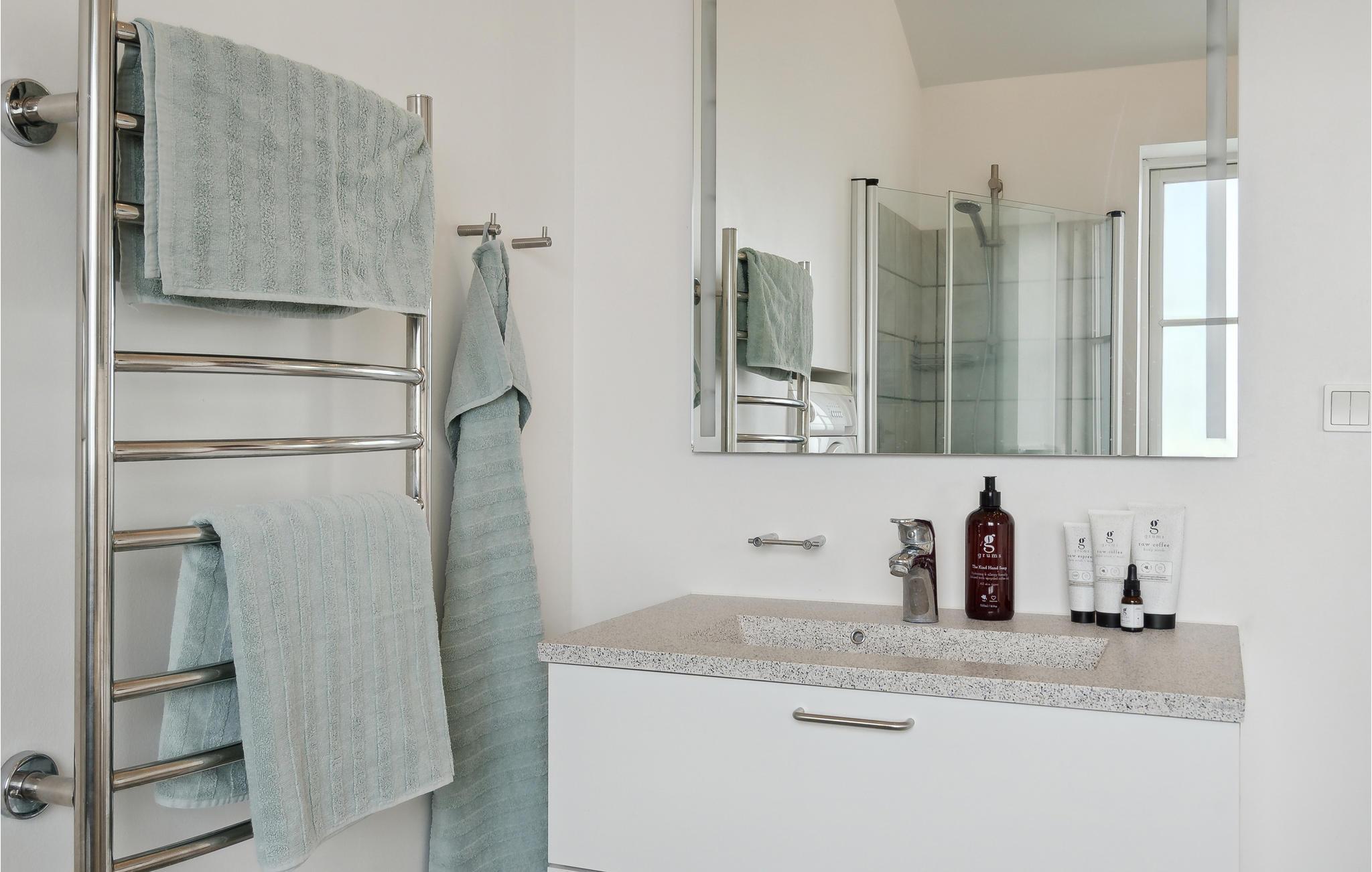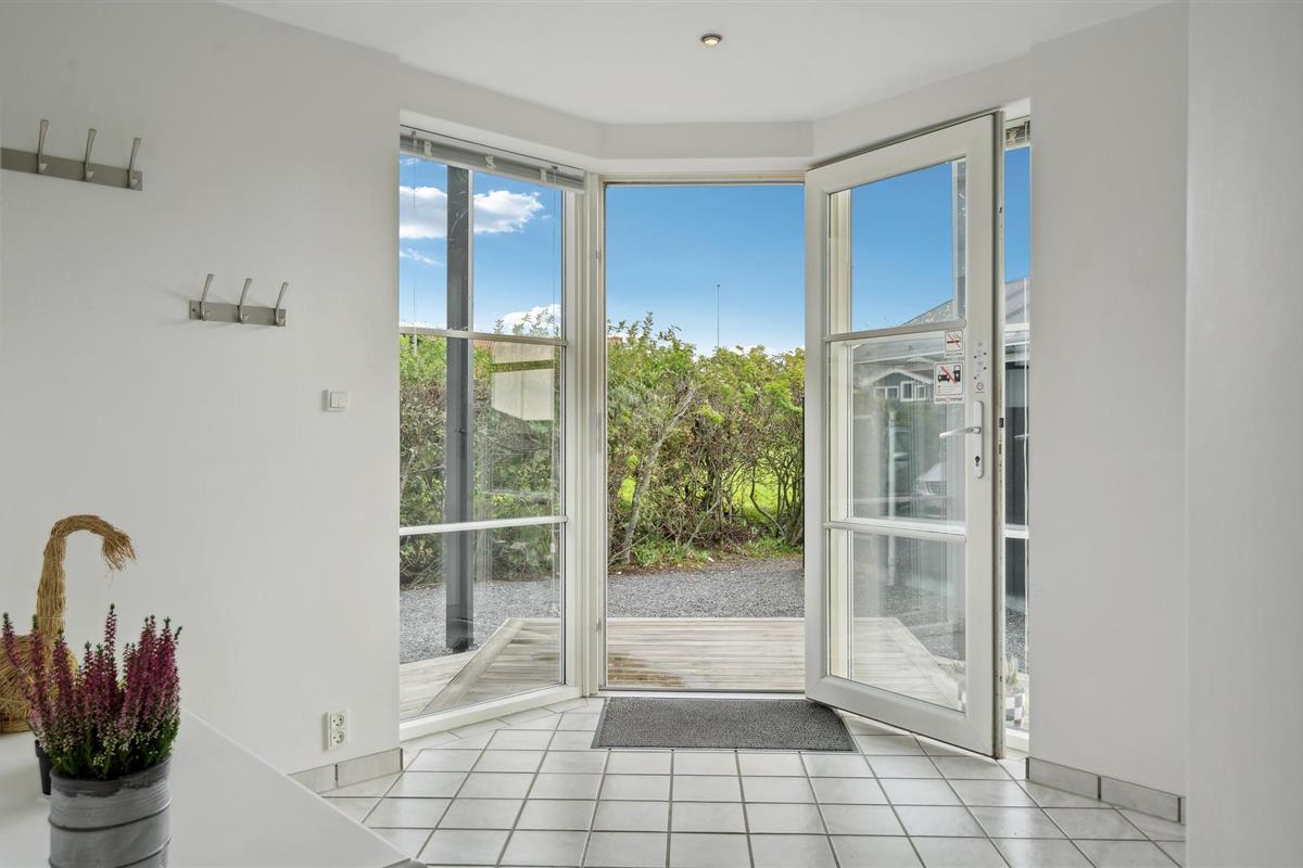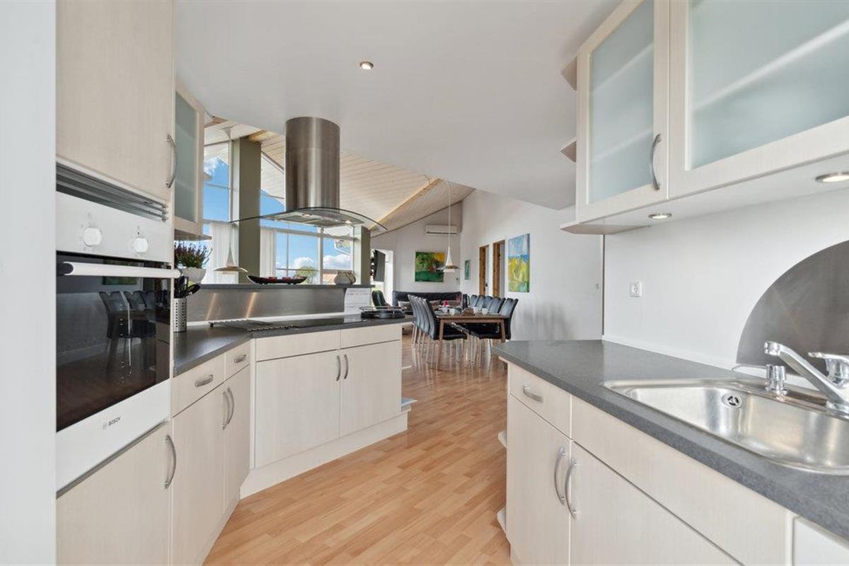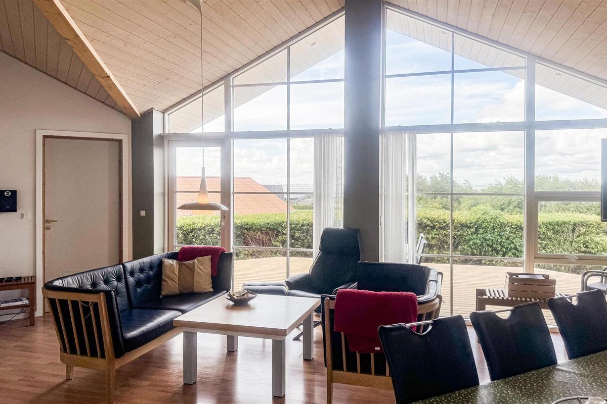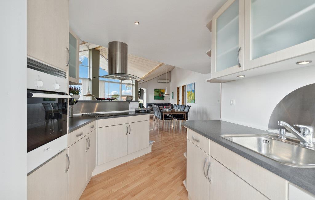 Geniet van het kleurenspel van de zonnestralen op het wateroppervlak en de lichtzee van Struer in de avond. Je kunt de fjord zien vanuit de meeste kamers, evenals vanaf het grootste deel van het 15 m² grote terras dat het huis volledig omringt. Het huis is ingericht met mooie materialen en aandacht voor detail. Er is een slaapzolder van 25 m² met een extra tv en dvd-speler, en er kan ook een spelcomputer worden aangesloten.