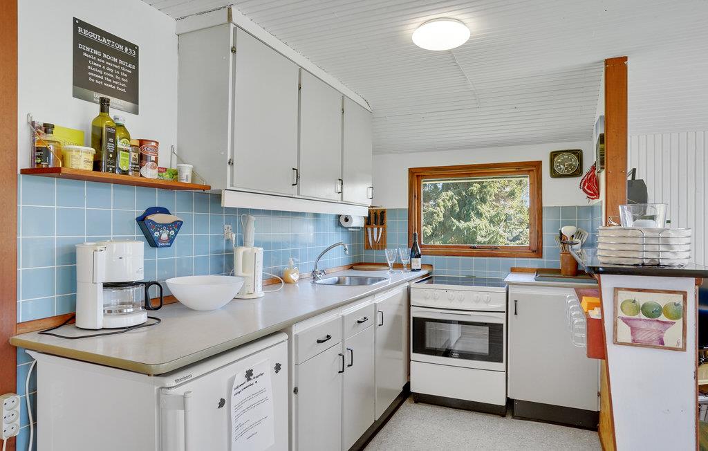 Grote ramen laten veel licht in het huis en bieden een prachtig uitzicht op het buitenleven. Ook de inrichting benadrukt de lichte en vriendelijke uitstraling van het vakantiehuis. De keuken staat in open verbinding met de woonkamer. Maak het u samen comfortabel op de banken na een dag vol avonturen en geniet van de gezellige warmte van de open haard.