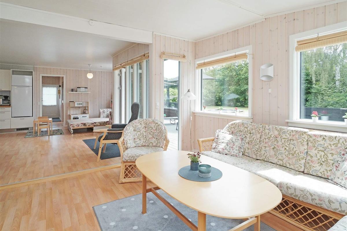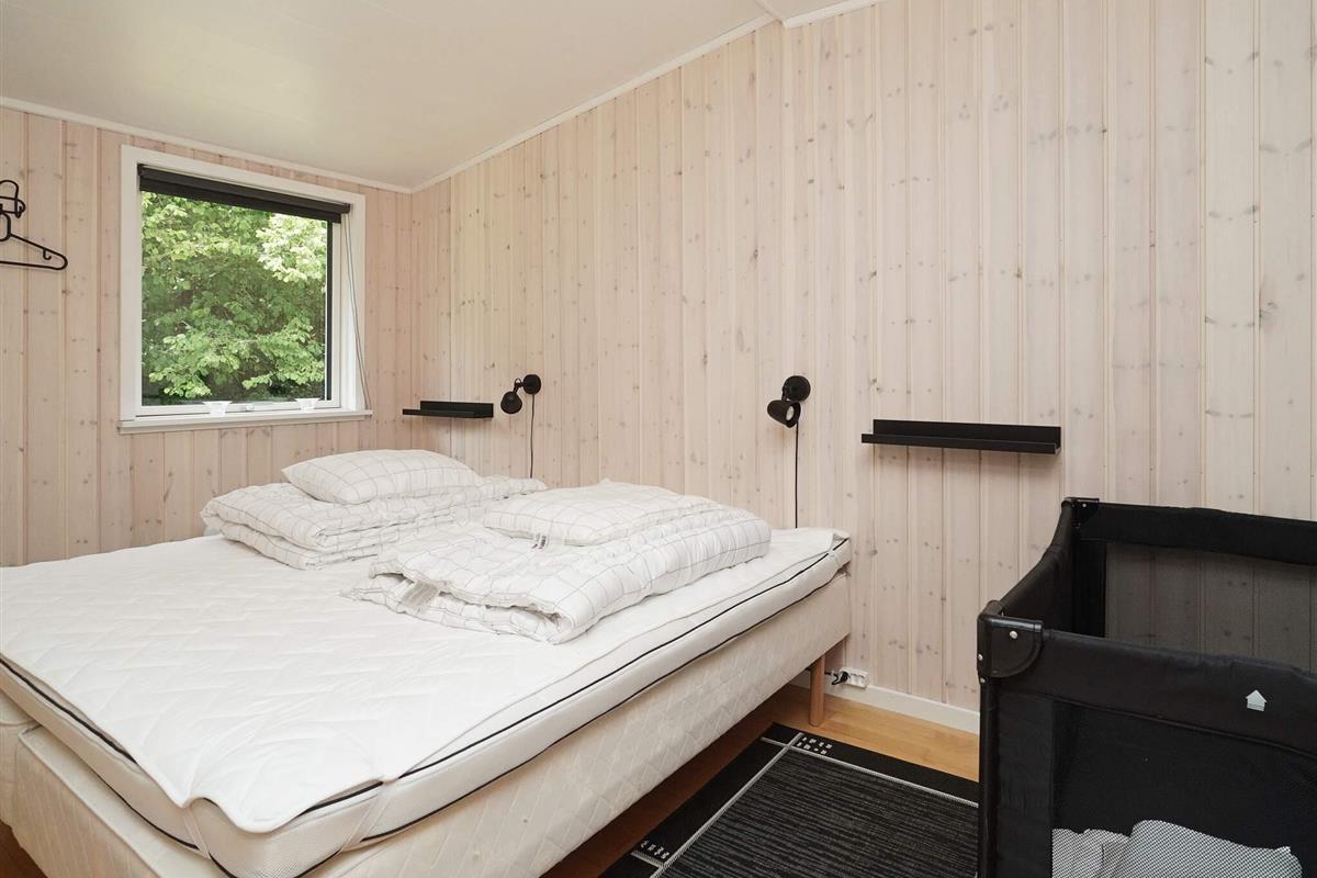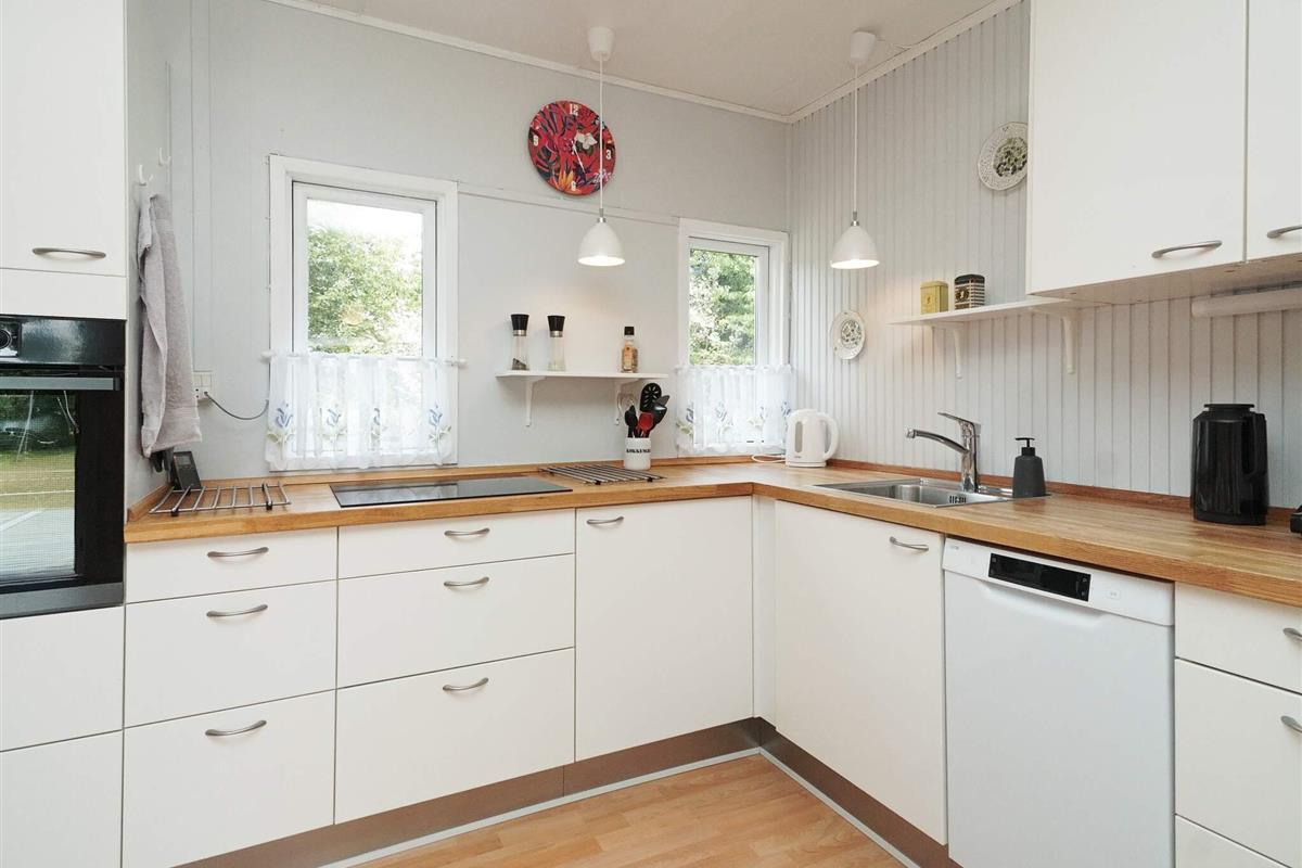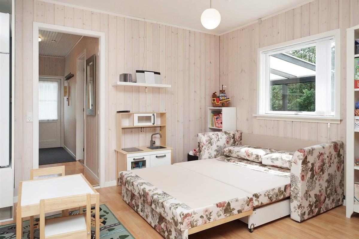 Dieses charmante Ferienhaus liegt auf der kleinen Insel Enø, unweit von Karrebæksminde und dem Karrebæk-Fjord. Die offene Küche und der Wohnbereich bilden einen hellen, einladenden Raum, der sich ideal zum gemeinsamen Kochen, Essen und Entspannen eignet. Vom Wohnzimmer aus gelangen Sie direkt auf die überdachte Terrasse, die sich ideal zum Frühstücken oder für ruhige Momente im Freien eignet. Das Haus verfügt über zwei Schlafzimmer: eines mit einem Doppelbett und das andere mit zwei Etagenbetten im Loft-Stil. Das Badezimmer ist funktional und verfügt über eine Dusche und ein WC.