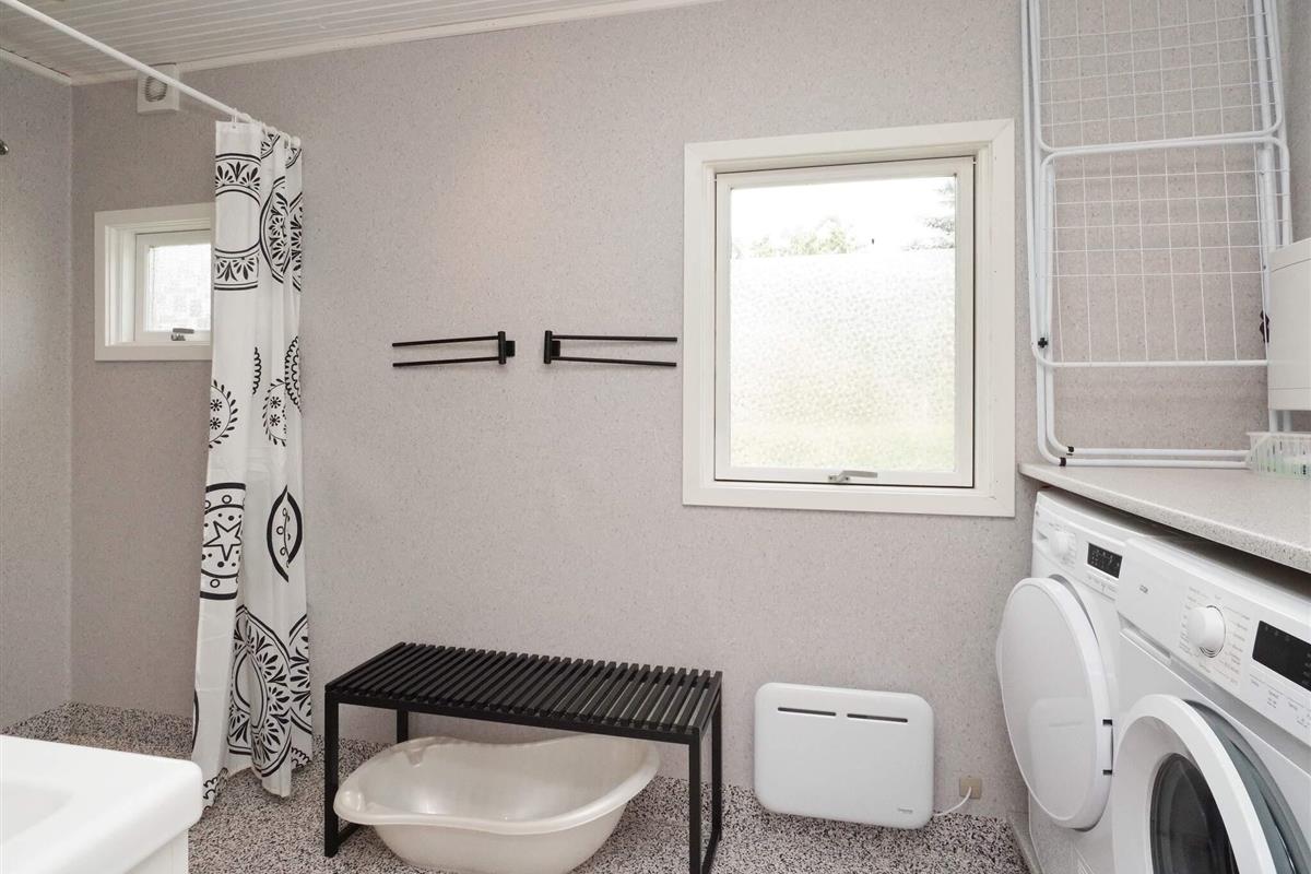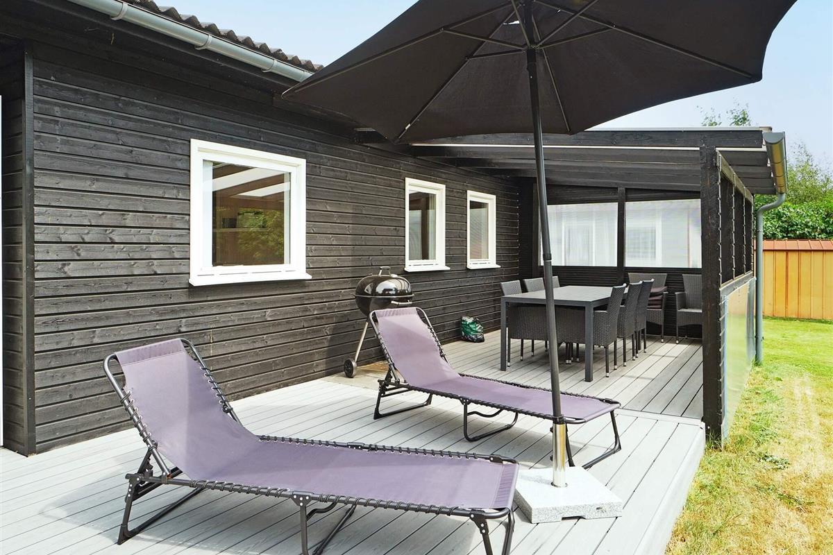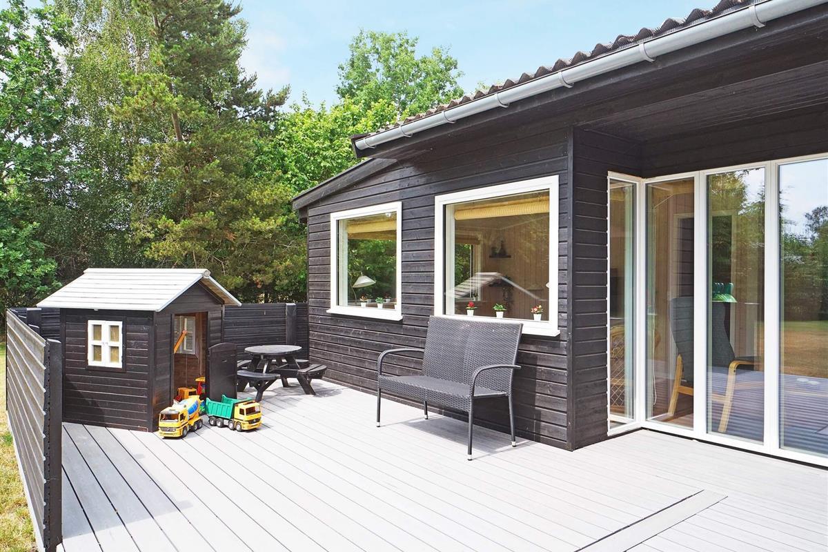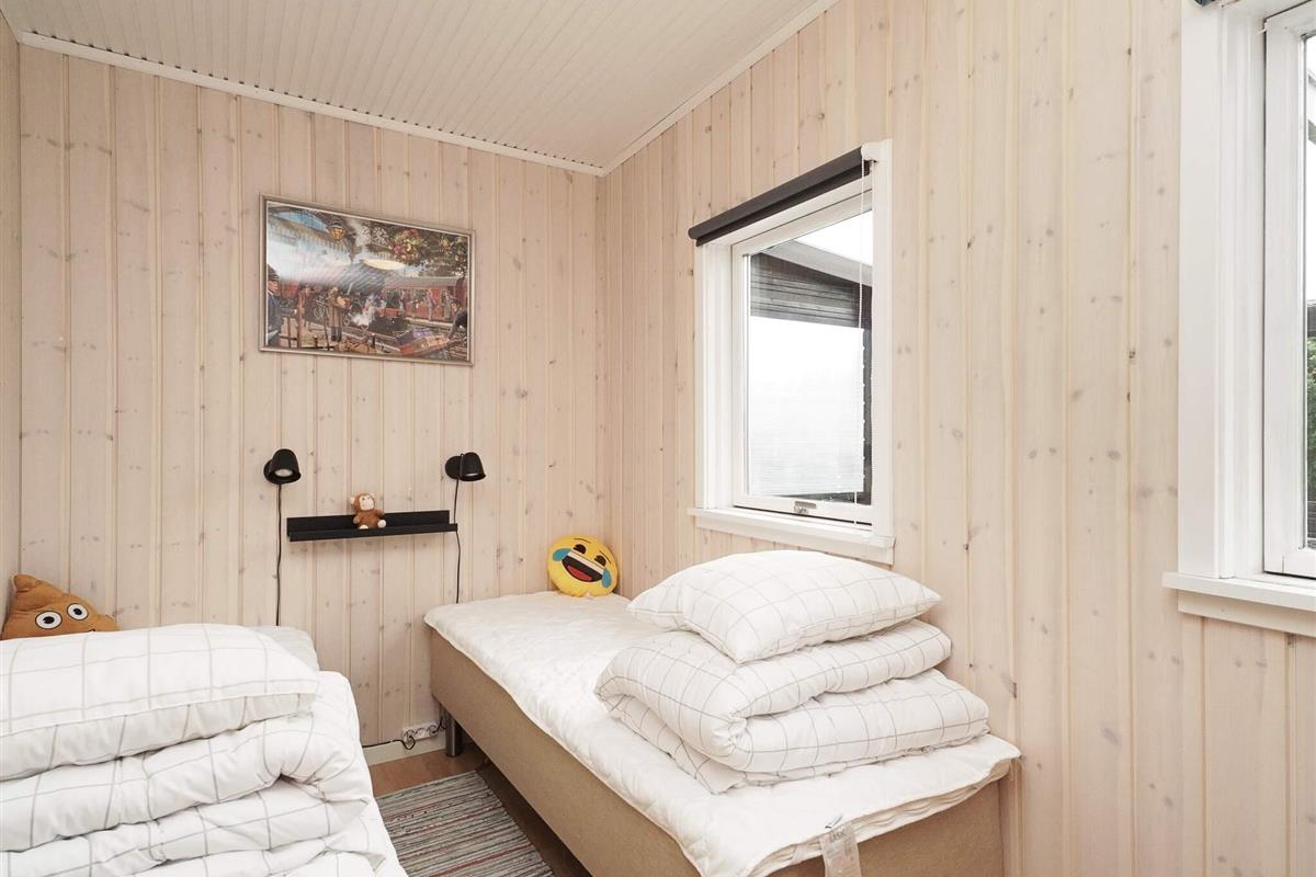 Dieses charmante Ferienhaus liegt auf der kleinen Insel Enø, unweit von Karrebæksminde und dem Karrebæk-Fjord. Die offene Küche und der Wohnbereich bilden einen hellen, einladenden Raum, der sich ideal zum gemeinsamen Kochen, Essen und Entspannen eignet. Vom Wohnzimmer aus gelangen Sie direkt auf die überdachte Terrasse, die sich ideal zum Frühstücken oder für ruhige Momente im Freien eignet. Das Haus verfügt über zwei Schlafzimmer: eines mit einem Doppelbett und das andere mit zwei Etagenbetten im Loft-Stil. Das Badezimmer ist funktional und verfügt über eine Dusche und ein WC.