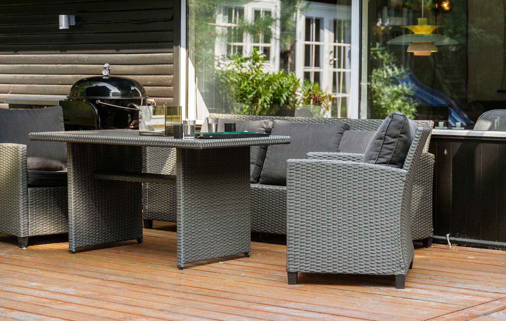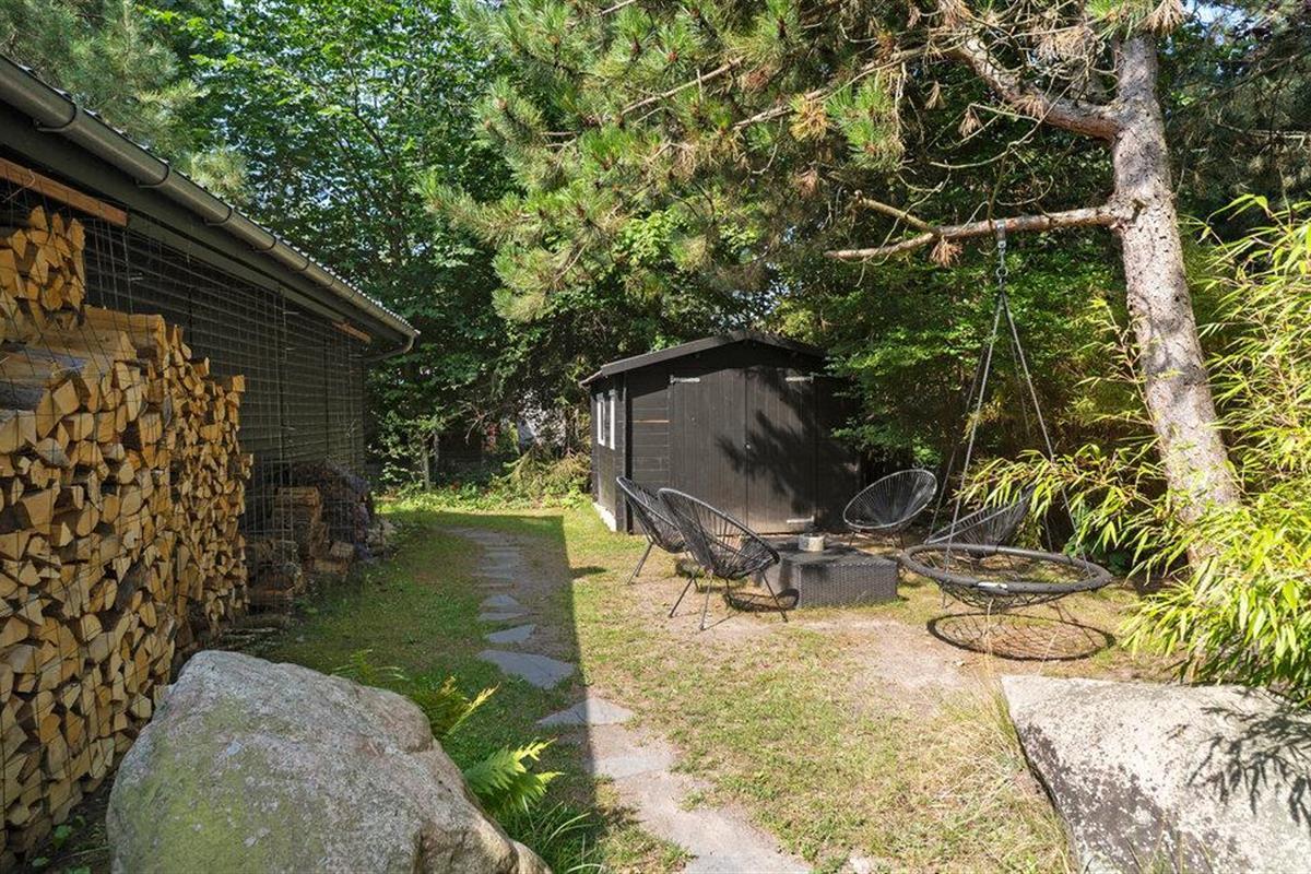 Breng de dag door op het ruime houten terras. Ontspan in een ligstoel of zit in de schaduw onder de parasol met een boek. Sluit de avond af in het Finse houten bad terwijl je uitkijkt over de liefdevol beplante tuin en het aparte tuinhuisje. Er is een speeltoestel met glijbaan voor de kinderen, een vuurplaats voor het hele gezin in het bosrijke gebied achter het huis en een schuilhut voor gezellige uurtjes buiten.