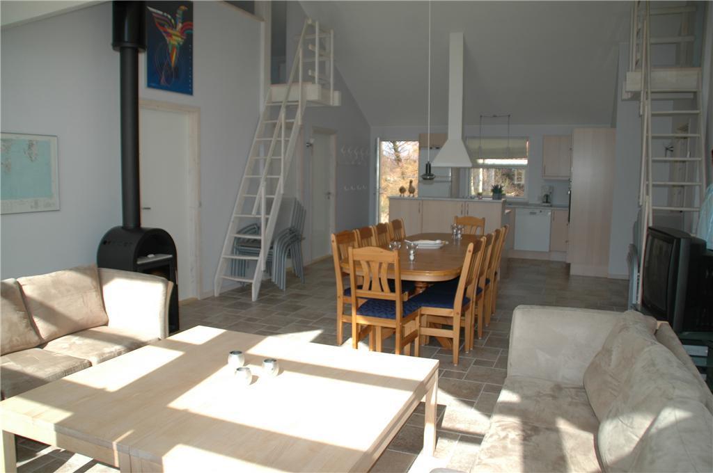 Bright and friendly decor with tiled floors and underfloor heating throughout. Cozy living room with wood-burning stove, TV with satellite and Danish (including TV2) and German channels, stereo with CD player, and radio. Lovely kitchen with ceramic hobs, built-in oven, fridge with freezer, dishwasher, and microwave. Large, beautiful tiled bathroom with spa bath, shower, washing machine, and dryer, as well as entrance to the sauna, and a nice, smaller tiled bathroom with shower. The house's 10 sleeping places are distributed among 3 good bedrooms, all with double beds, and 2 lofts, each with two mattresses. For the little holidaymakers, there is a cot and high chair. Internet.