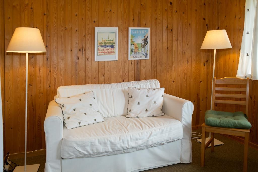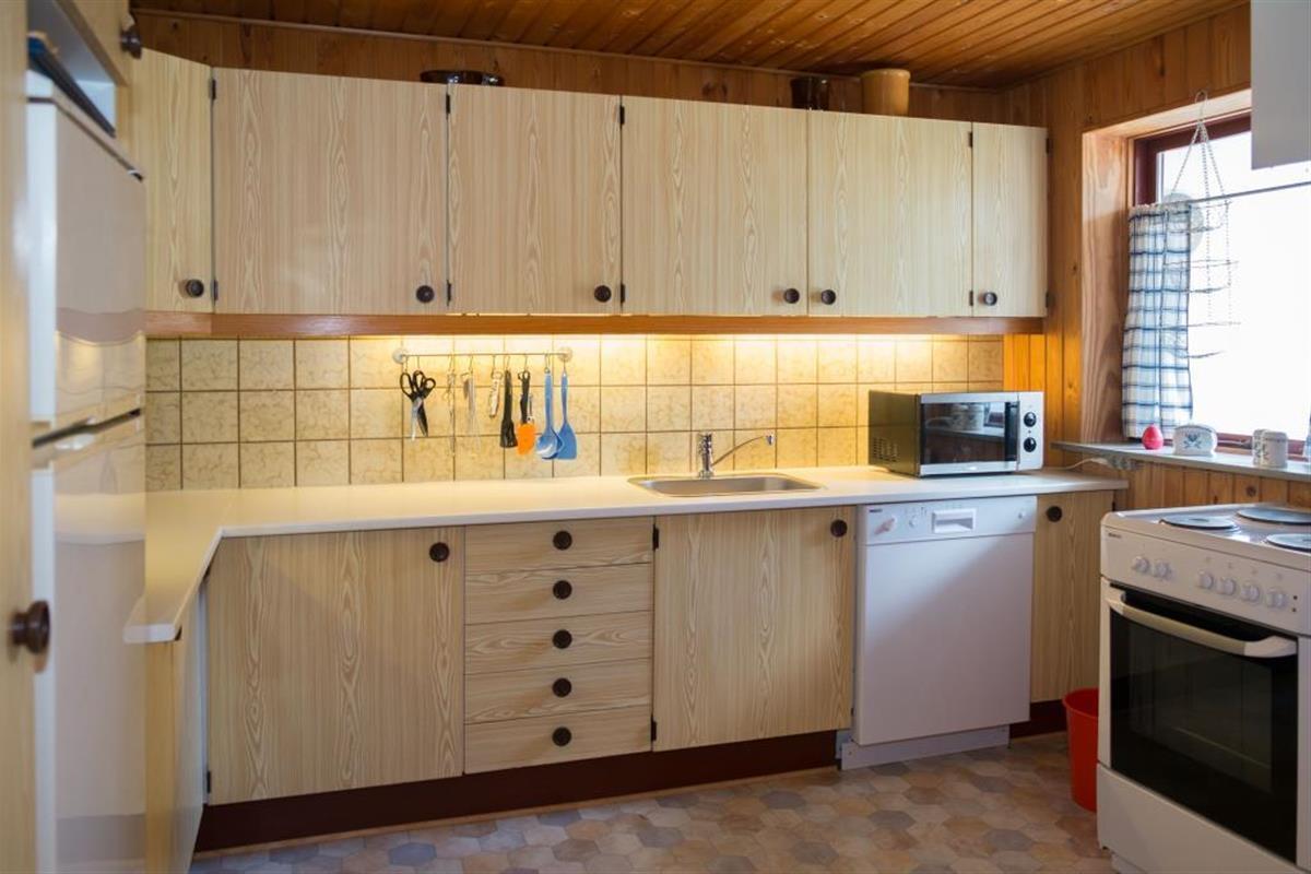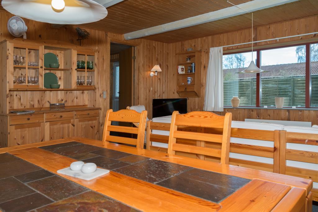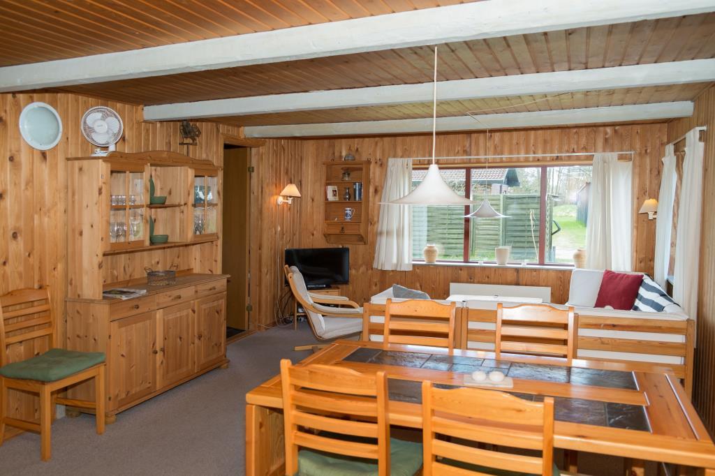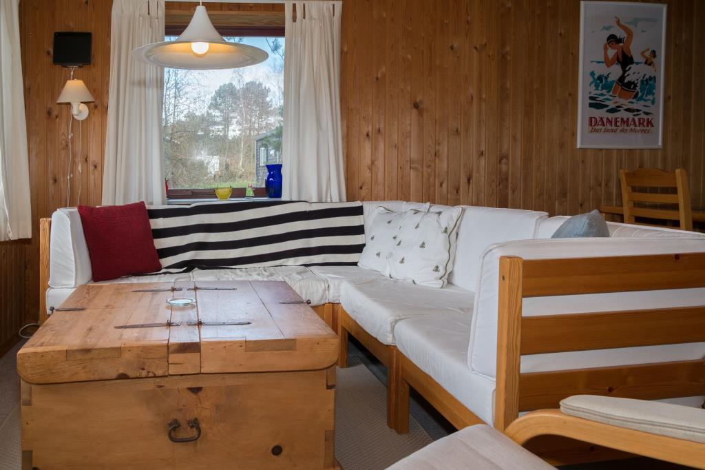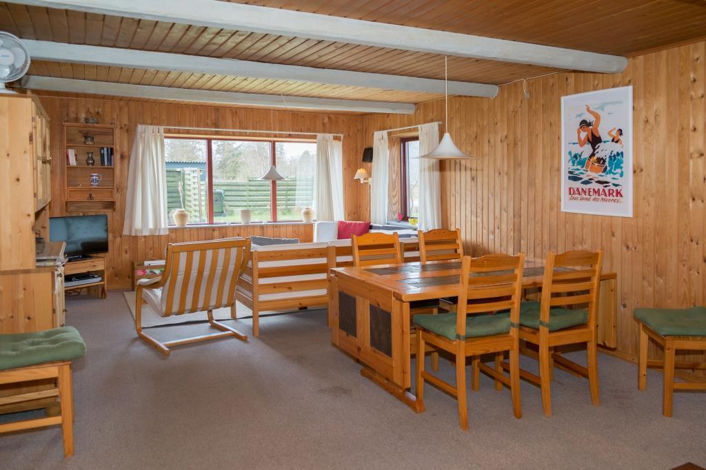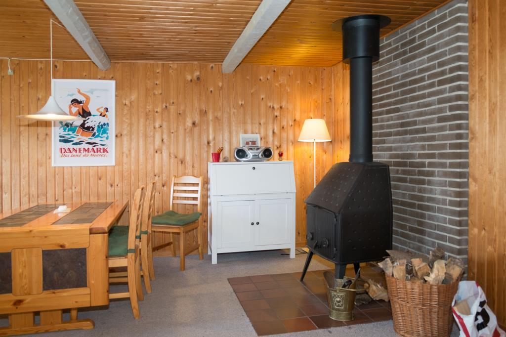 Living room with a wood stove, TV with Danish (including TV2) and German channels, and a stereo system with a CD player. Kitchen with a good workspace and an electric stove with an oven, a refrigerator with a small freezer, microwave, and dishwasher. Bathroom with a shower. The house's 6 sleeping places are distributed in 2 bedrooms: 1 with a double bed and 1 with 2 single beds, plus a double sofa bed in the adjoining living room. Annex with a freezer and washing machine. There is internet access.