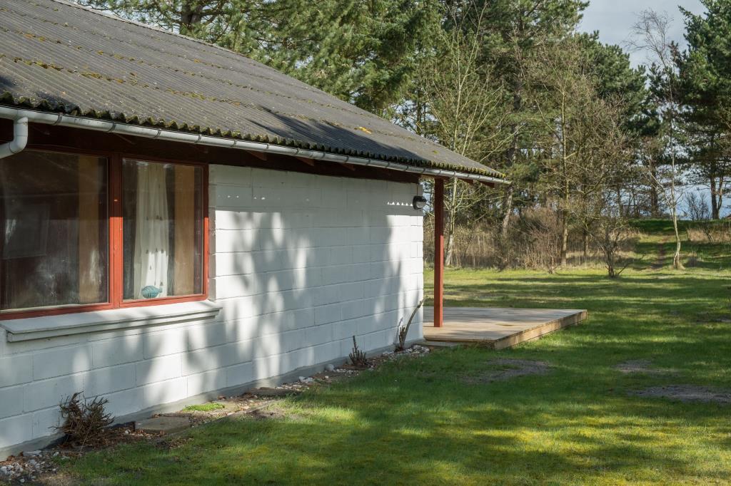 In the first row to the Kattegat, this older, non-modernized cottage is situated on a gently undulating natural plot with trees and bushes, along with a partially covered wooden terrace with garden furniture and a grill. From the upper part of the plot, there is a view over the Kattegat to the island Hjelm. A house primarily chosen for its fantastic location.