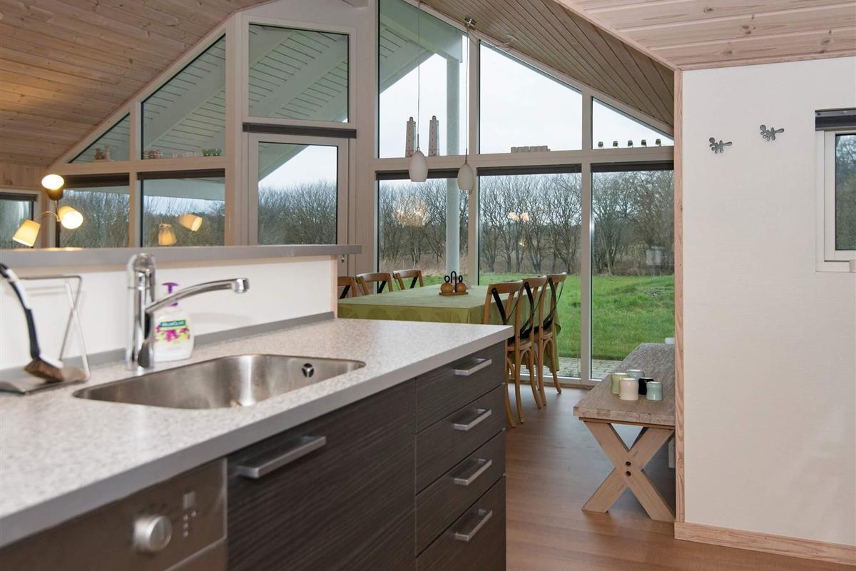 Modernes Ferienhaus in landschaftlich reizvoller Umgebung, nicht weit vom Strandufer bei Elsegårde Strand. Innen erwartet Sie ein lichtes, ansprechendes Wohnambiete mit vielen Fenstern und schönem Ausblick in die Natur ringsum.