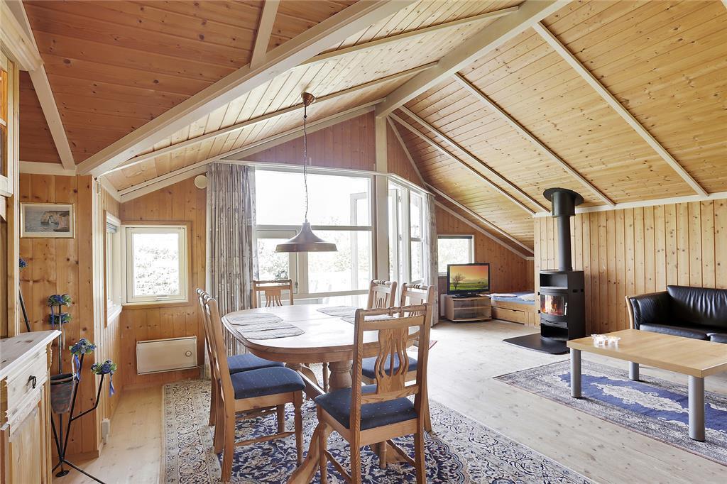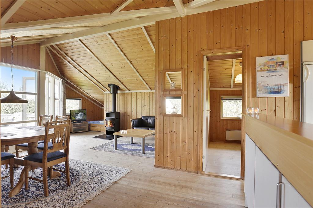 nah am Meer. Wohnzimmer mit Essecke und Kaminofen. Alkoven mit 1 Schlafplatz.