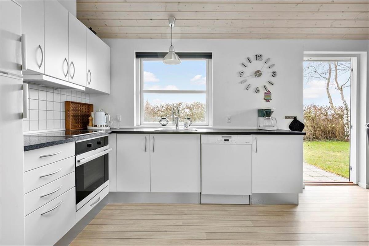 Genieße das Leben im Freien: Das Ferienhaus befindet sich auf einem sonnigen Grundstück von 540 m², das direkt an offene Flächen grenzt. Nur wenige Gehminuten entfernt liegt ein herrlicher, kinderfreundlicher Badestrand, an dem die ganze Familie das Wasser und den Strand genießen kann. Hier können Sie sich erfrischen, entspannen und die Urlaubsstimmung in vollen Zügen genießen.