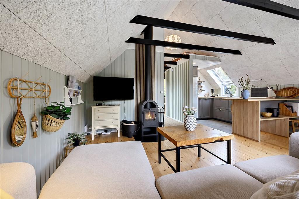 Dit charmante vakantiehuis in Enø, Zuid-West-Seeland, biedt een comfortabele plek voor vier volwassenen. Het huis heeft een warm interieur met een houtkachel en een open keuken, wat zorgt voor een gezellige sfeer.