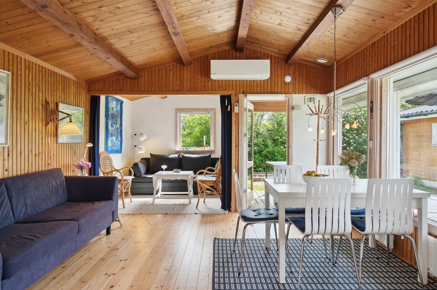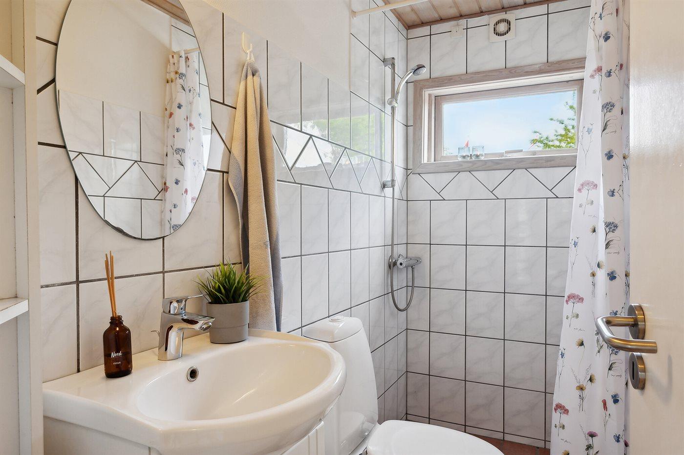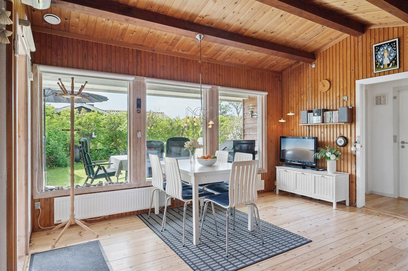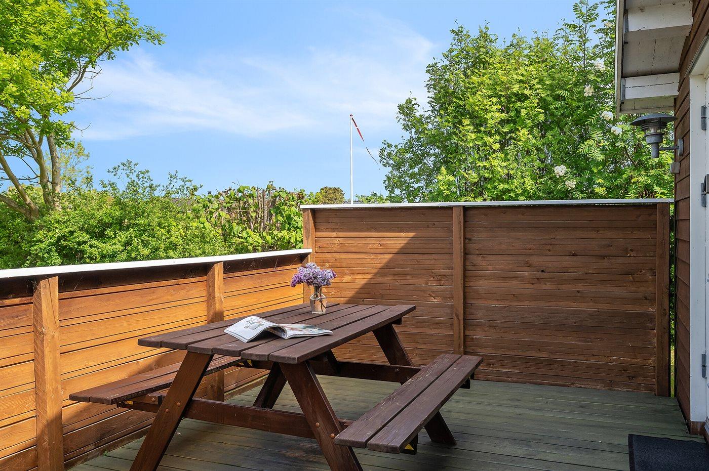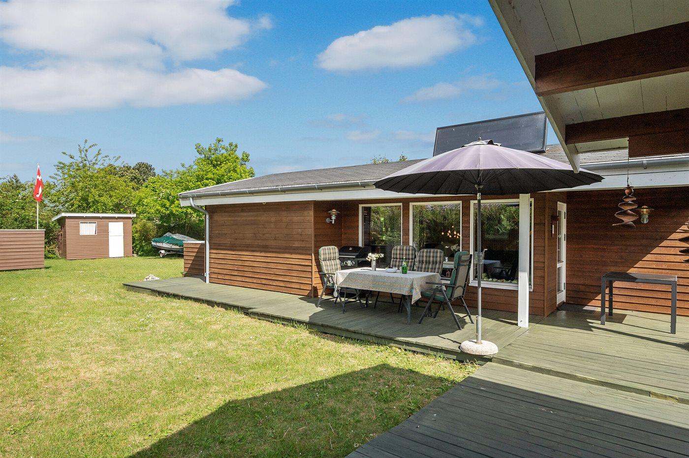 De vakantiewoning is gelegen op een 694 m² groot natuural grond. Afstand tot de zee 250 m. Afstand tot de fjord 250 m. Er is een zwemsteiger in de buurt. Dichtstbijzijnde winkel 3000 m. Er is een golfbaan op een afstand van 7500 m. Bij de vakantiewoning hoort terras. Daarnaast is er een overdekt terras. Gereedschapsruimte. Schommel. Zandbak. Glijbaan. Voetbaldoel. Afstand tot speelplaats 2000 m. Barbecue. Carport ter beschikking. Parkeerplaats bij het huis.
