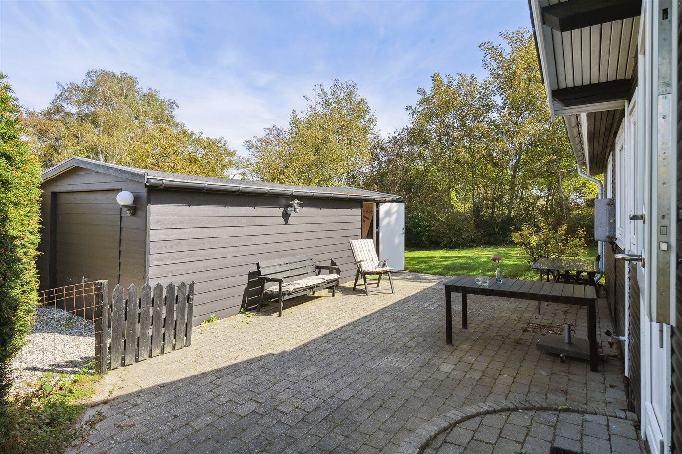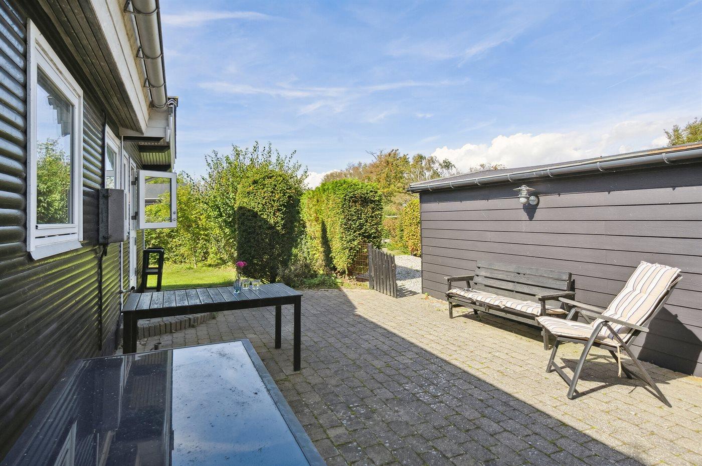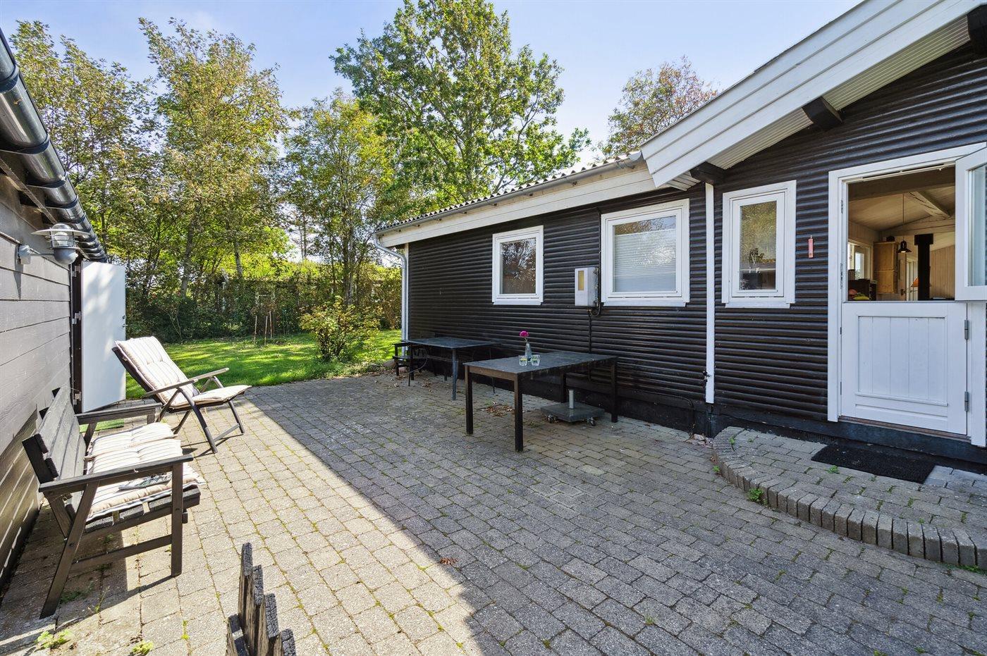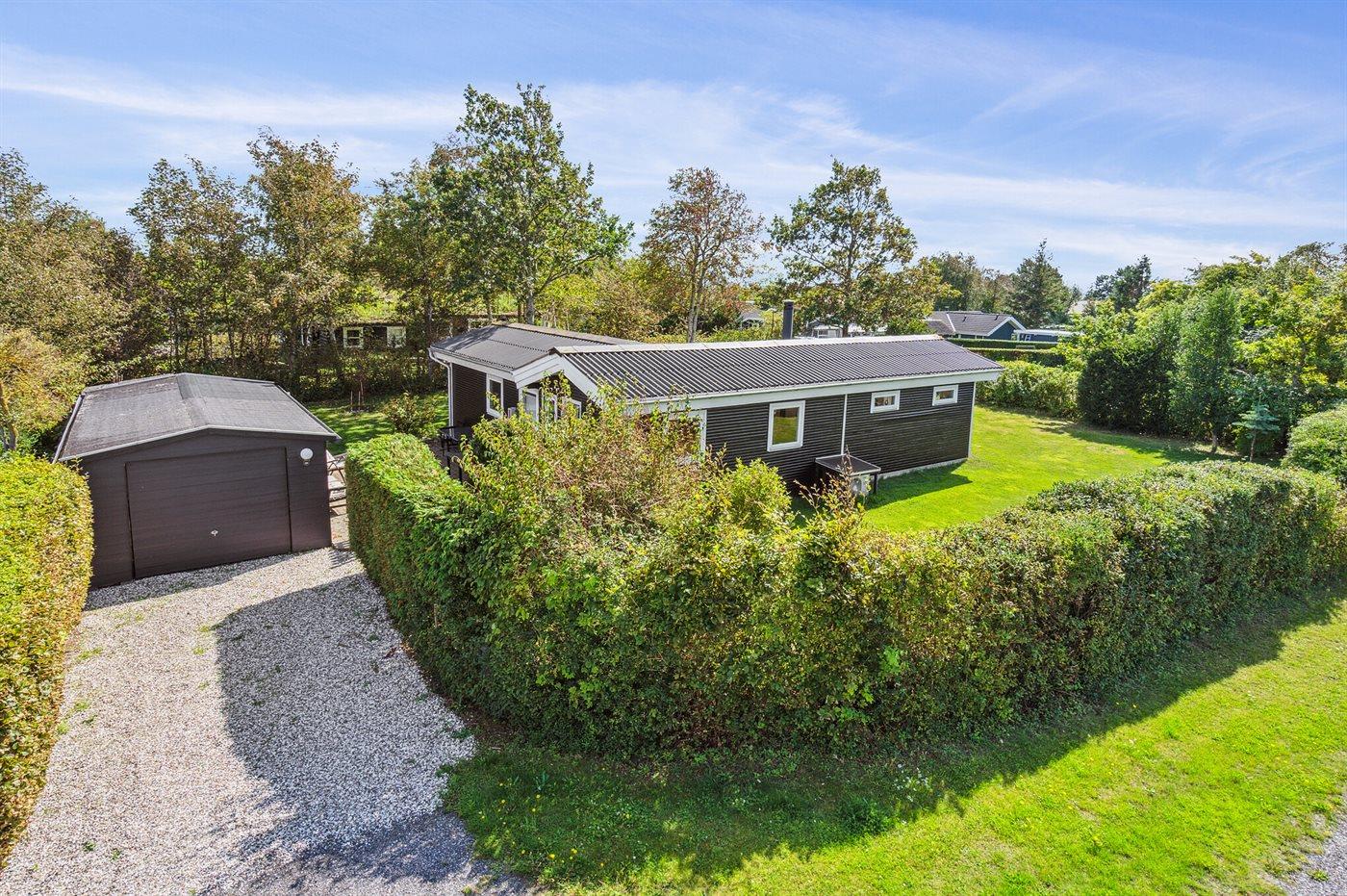 De vakantiewoning is gelegen op een 774 m² groot aangelegde tuin. De grond is omheind. Afstand tot de zee 200 m. Afstand tot de fjord 1000 m. Er is een zwemsteiger in de buurt. Dichtstbijzijnde winkel 1800 m. Er is een golfbaan op een afstand van 5500 m. Bij de vakantiewoning hoort terras. Barbecue. Parkeerplaats bij het huis.