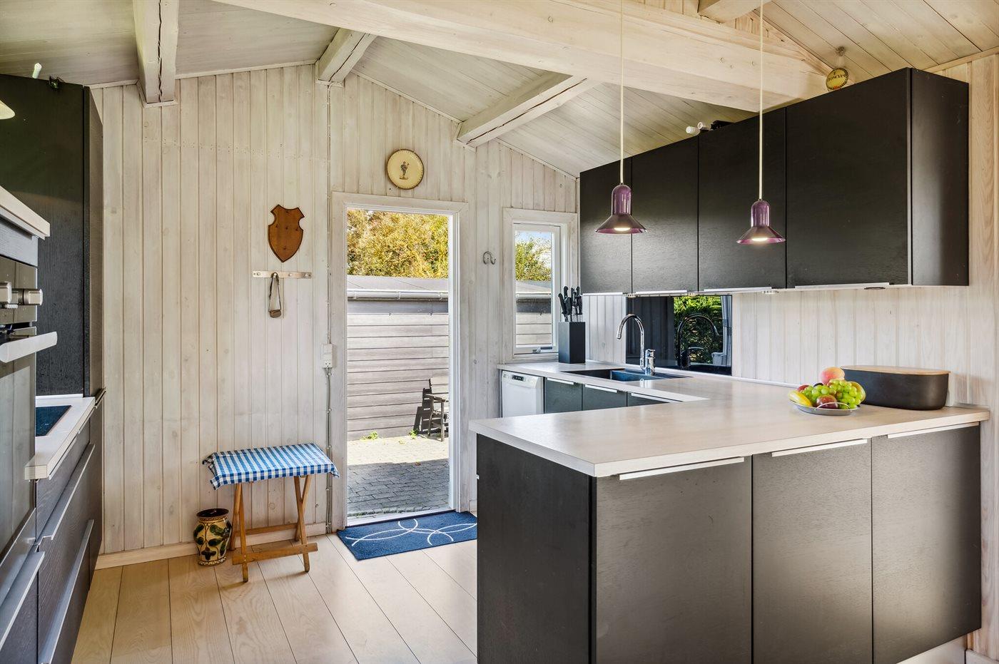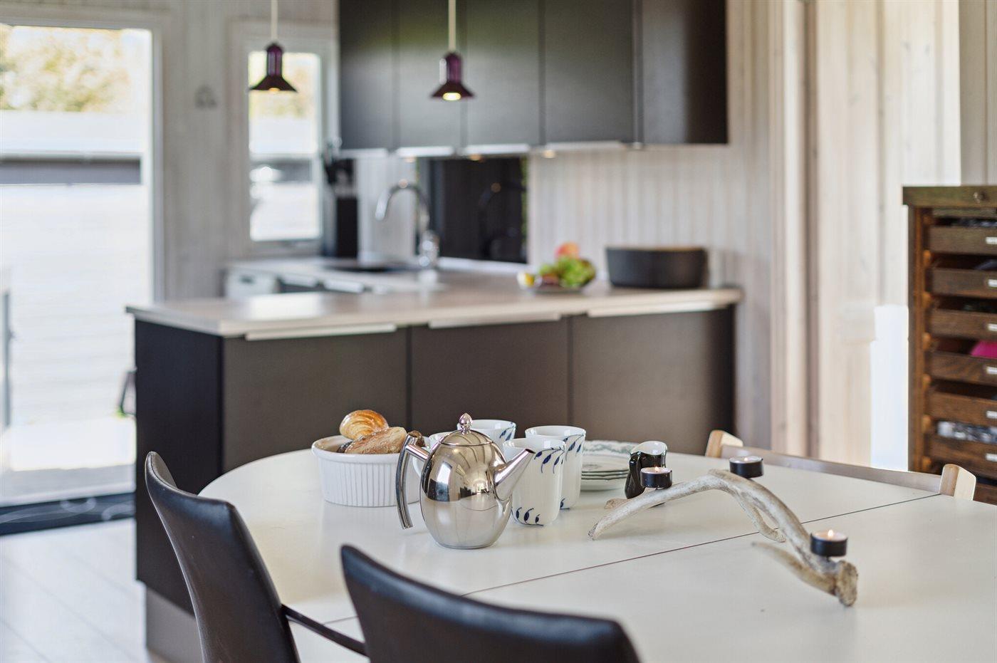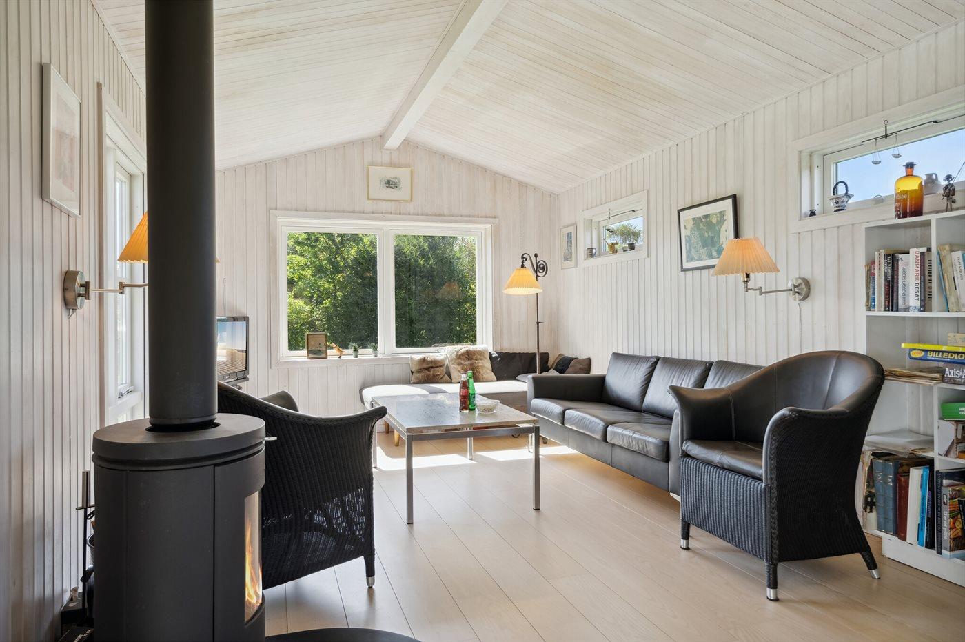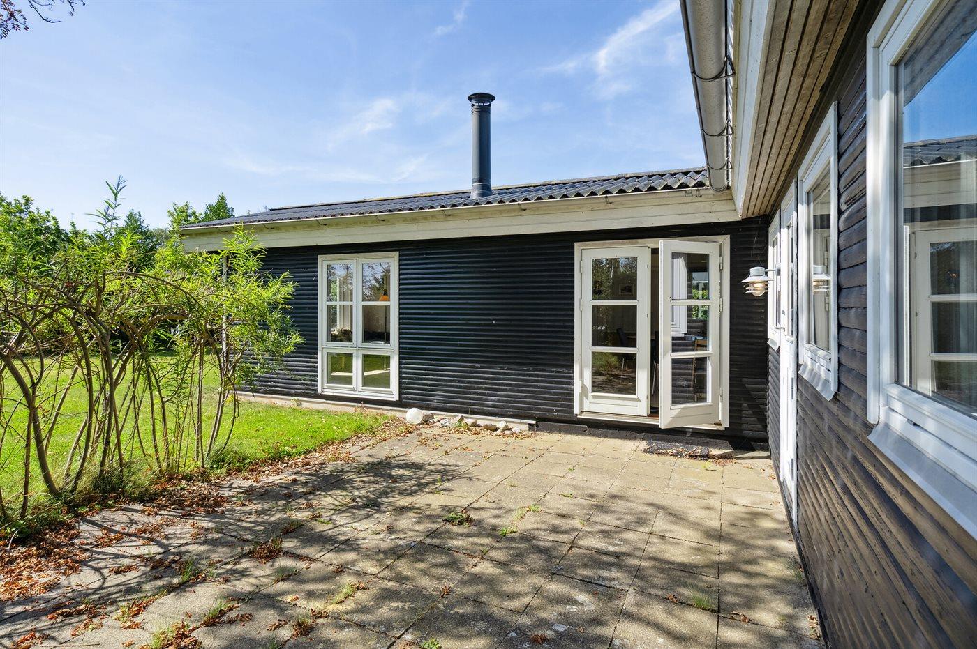 De vakantiewoning is gelegen op een 774 m² groot aangelegde tuin. De grond is omheind. Afstand tot de zee 200 m. Afstand tot de fjord 1000 m. Er is een zwemsteiger in de buurt. Dichtstbijzijnde winkel 1800 m. Er is een golfbaan op een afstand van 5500 m. Bij de vakantiewoning hoort terras. Barbecue. Parkeerplaats bij het huis.
