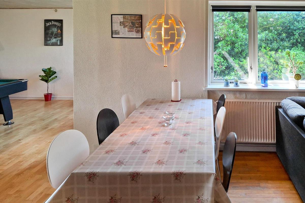 Dit vakantiehuis in de Limfjord biedt veel ruimte voor het hele gezin en alles wat je nodig hebt voor een geslaagde vakantie in Denemarken. Je vakantiehuis is de perfecte uitvalsbasis voor het verkennen van de adembenemende natuur en de vele attracties in de omgeving. De gezellige woonkamer met comfortabele bank creëert een uitnodigende sfeer. Geniet van gezamenlijke maaltijden aan de eettafel, ontspan op de bank en breng rustige avonden door met een goed boek of leuke bordspellen. De pooltafel en tafelvoetbal zorgen voor nog meer entertainment en plezier.