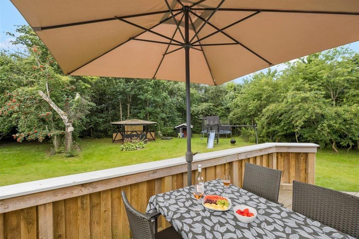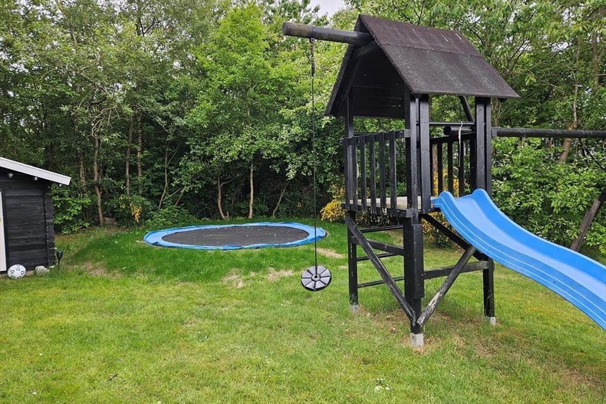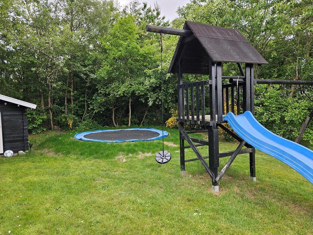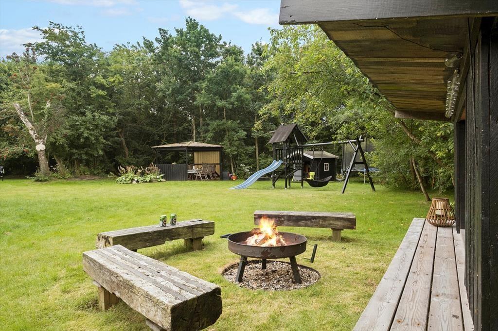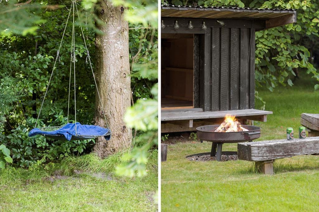 Das 1682 m² große Grundstück ist vollständig eingezäunt und von dichter Bepflanzung umgeben, sodass Kinder und Hunde sicher und ungestört spielen können. Die jüngsten Urlauber werden sich über Schaukeln, einen Sandkasten, ein Trampolin und ein Spielhaus freuen. Die große Rasenfläche lädt zu Familienspielen wie Wikingerschach und anderen Aktivitäten ein. Zusammen könnt ihr auf der großzügigen Terrasse des Ferienhauses das schöne Wetter genießen und den Tag in einem entspannten Tempo verbringen. Die Feuerstelle ist ein Hit für alle, die Stockbrot und geröstete Marshmallows lieben. Die Abenteurer unter euch können sogar draußen im Shelter unter freiem Himmel übernachten.
