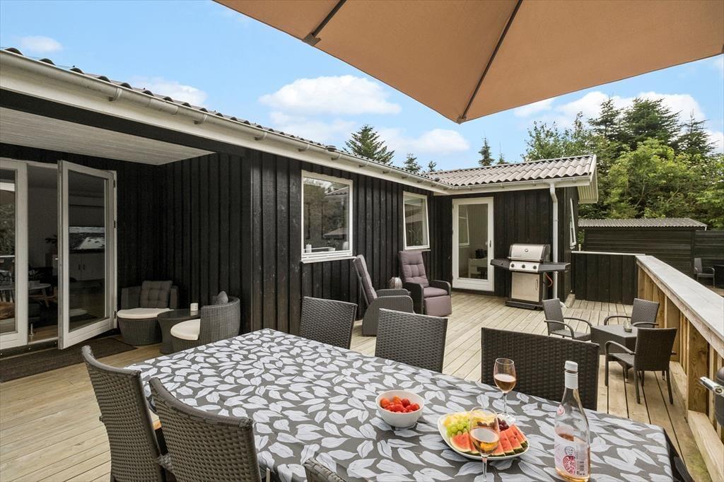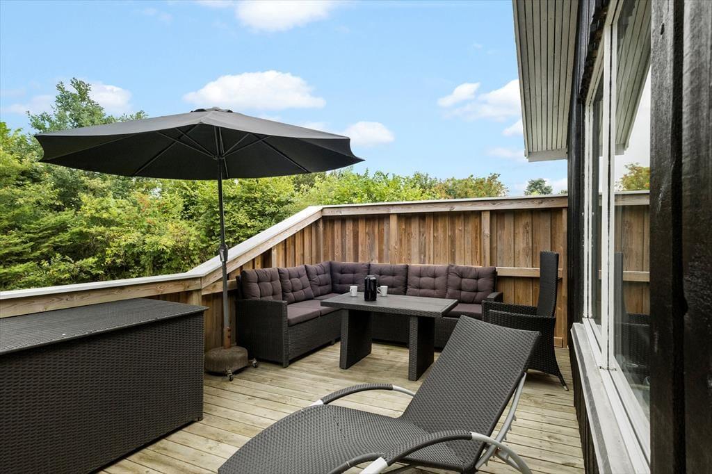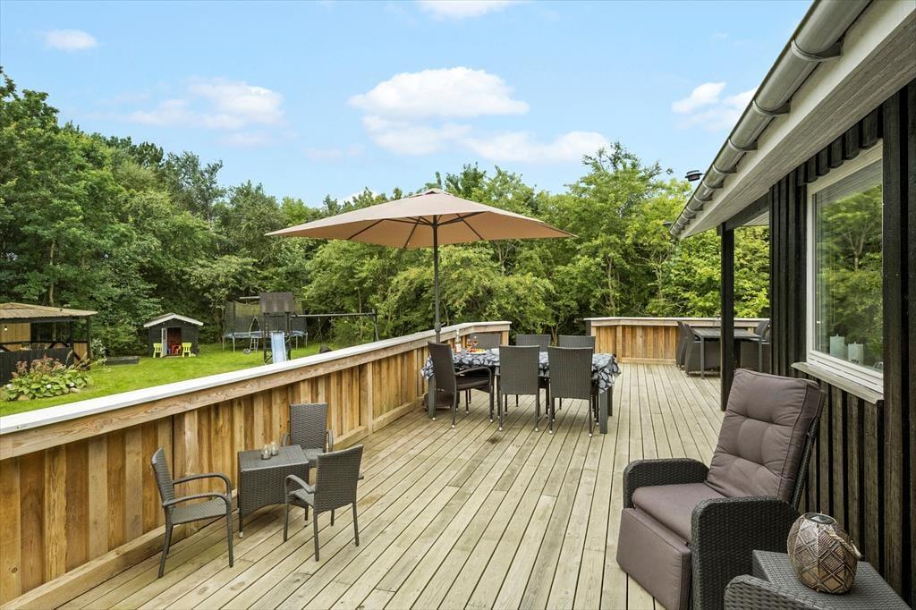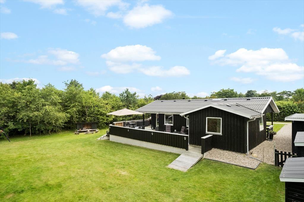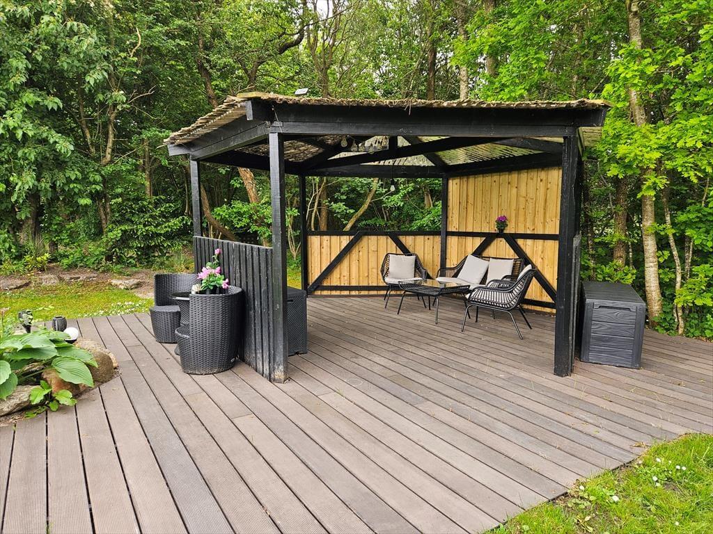 Das 1682 m² große Grundstück ist vollständig eingezäunt und von dichter Bepflanzung umgeben, sodass Kinder und Hunde sicher und ungestört spielen können. Die jüngsten Urlauber werden sich über Schaukeln, einen Sandkasten, ein Trampolin und ein Spielhaus freuen. Die große Rasenfläche lädt zu Familienspielen wie Wikingerschach und anderen Aktivitäten ein. Zusammen könnt ihr auf der großzügigen Terrasse des Ferienhauses das schöne Wetter genießen und den Tag in einem entspannten Tempo verbringen. Die Feuerstelle ist ein Hit für alle, die Stockbrot und geröstete Marshmallows lieben. Die Abenteurer unter euch können sogar draußen im Shelter unter freiem Himmel übernachten.