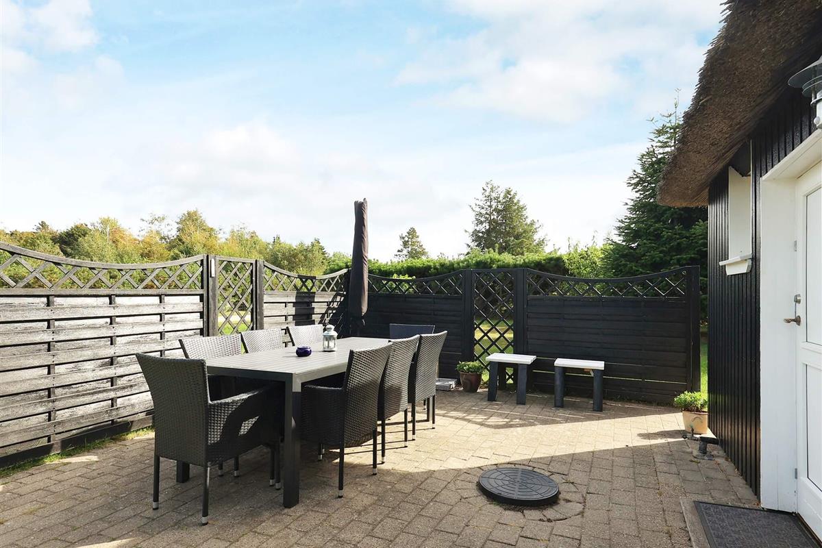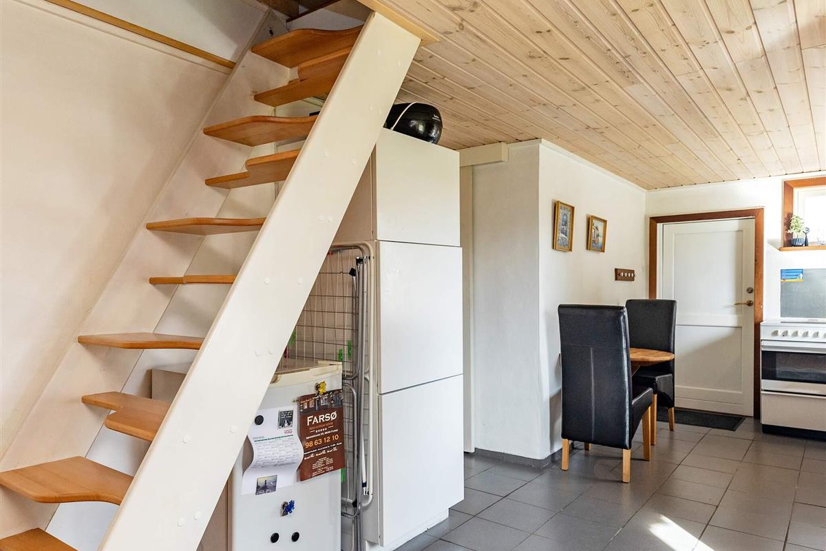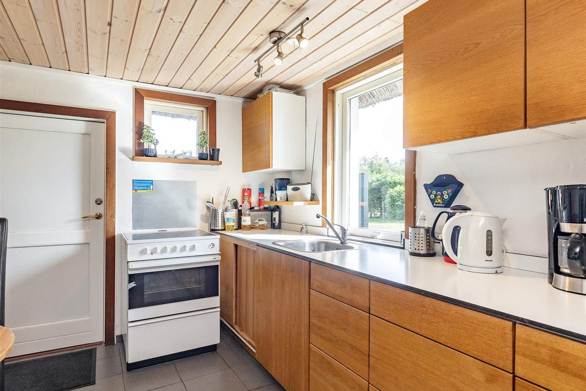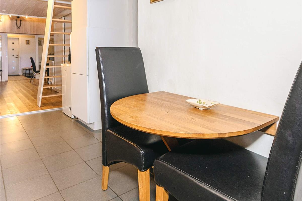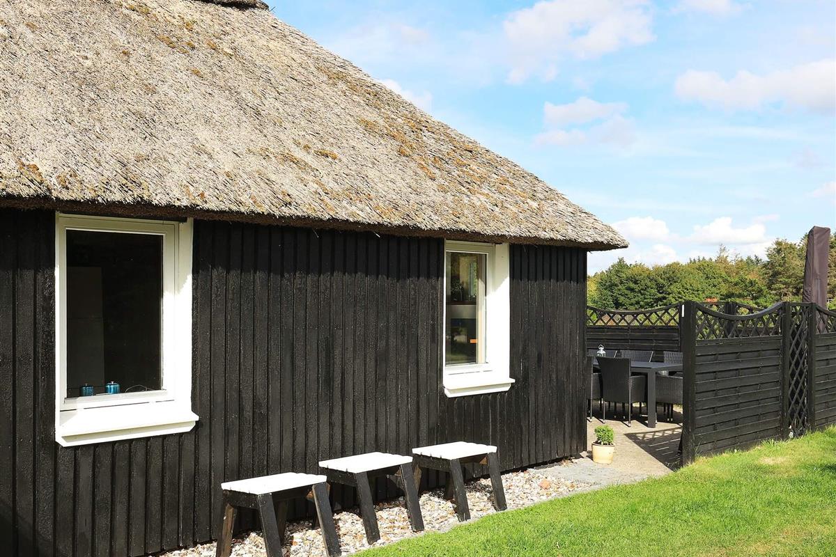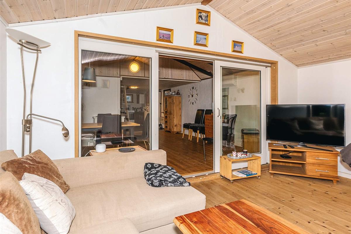 Mit seinem offene Küchen-/Wohnbereich bietet das Ferienhaus viel Platz für das Familienleben und für gemeinsame Aktivitäten. Von der offen integrierten Küche aus hat man sowohl Zugang zu einem der Schlafzimmer als auch zur Ostterrasse für das Frühstück im Freien. Außerdem Badezimmer mit Dusche, Fußbodenheizung und Dampfkabine im Haus. Darüber hinaus gibt es oben unter der Dachschräge ein Schlafzimmer sowie einen offenen Hems. Für kühlere Tage gibt es eine Wärmepumpe und einen Pelletofen im Haus, für den man 6 mm Pellets verwendet.