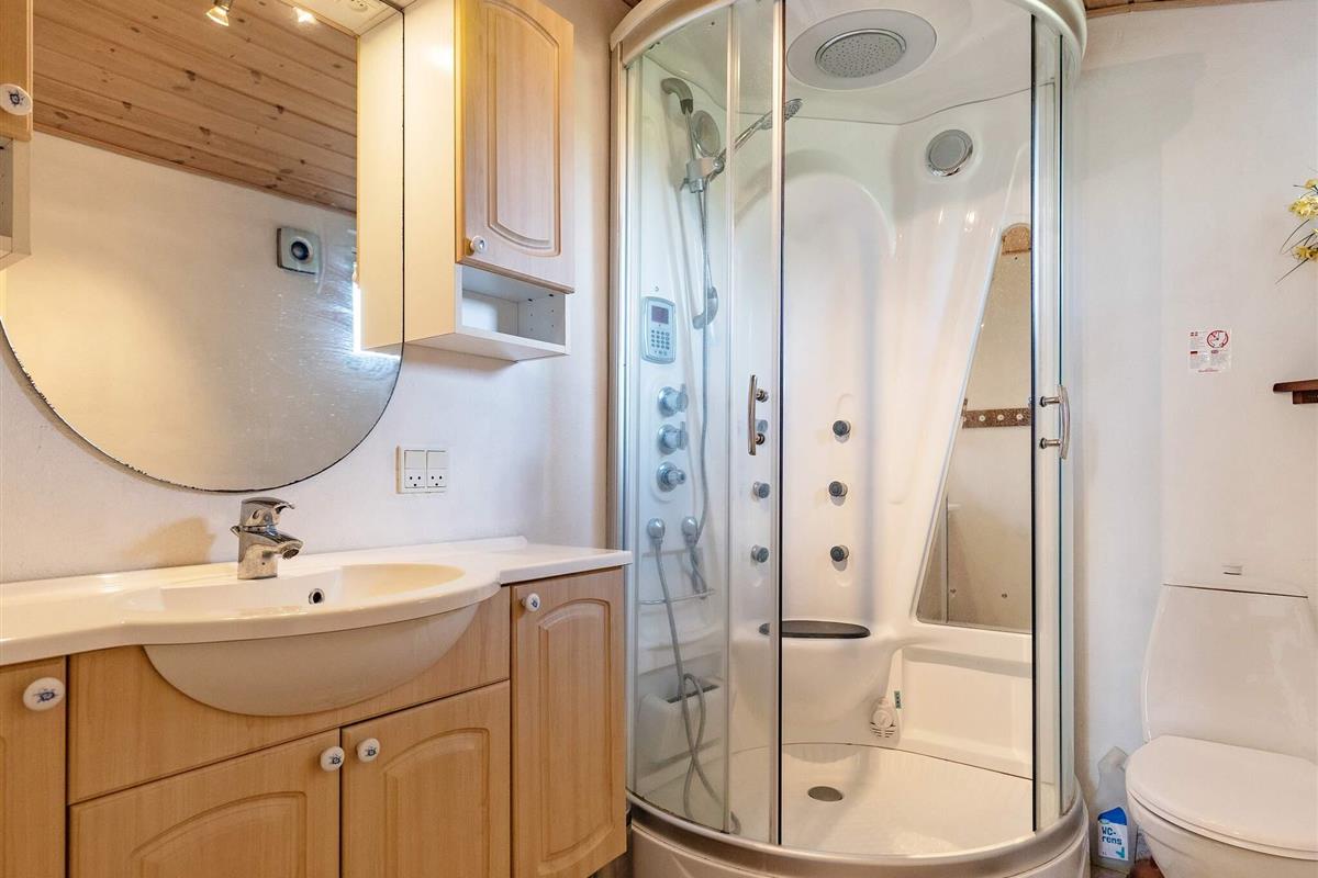 Bad: Waschm., WC, Waschb., Dusche, Dampfkabine, Fußbodenheiz.