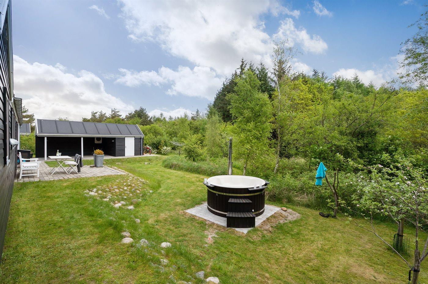 Het buiten hot tub biedt ontspanning aan 5 personen.