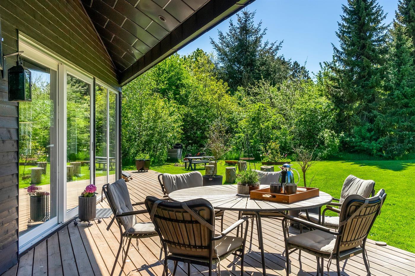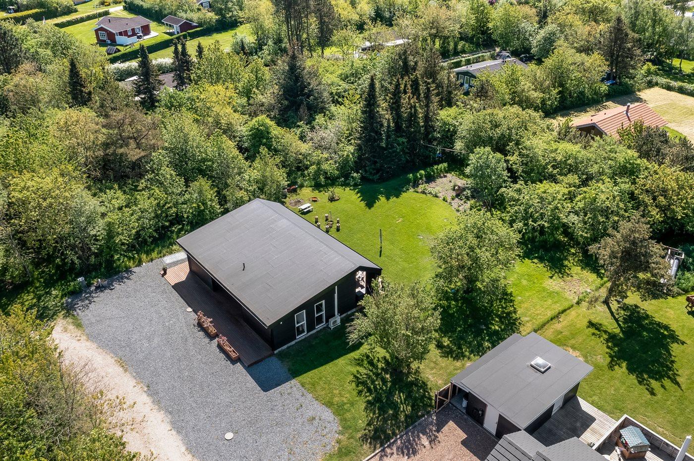 De vakantiewoning is gelegen op een 1210 m² groot natuural grond. De grond is omheind. Afstand tot de fjord 900 m. Dichtstbijzijnde winkel 9000 m. Er is een golfbaan op een afstand van 16000 m. Bij de vakantiewoning hoort 20 m² terras. Daarnaast is er een 30 m² groot overdekt terras. Afstand tot speelplaats 200 m.Vuurplaats. Barbecue. Parkeerplaats bij het huis.