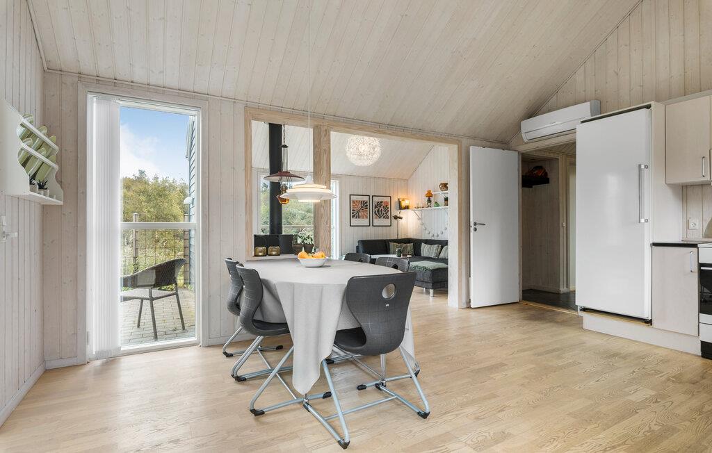 Dit vakantiehuis is de ideale keuze als je op zoek bent naar een rustige vakantie in een prachtige natuurlijke omgeving met alle moderne gemakken. In je charmante vakantiehuis op een unieke locatie en op slechts een korte wandeling van het prachtige Limfjord, kun je genieten van het fantastische uitzicht op een prachtig natuurgebied met fjord, bos, weilanden en een klein meer. Het vakantiehuis ligt op een groot natuurperceel aan het einde van een afgelegen grindweg, wat rust en privacy garandeert. Je kunt je ook verheugen op de activiteitenruimte in je vakantiehuis, waar je kunt tafeltennissen, darten en tafelvoetballen.