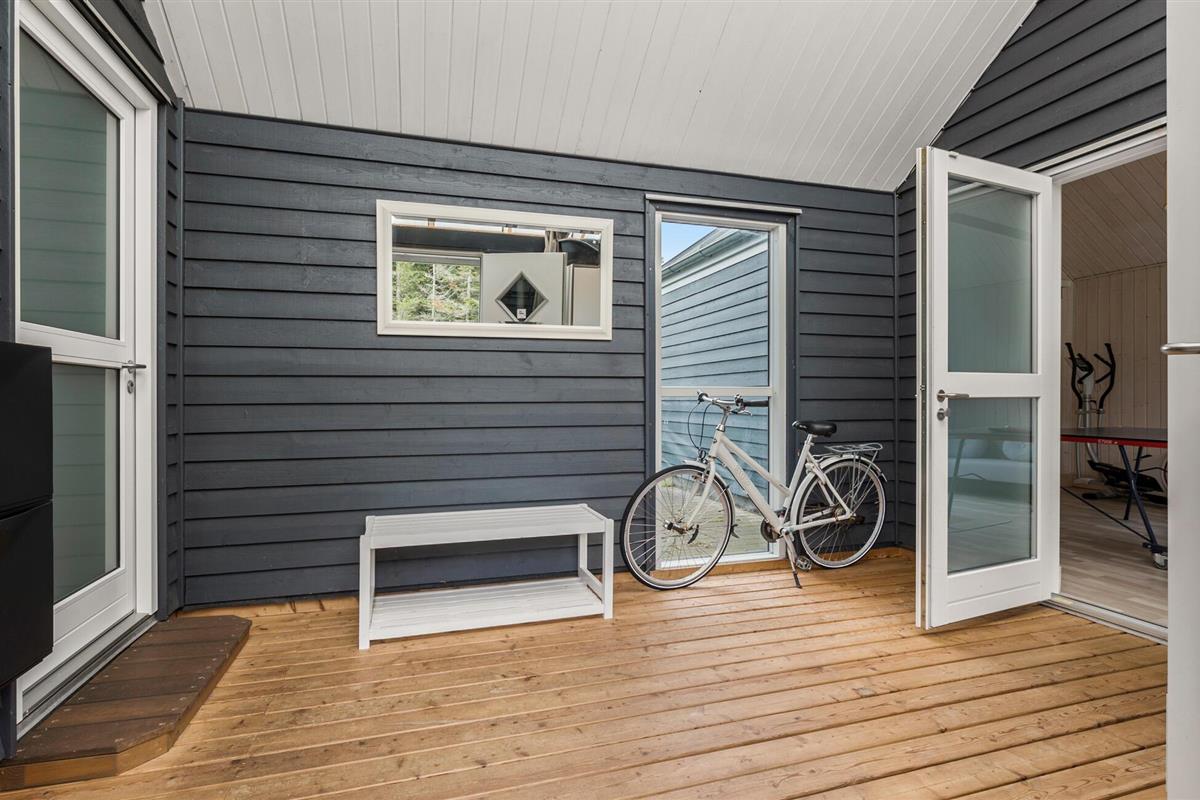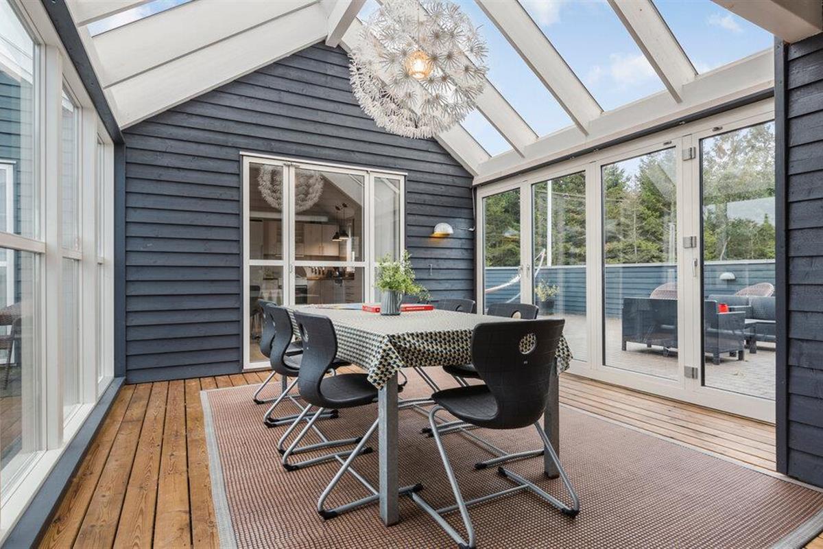 Buiten vind je twee heerlijke terrassen, waarbij het terras op het zuiden veel ruimte biedt. Het is volledig afgeschermd en privé, ideaal om te ontspannen en te genieten van ongestoorde momenten. Het andere, iets kleinere terras biedt een adembenemend uitzicht over het meer, het bos, de fjord en de weilanden. De prachtige serre met panoramisch uitzicht op de fjord en het omliggende natuurlandschap is ook de ideale plek om te genieten van de diverse wilde dieren in de prachtige natuur van Vesthimmerland. Gebruik de buitenkeuken en barbecue om heerlijke maaltijden te bereiden in de frisse lucht.
