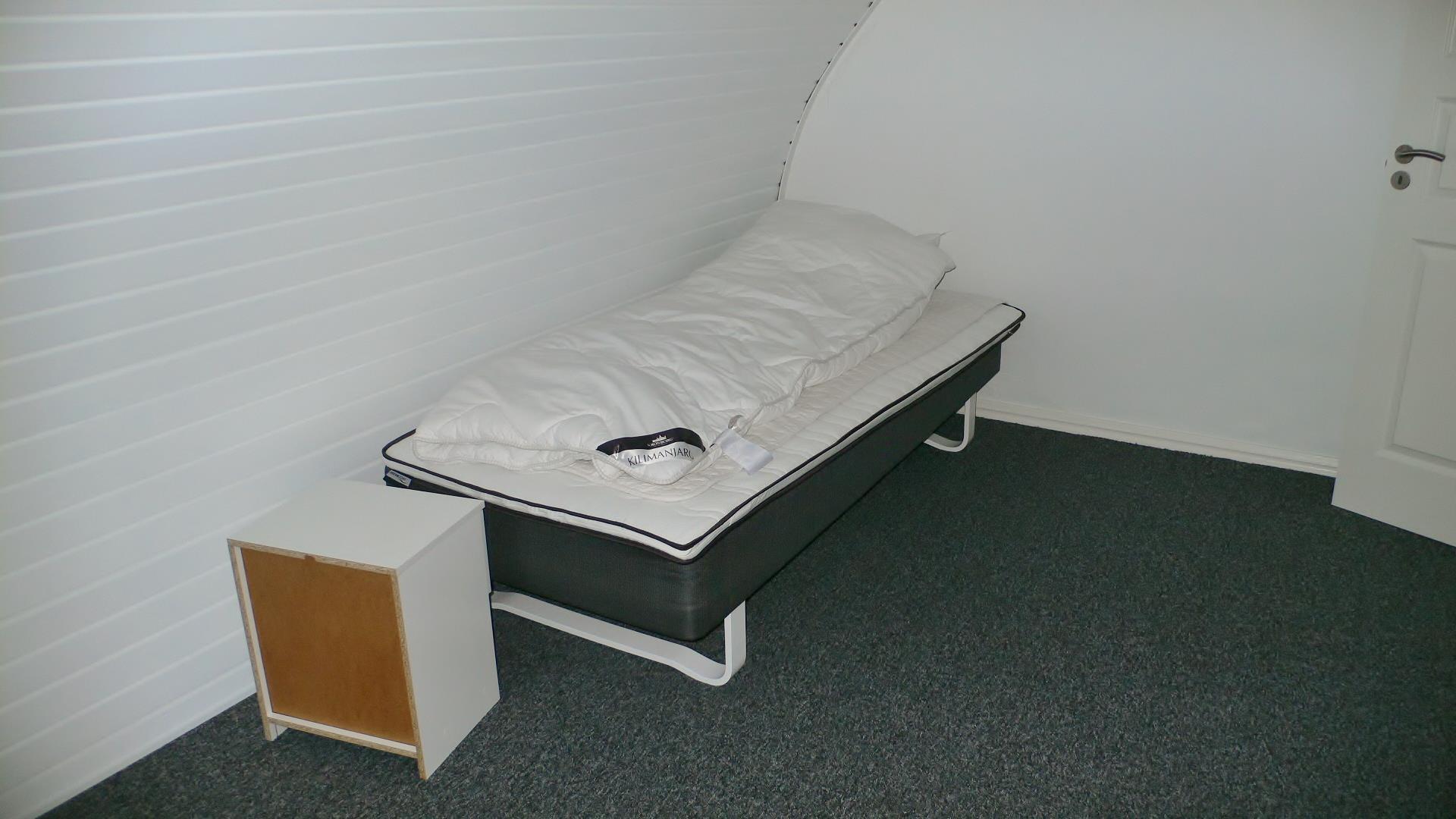 Upper floor with 2 bedrooms with 1 bed each. Big bathroom with shower, sink and toilet.