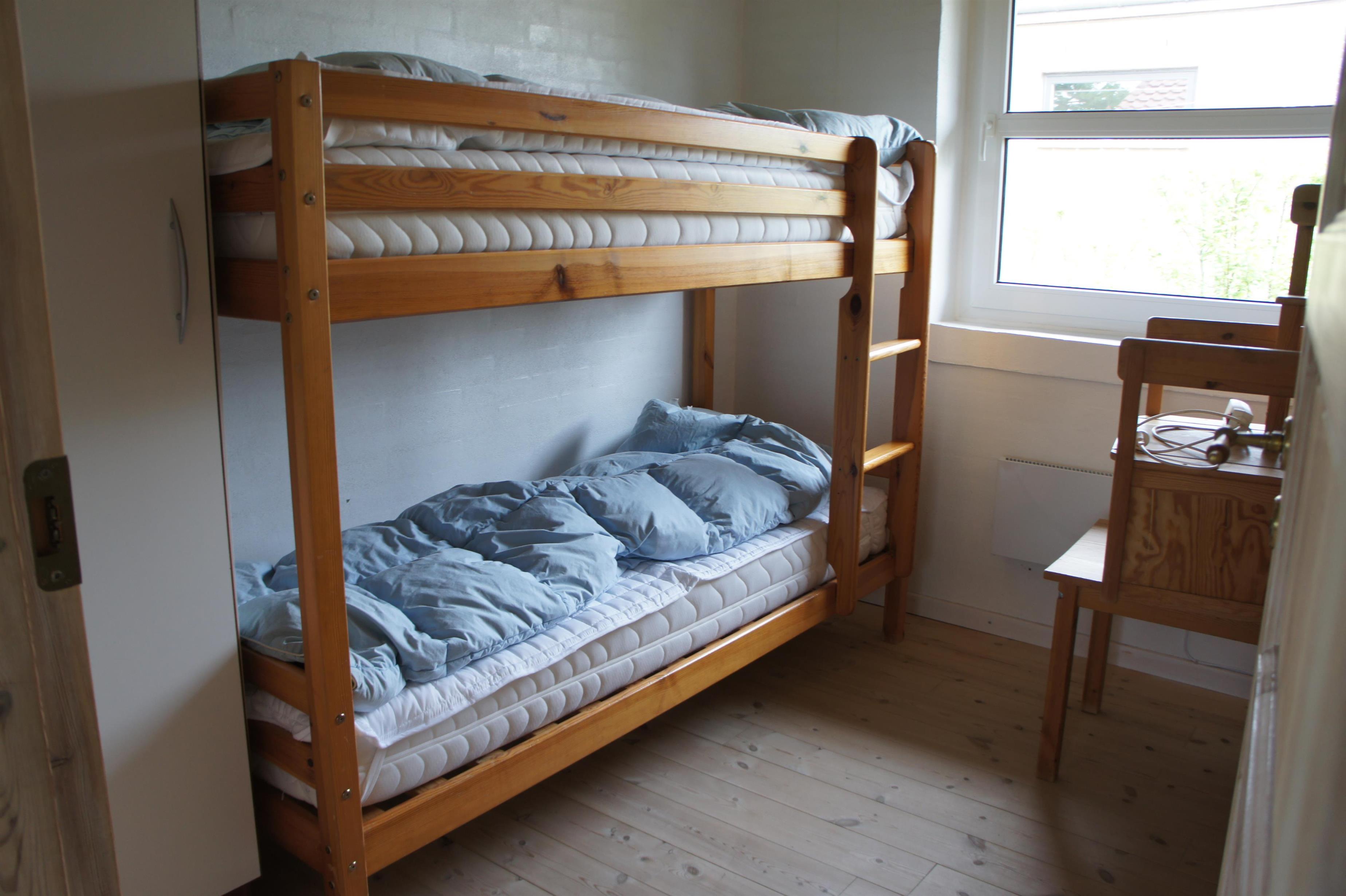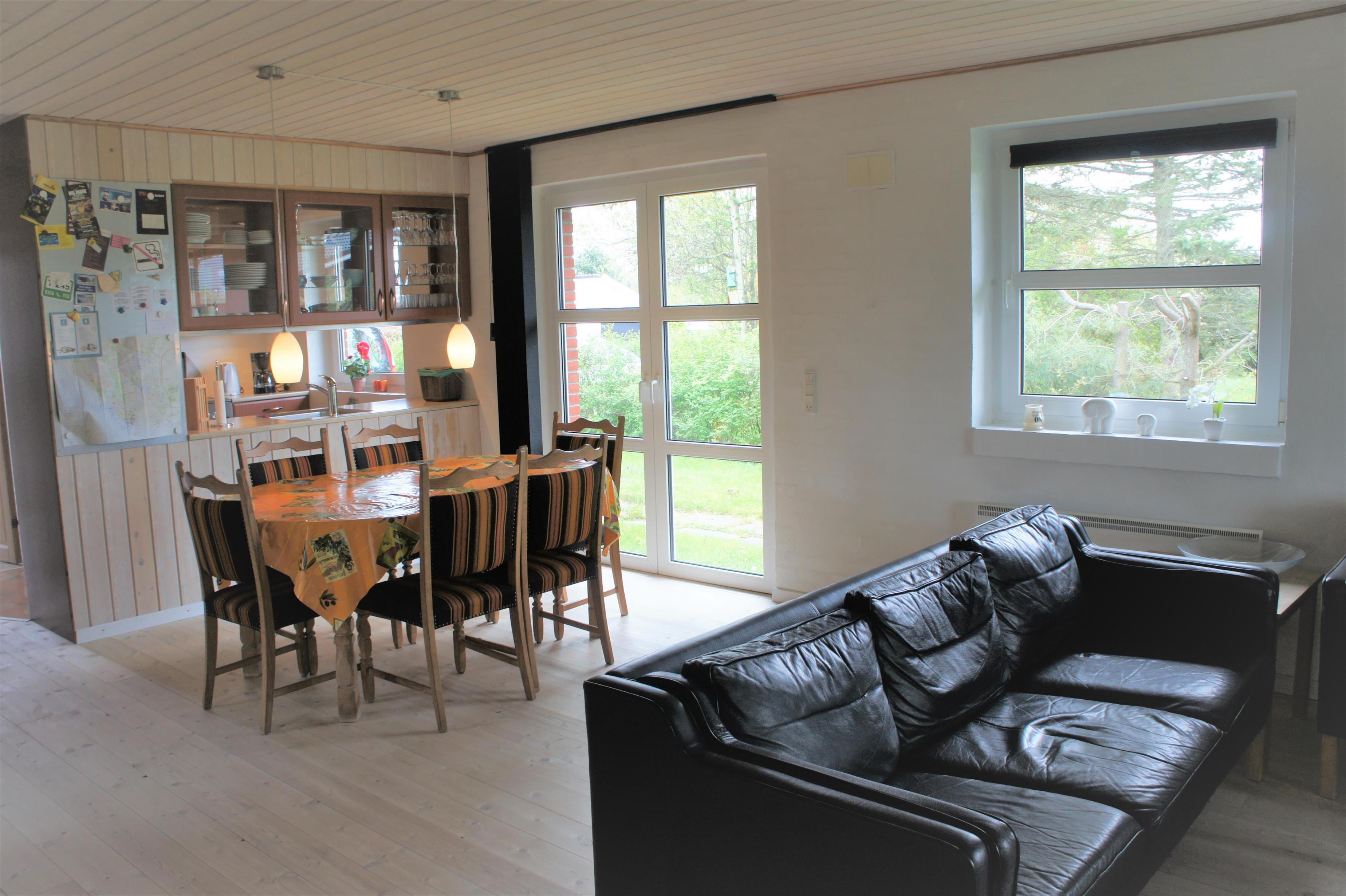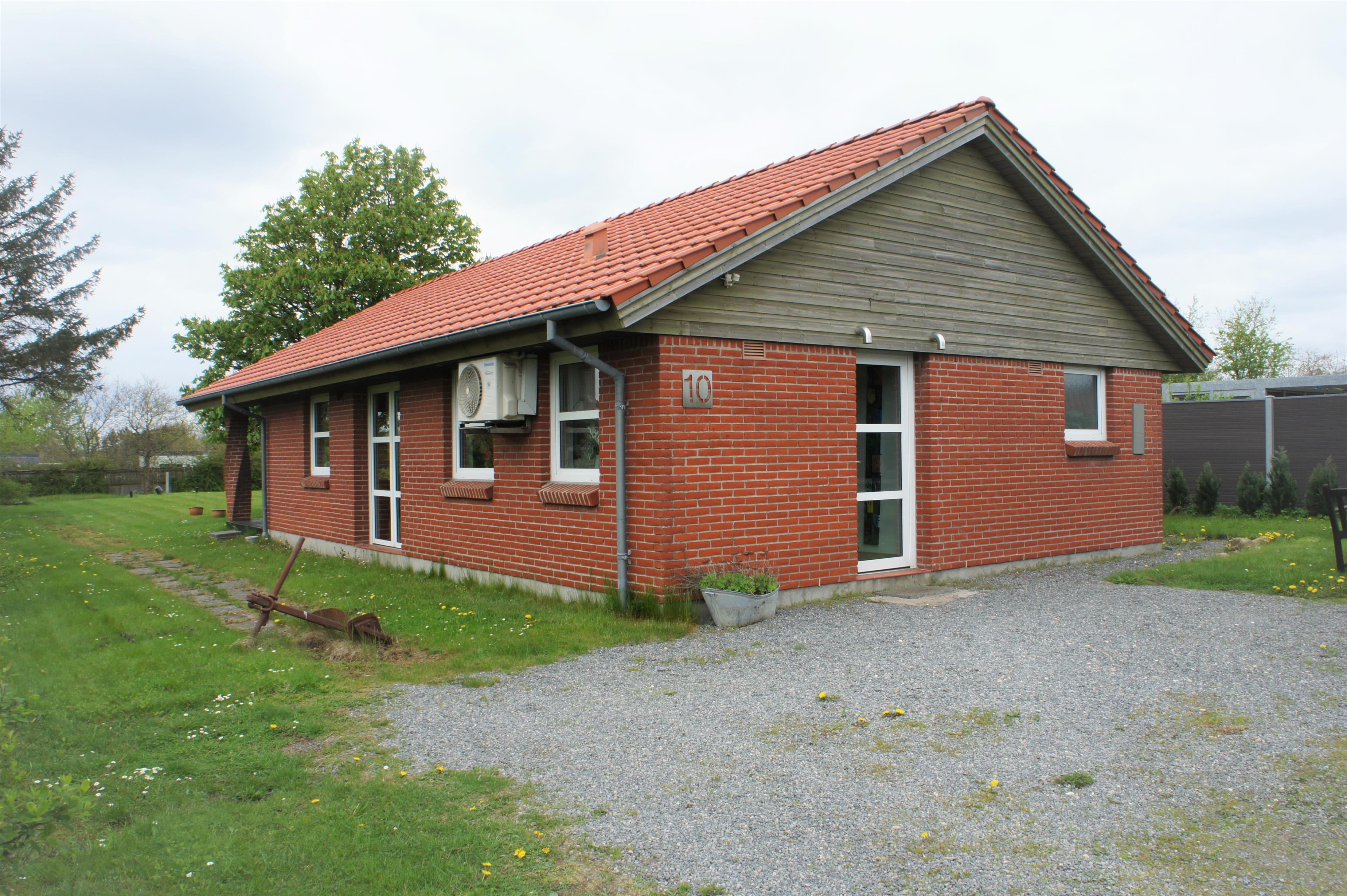 A modern holiday house with air condition. The house has a big bright kitchen/living room area (40 m2). The living room is furnished with dining table, radio with cd player, kabel tv. There is an exit to a covered south/west facing terrace with garden furniture. The kitchen has dishwasher, microwave, fridge/freezer, coffee maker, stove, etc. The utility room has washing machine and underfloor heating as well as the bathroom which is furnished with sauna, toilet, sink and shower. Internet. Outside there is a and lawn to play on. The house is located only 5 km from Esbjerg. It is a non-smoker house and there must not be a pet in the house. 2 bedrooms with double beds. 1 bedroom with bunk beds and children furniture.